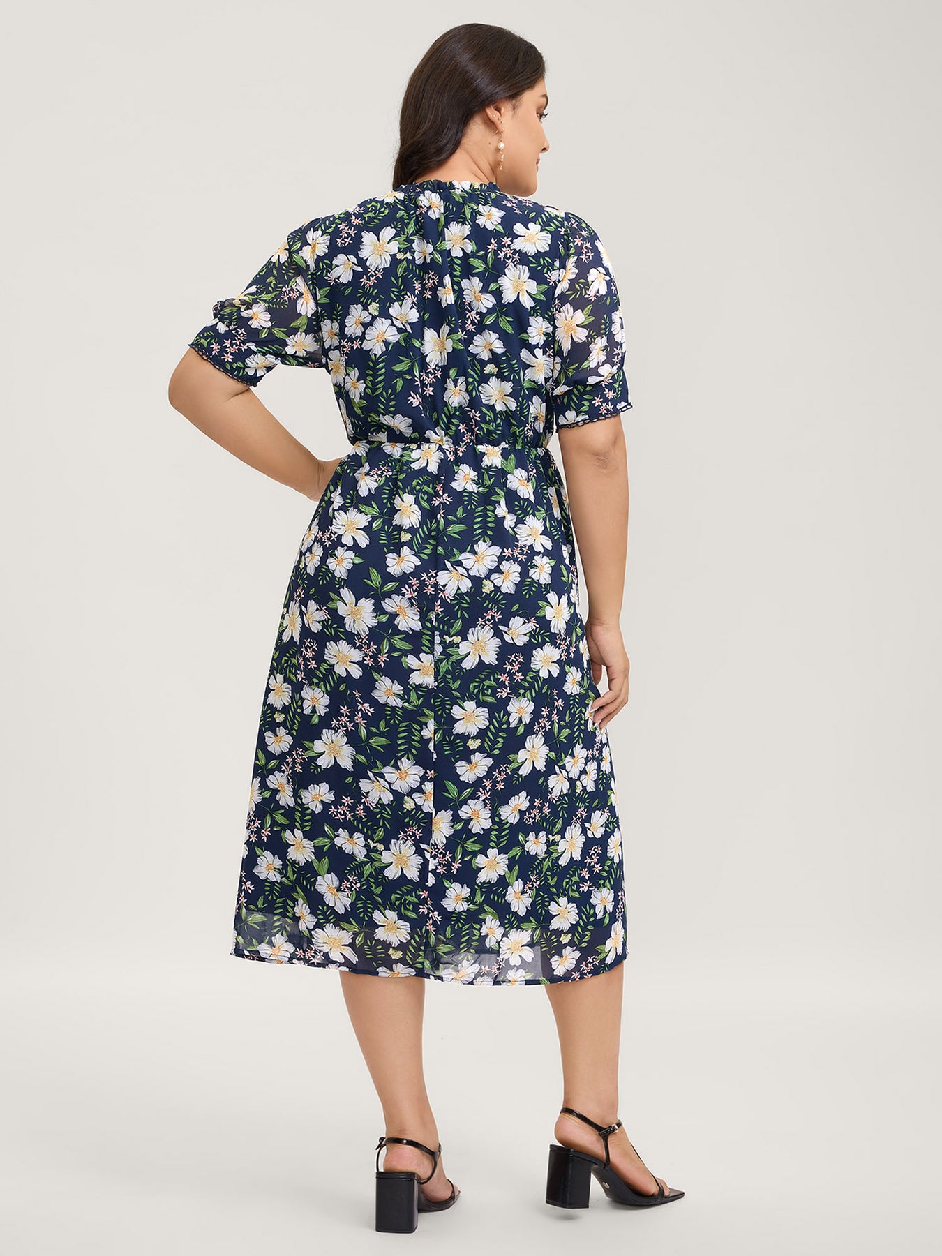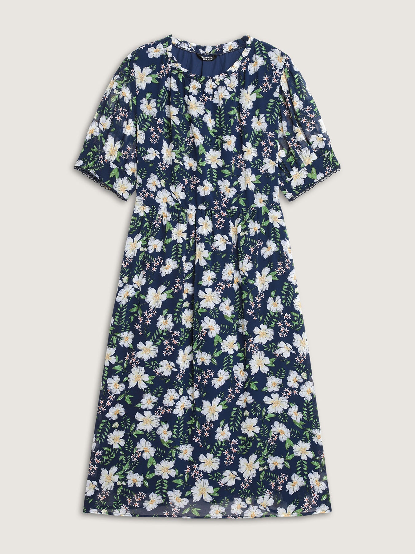 Floral Print Stretchy Waist Lace Midi Dress