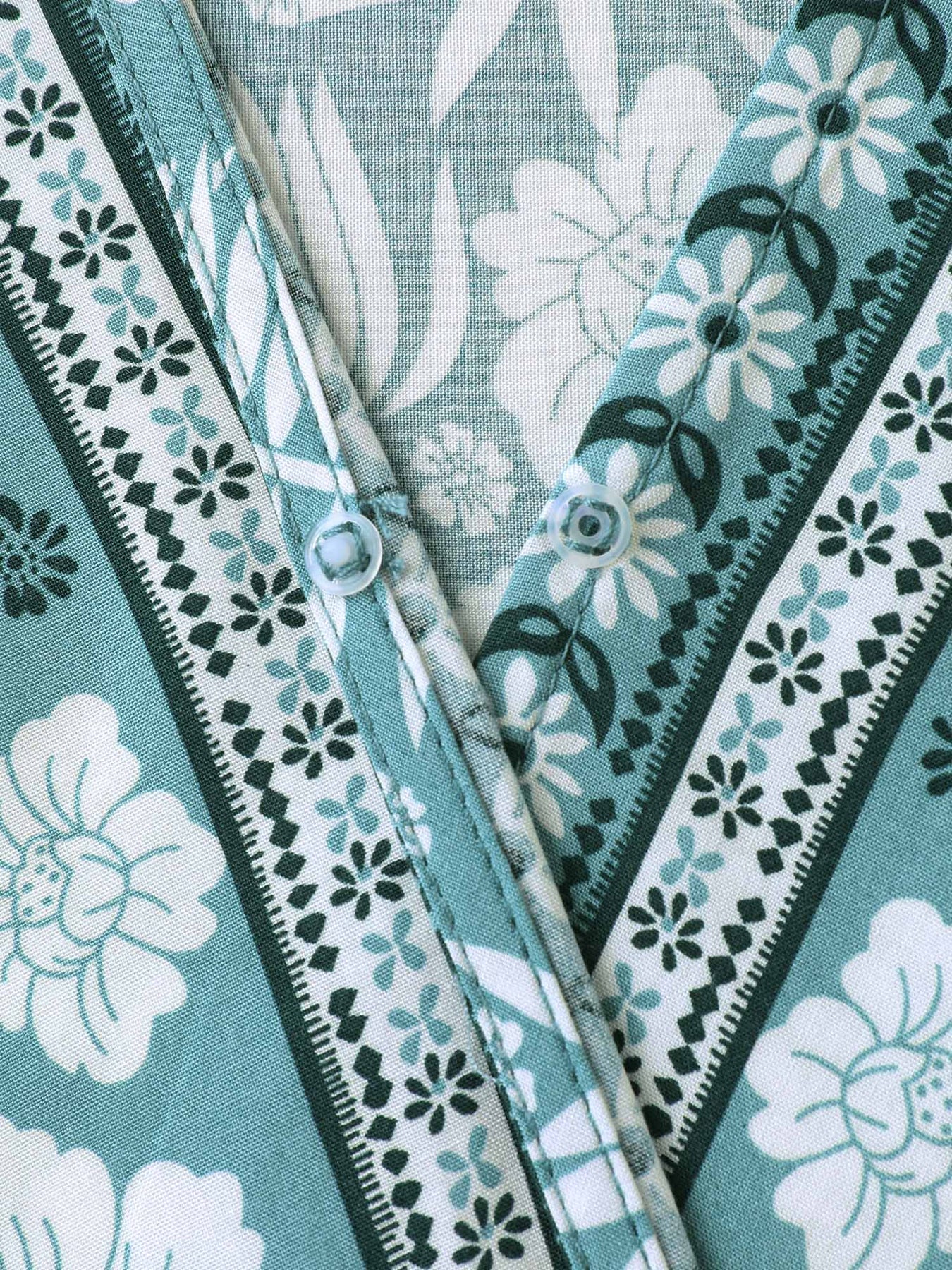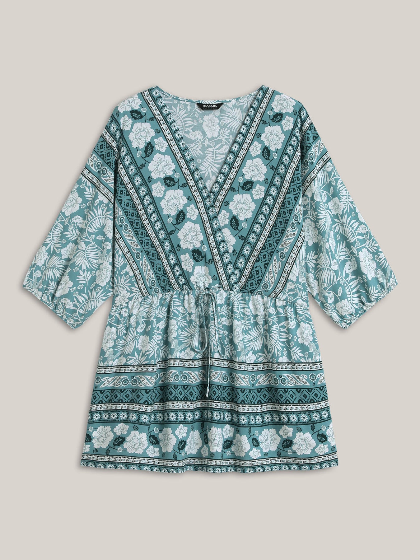 Floral Print Surplice Neck Waist-Cinched Shirt