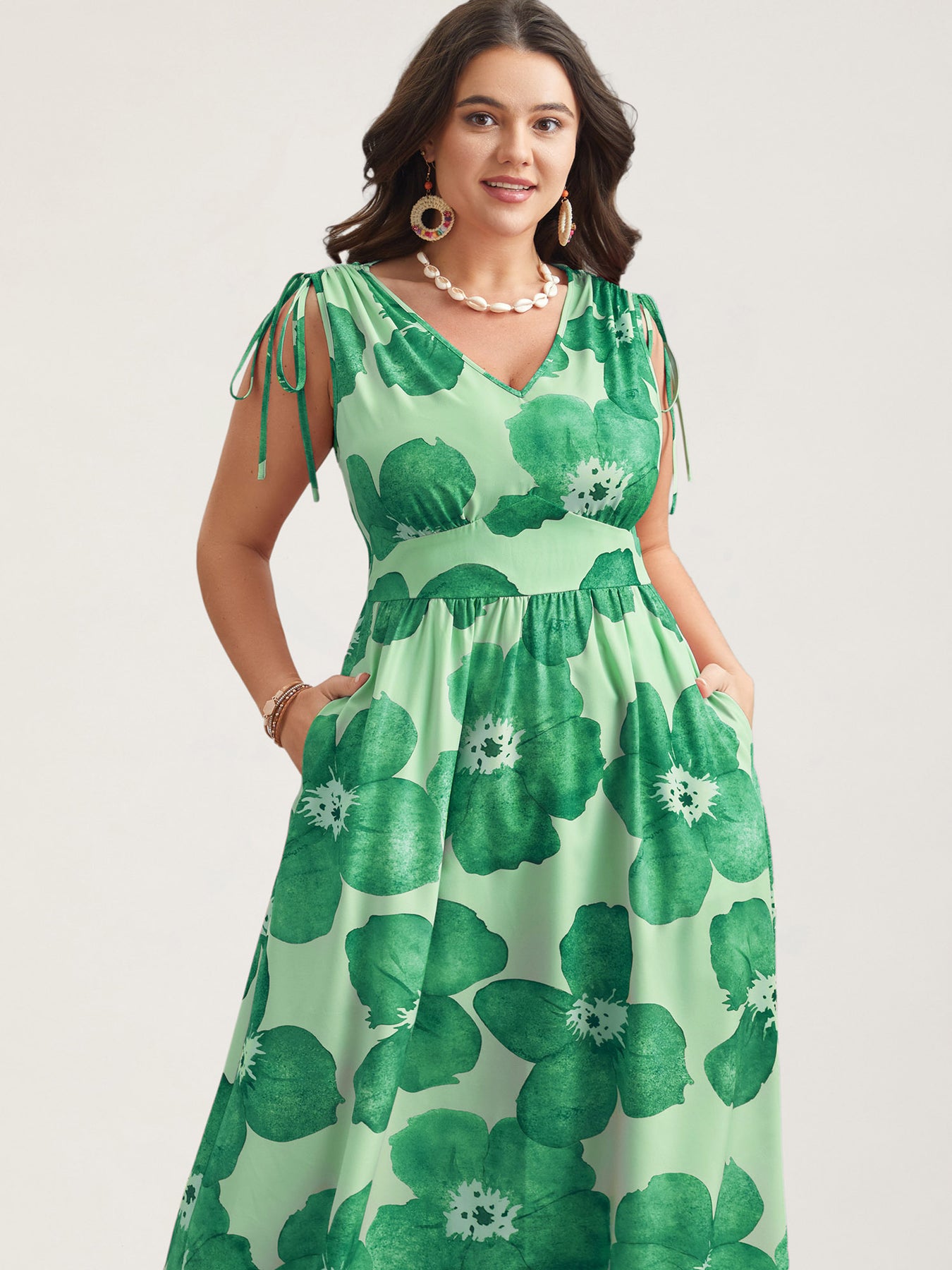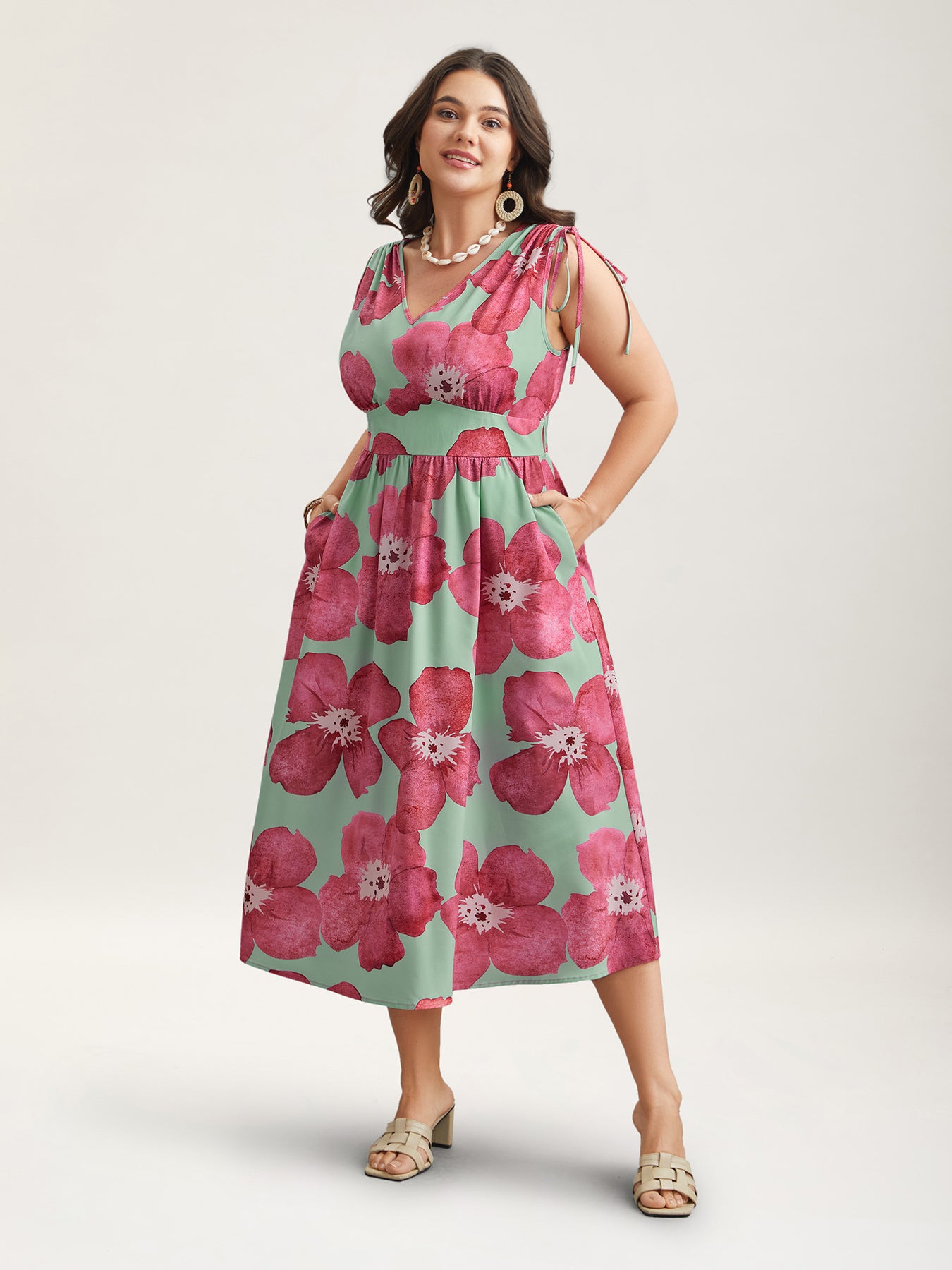 Floral Print V-Neck Tied Midi Dress