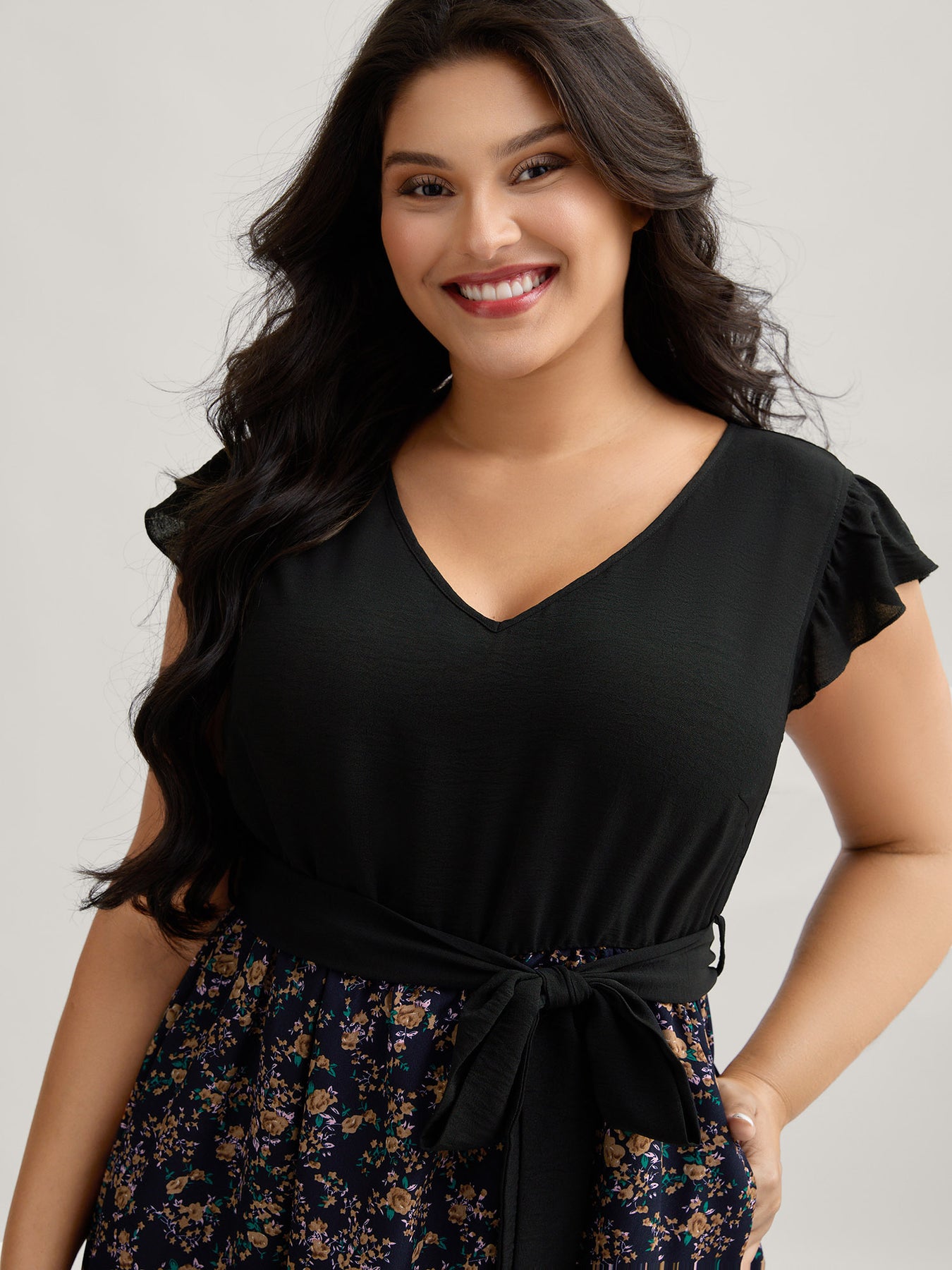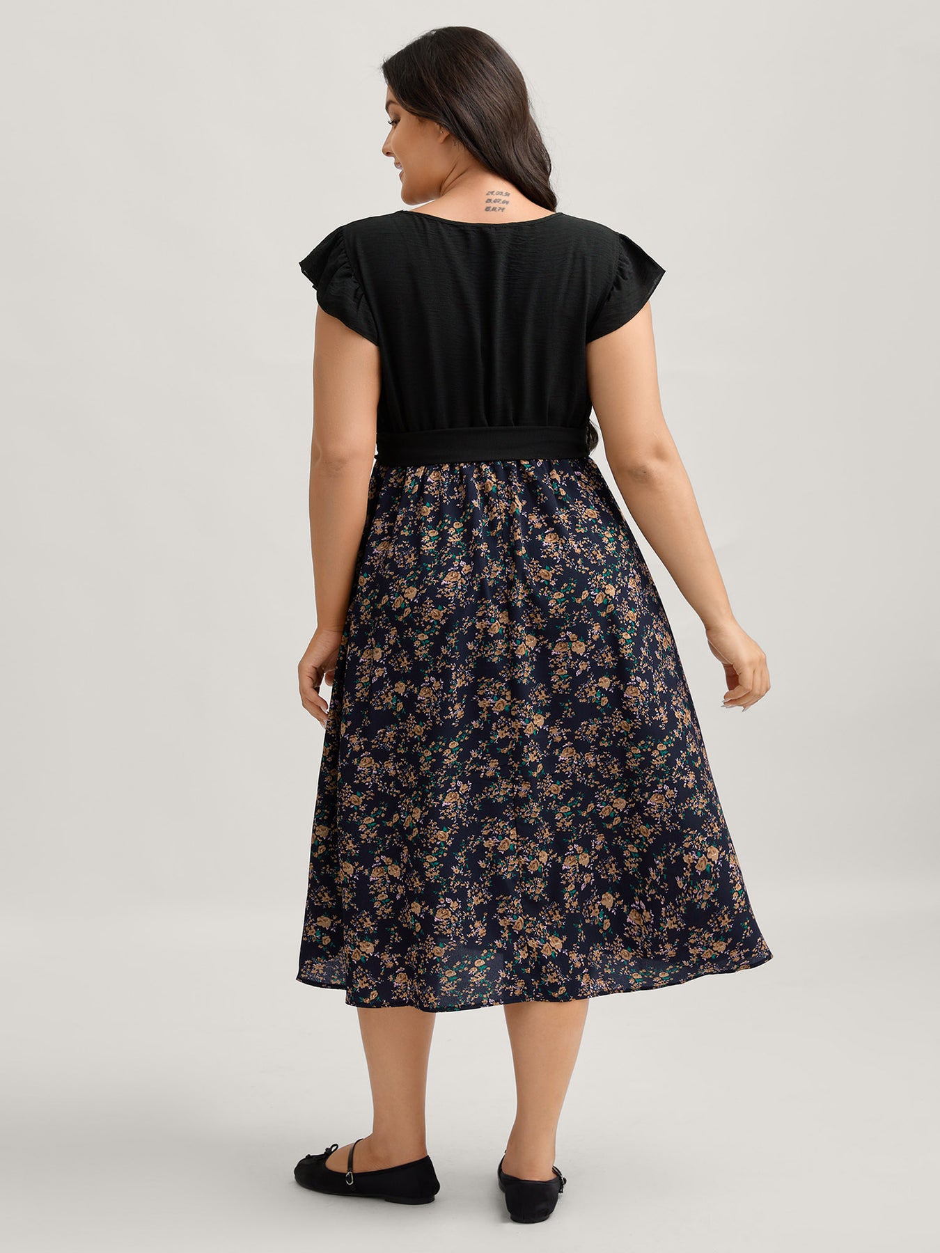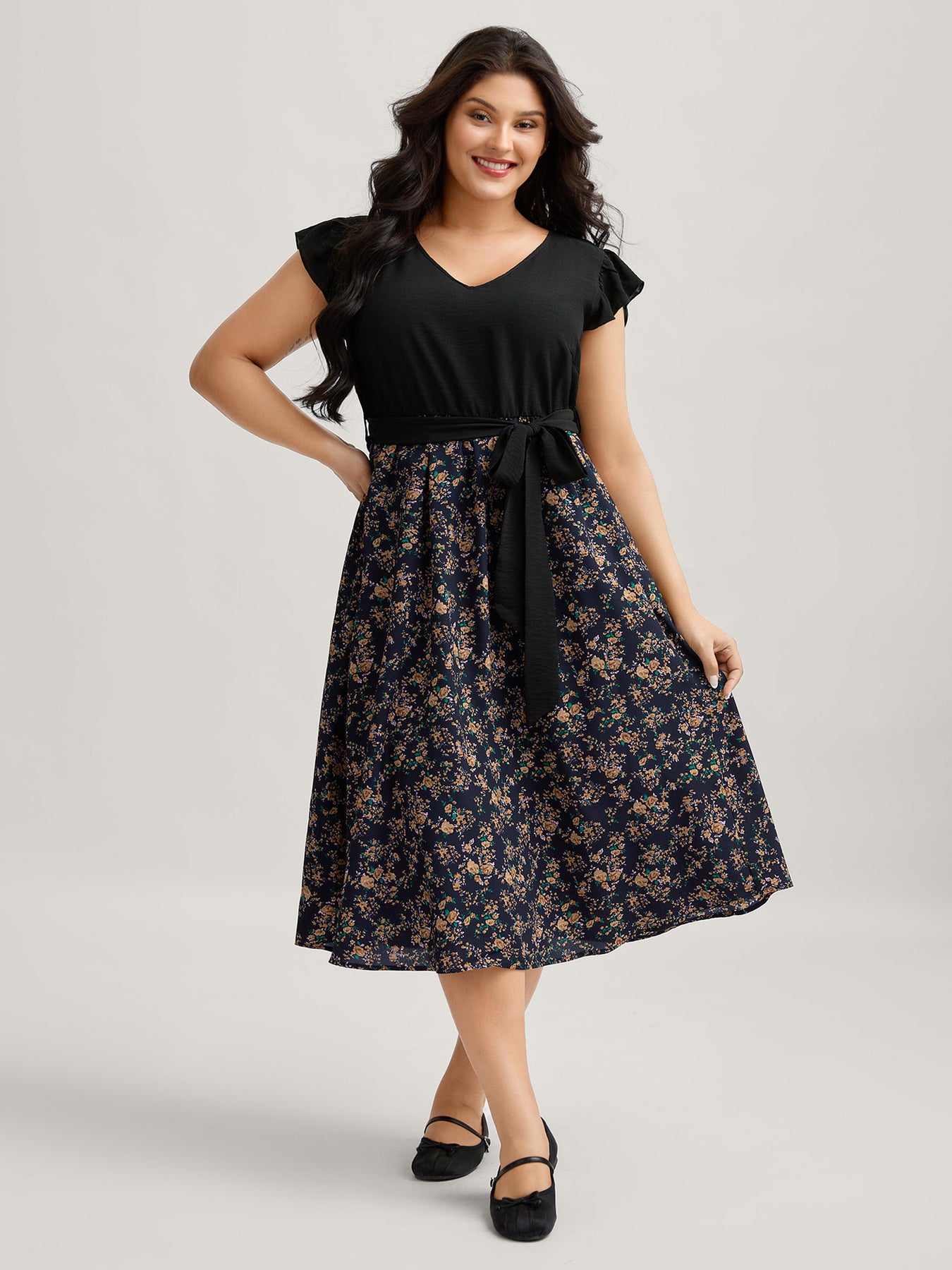 Floral Print Waist-Tie Ruffled Midi Dress