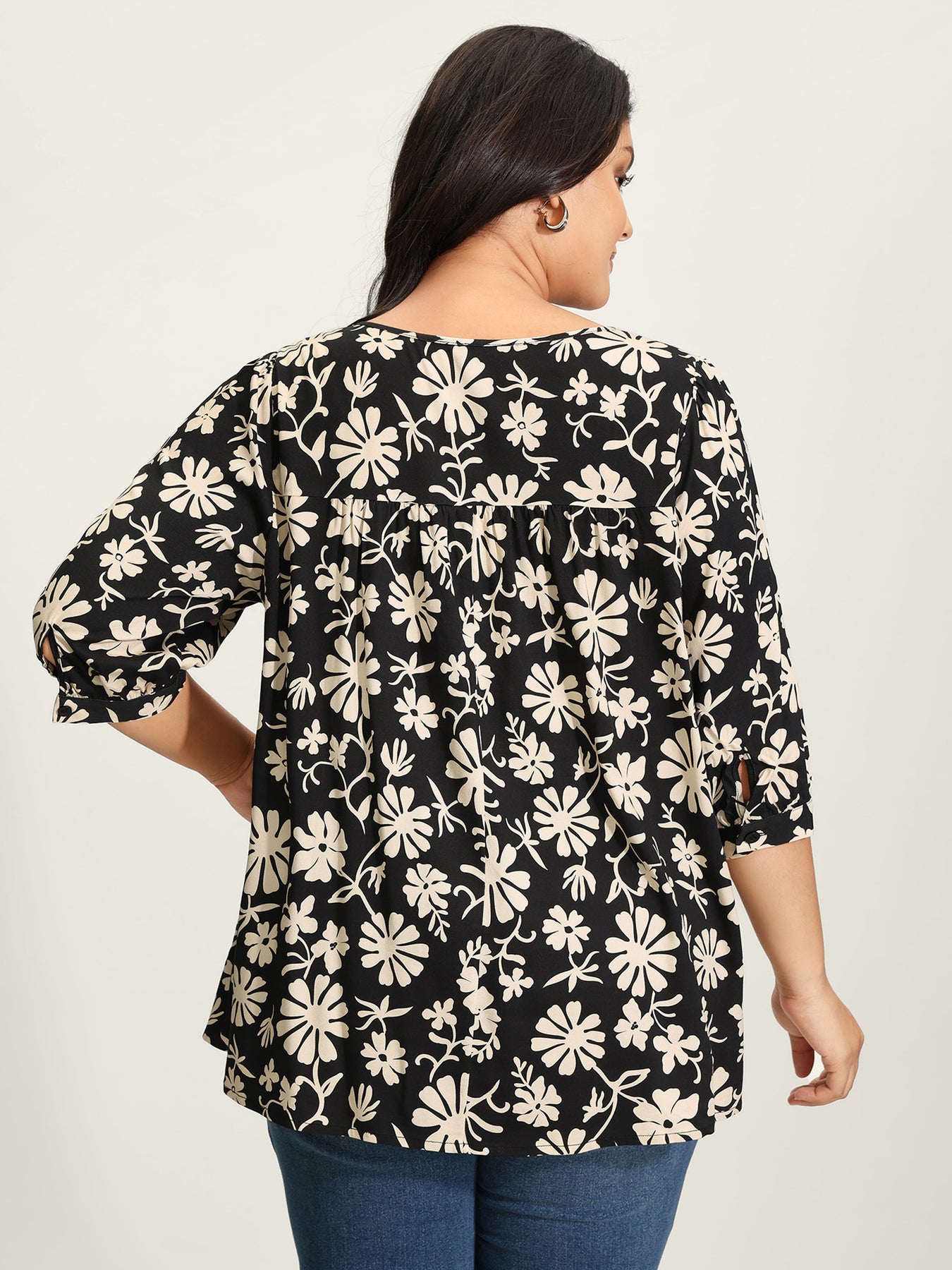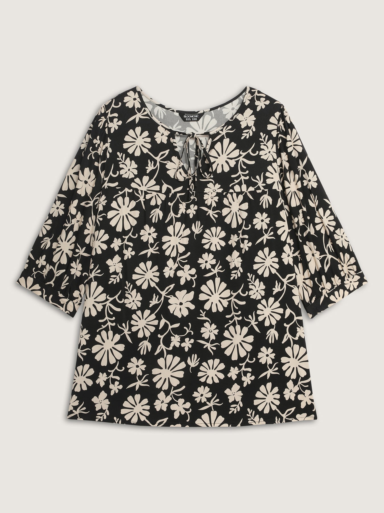 Floral Sleeve Neck-Tie A-Line Blouse