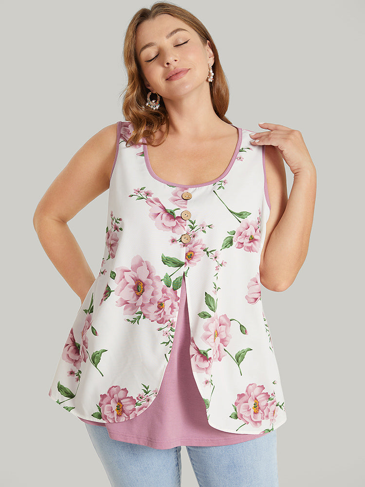 Floral Split Front Button Detail 2-In-1 Tank Top