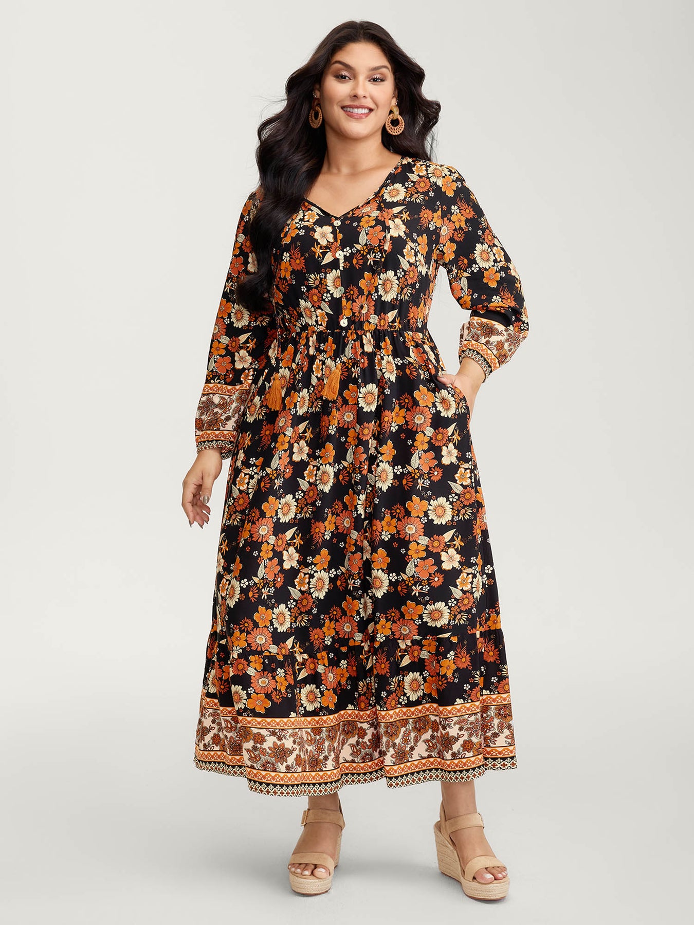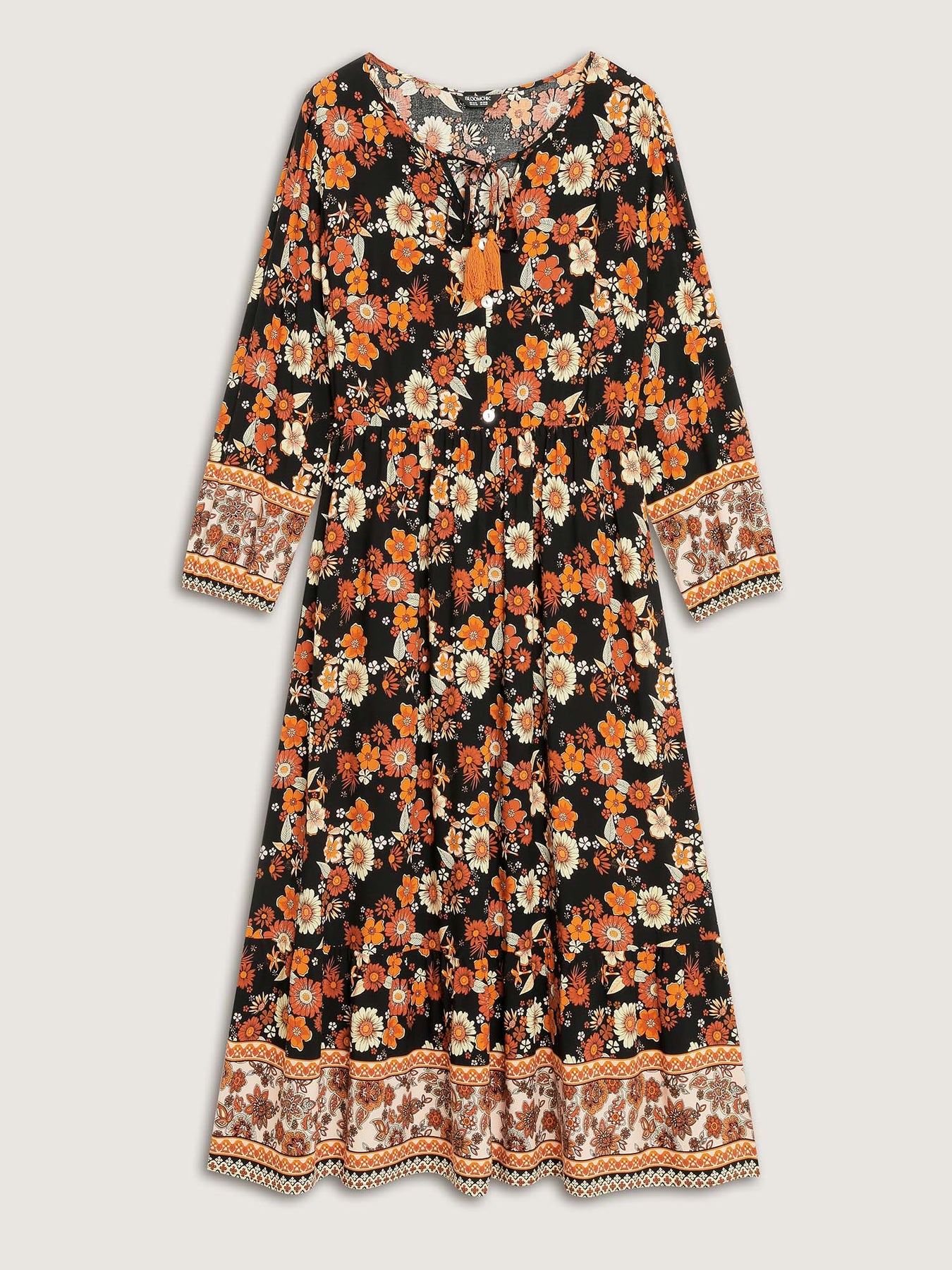 Floral Stretchy Waist Neck-Tie Maxi Dress