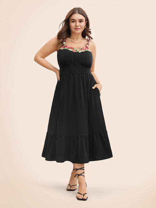 Floral Woven Ribbon Heart Neckline Cami Dress
