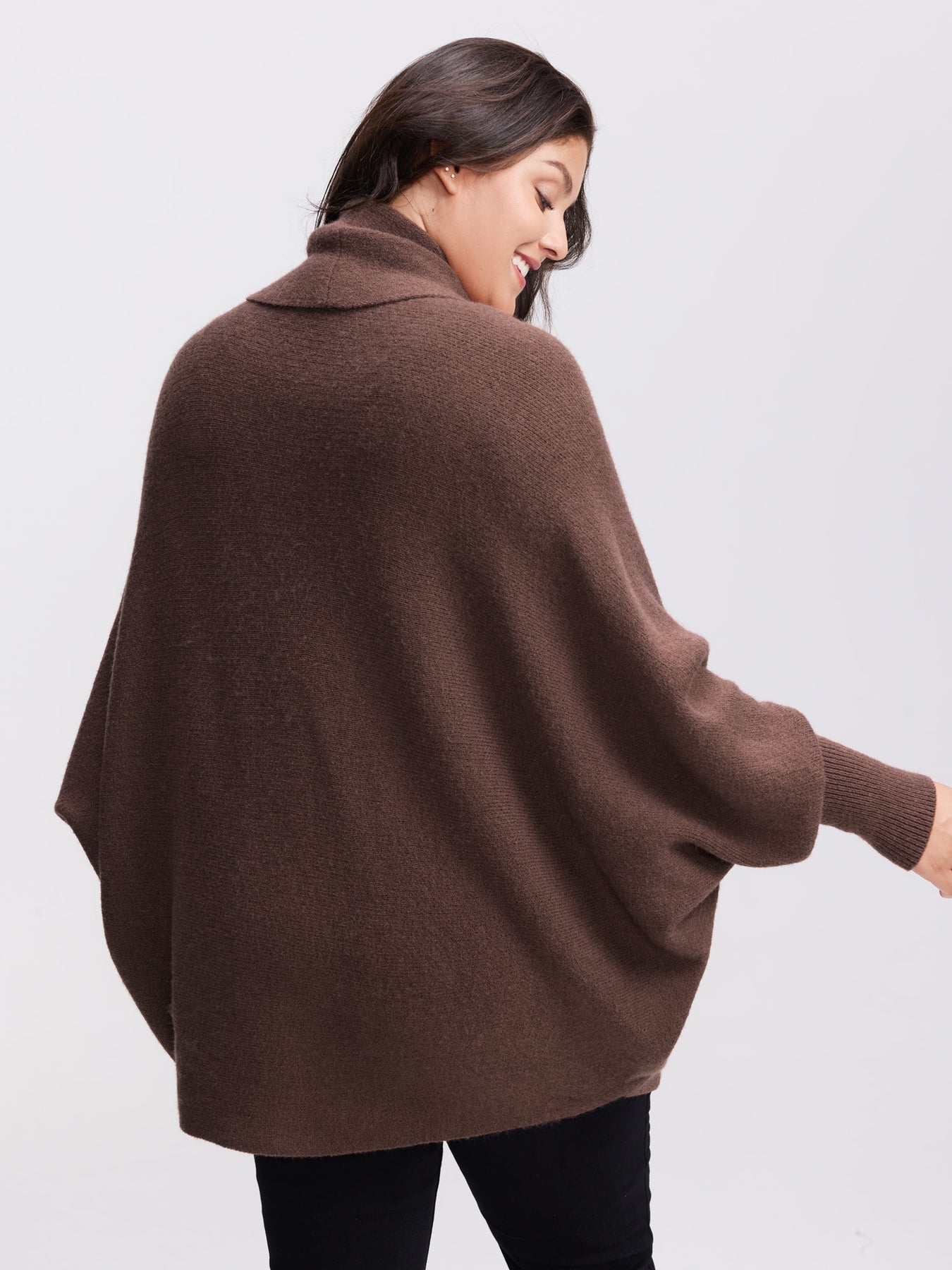 Folded Collar Dolman Sleeve Knit Cardigan