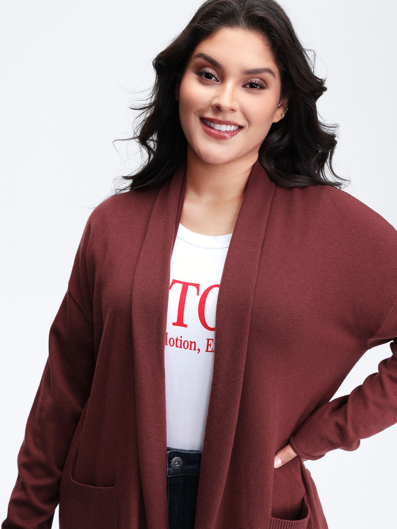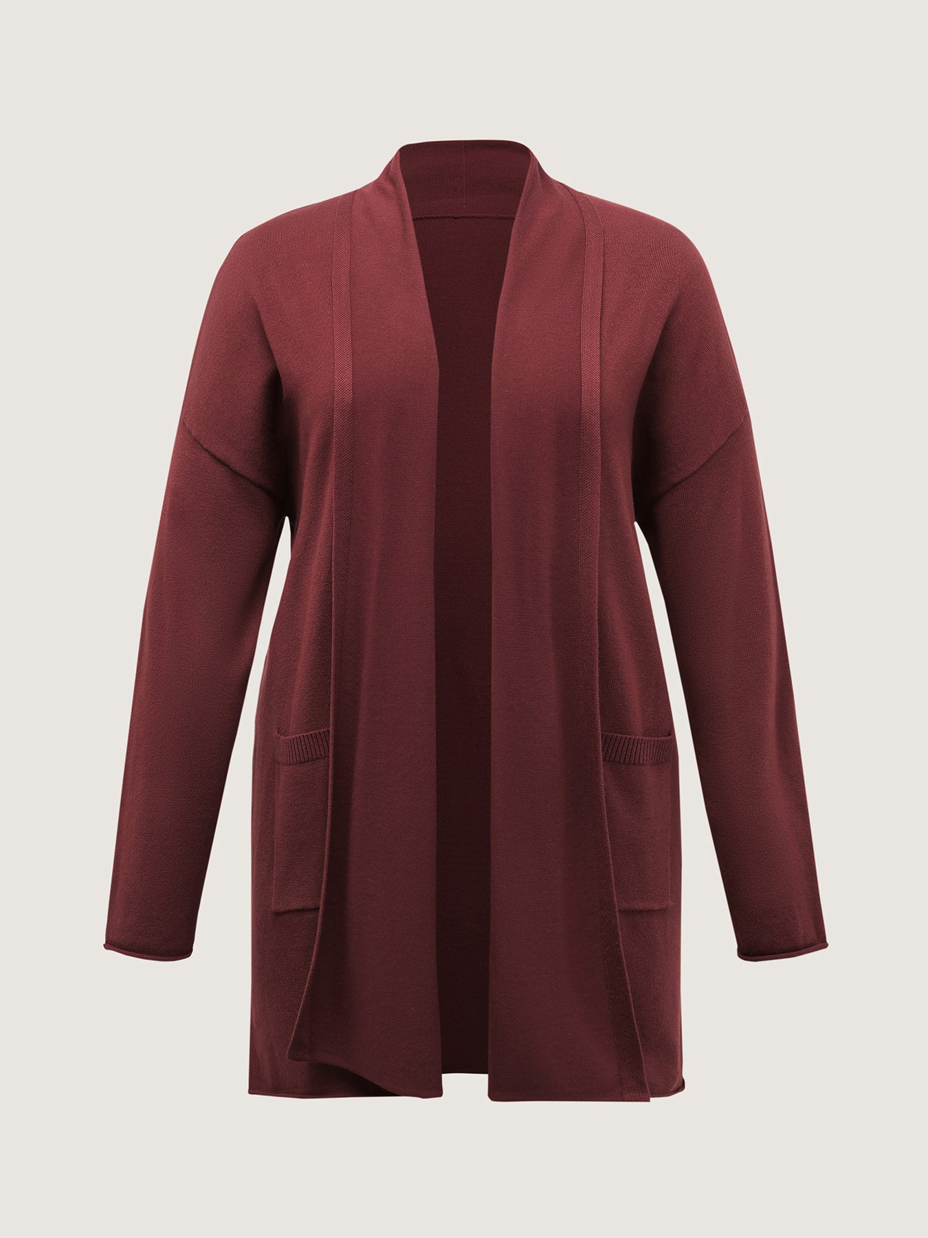 Supersoft Folded Collar Pocket Open-Front Knit Cardigan