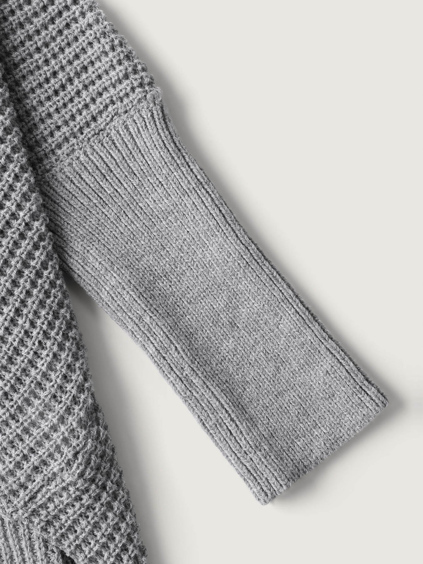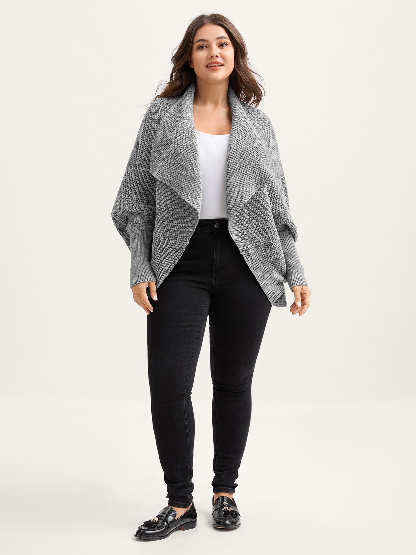 Folded Collar Textured Open-Front Knit Cardigan