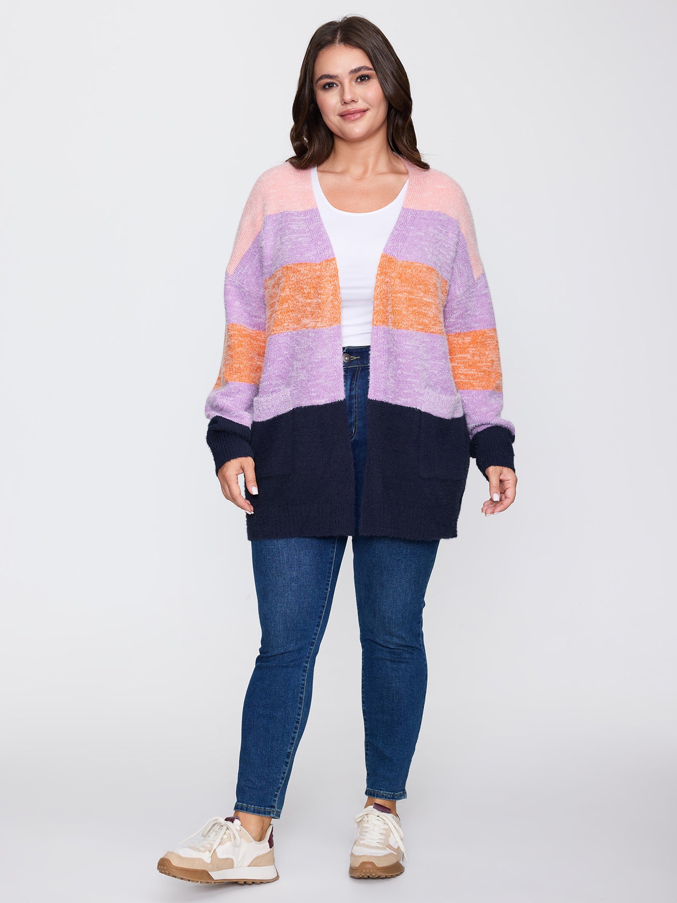 Furry Textured Colorblock Knit Cardigan