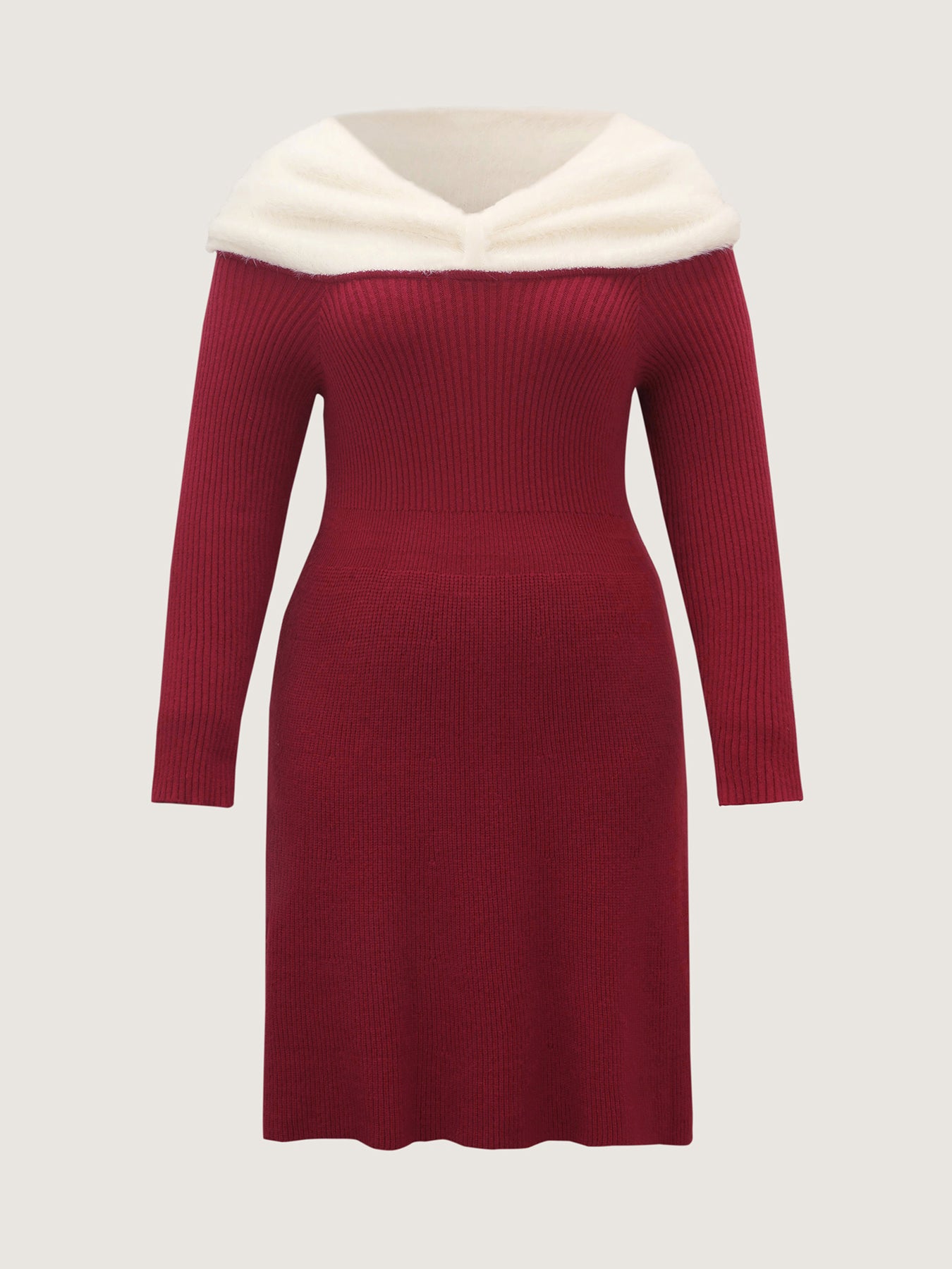 Fuzzy Off-Shoulder Color Block Sweater Dress