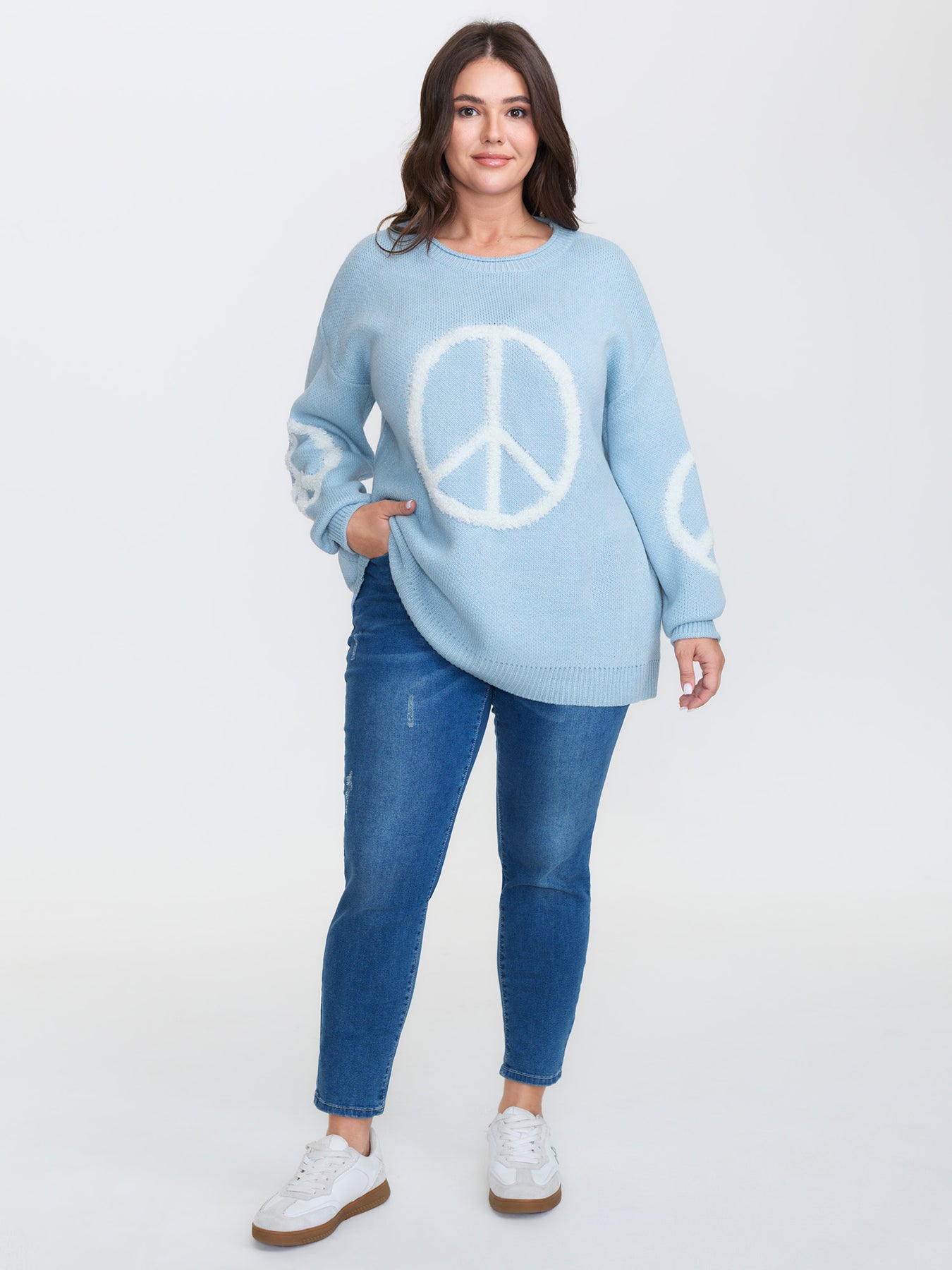 Geometric Pattern Textured Ribbed Hem Pullover