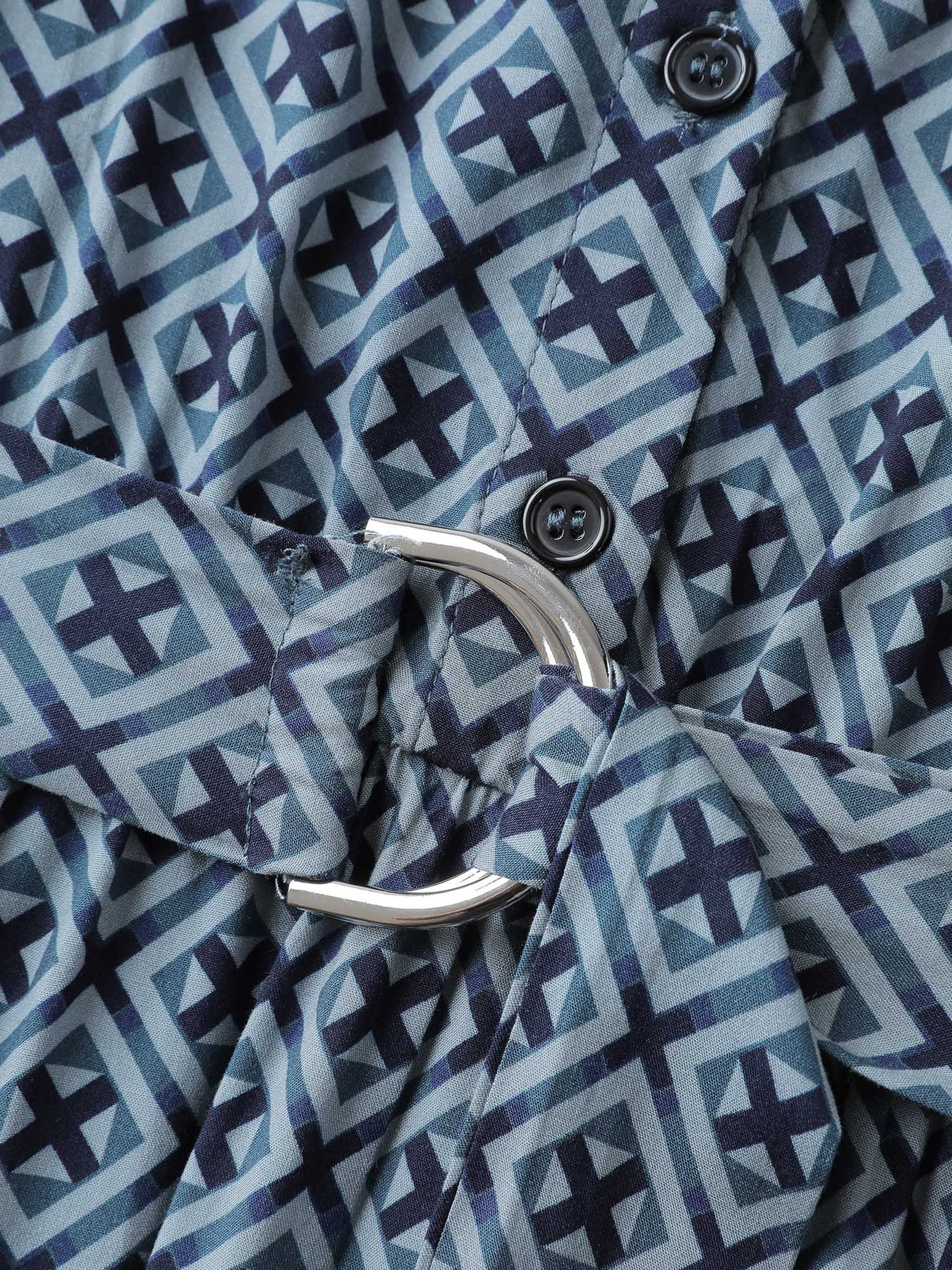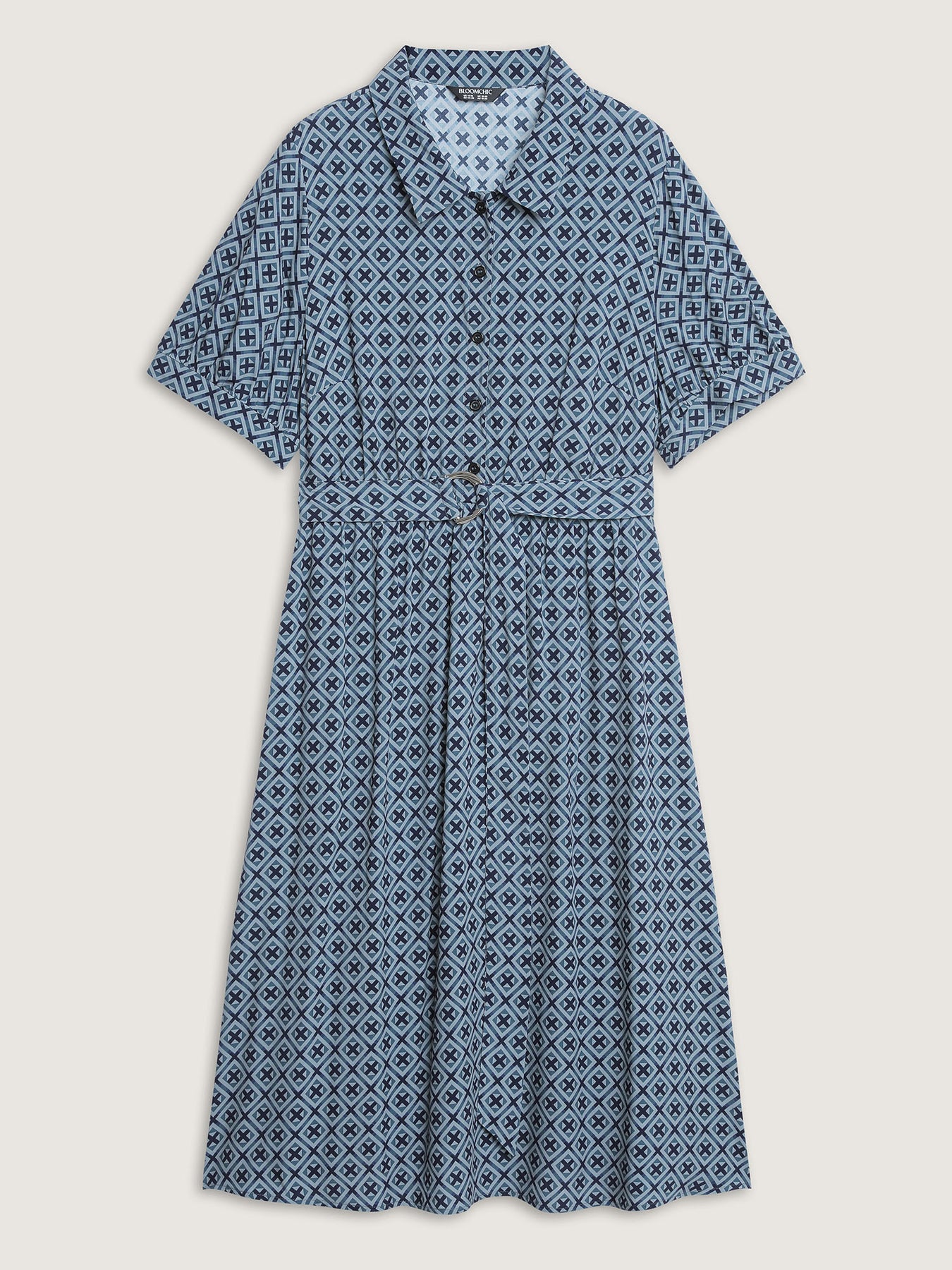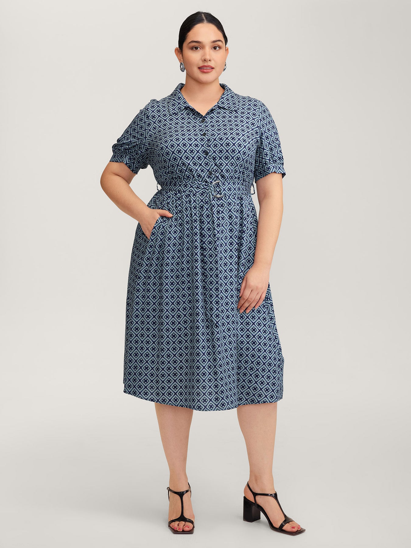 Geometric Print Belted Waist Maxi Dress