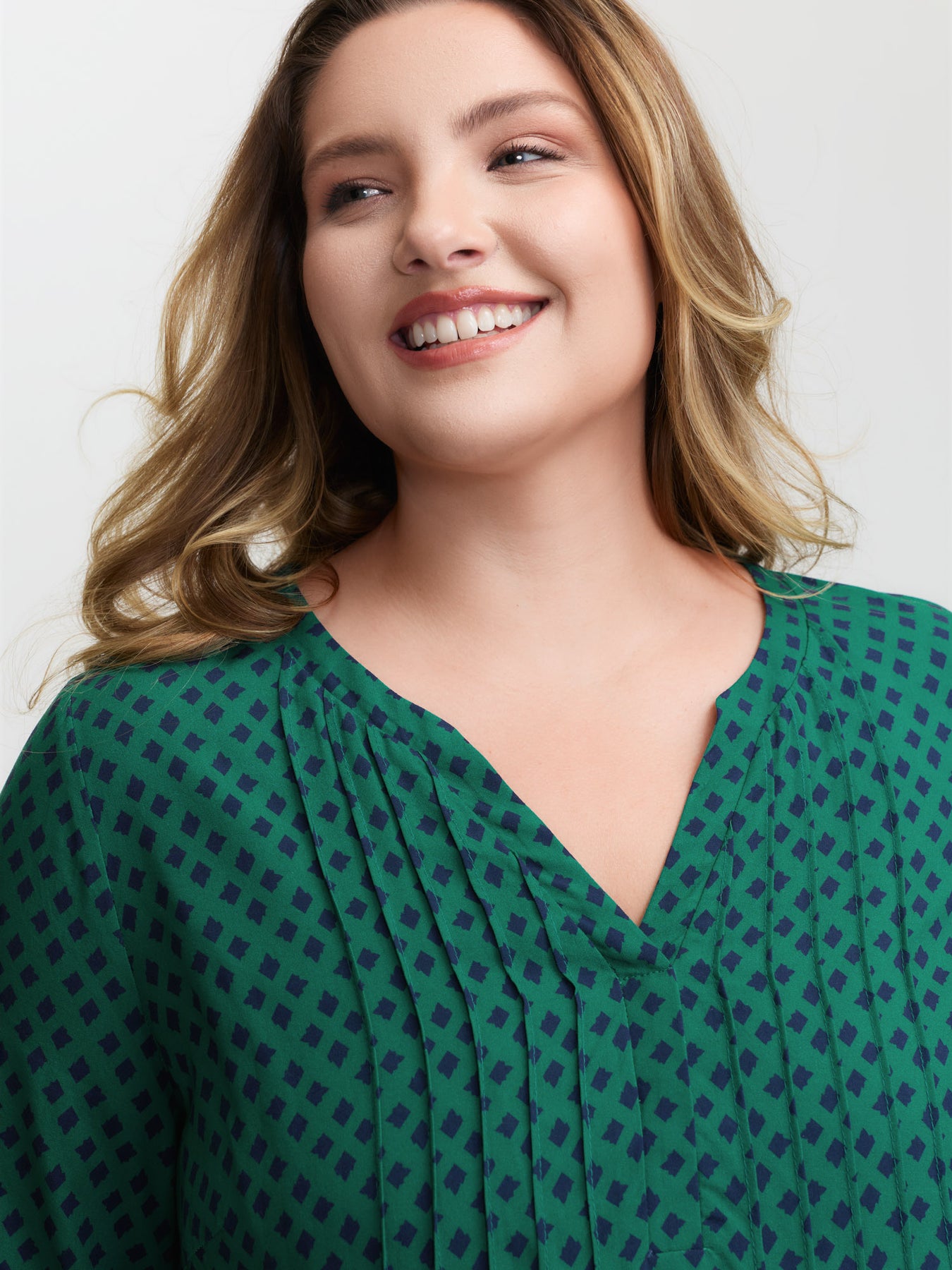 Geometric Print Bust-Ease Split Neck Blouse