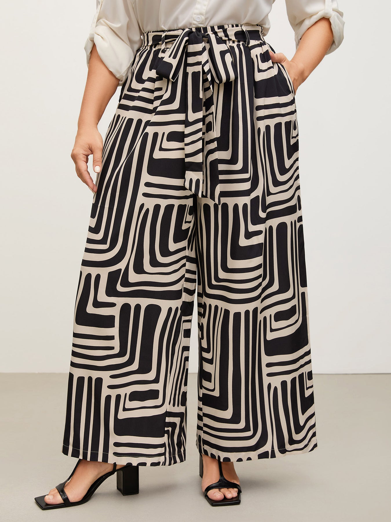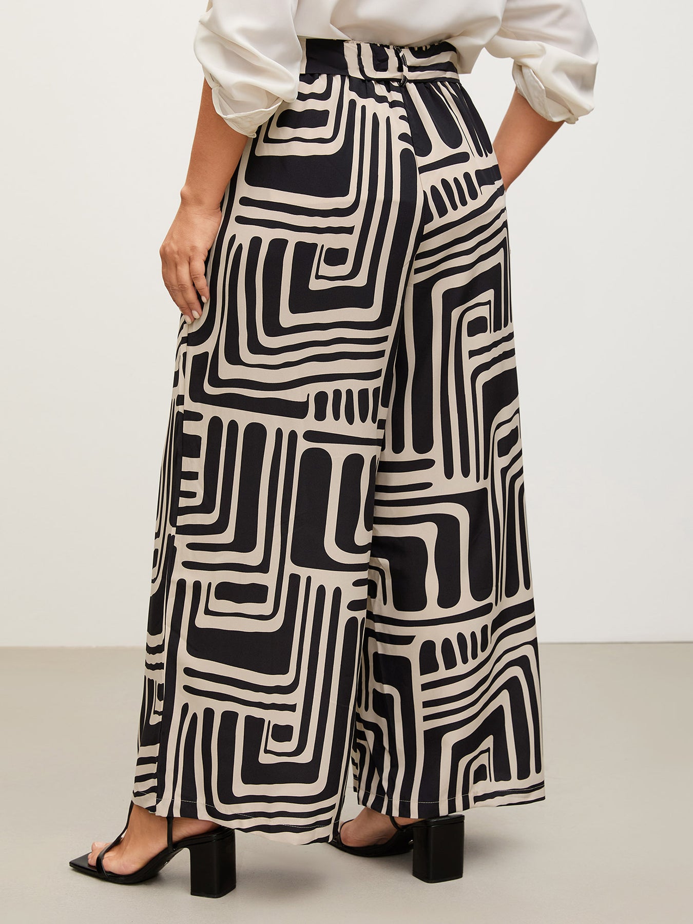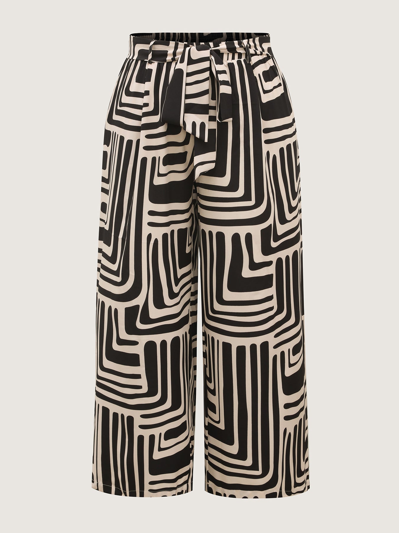Geometric Print Wide-Leg Belted Pants