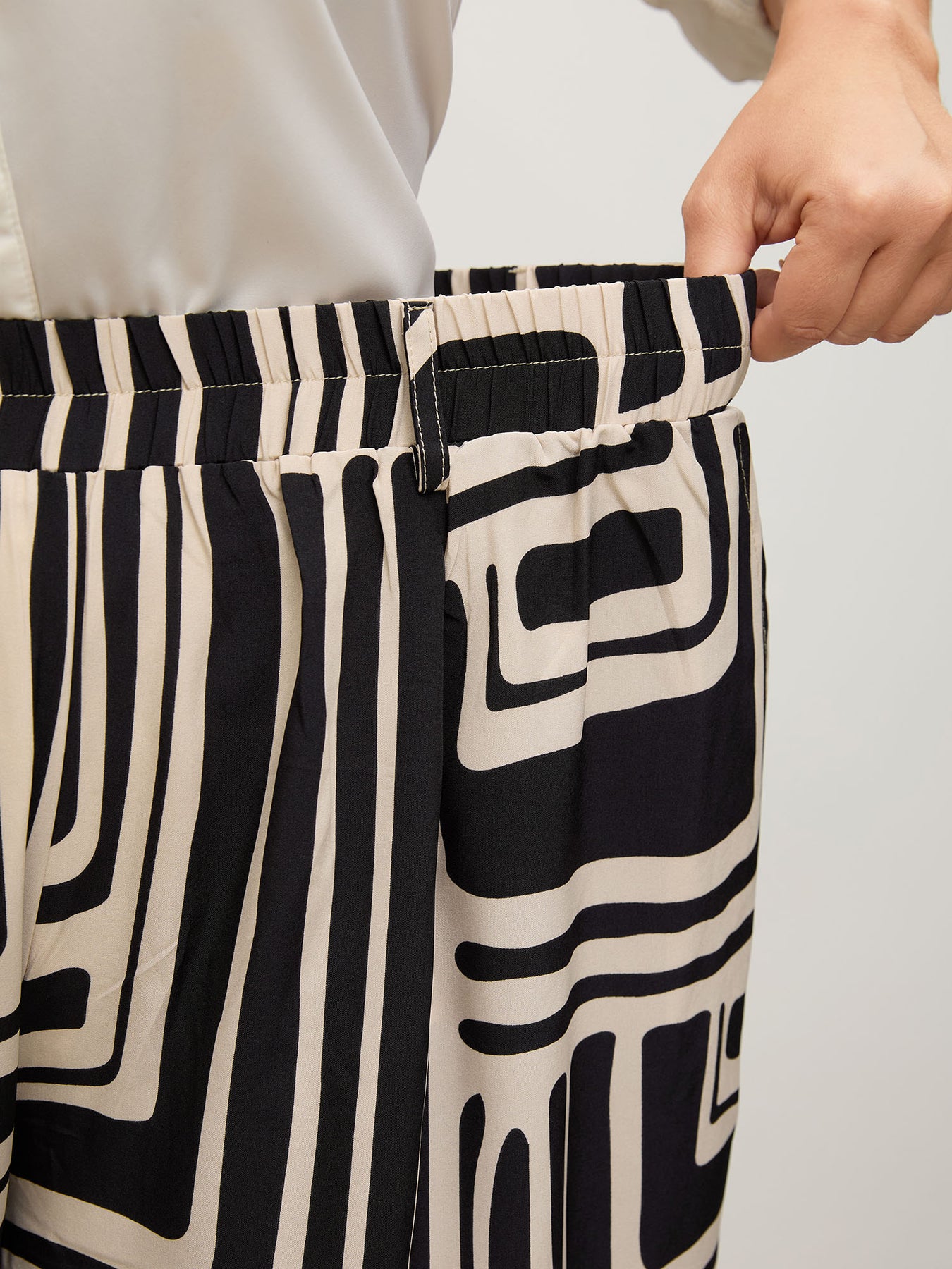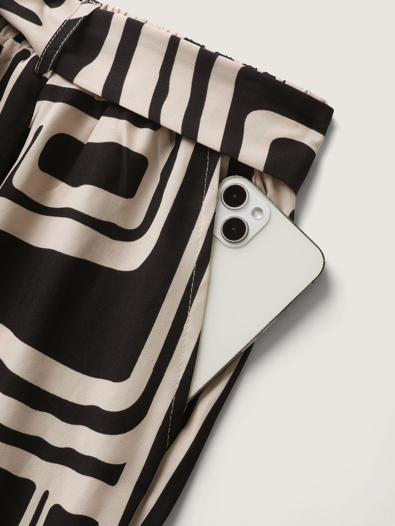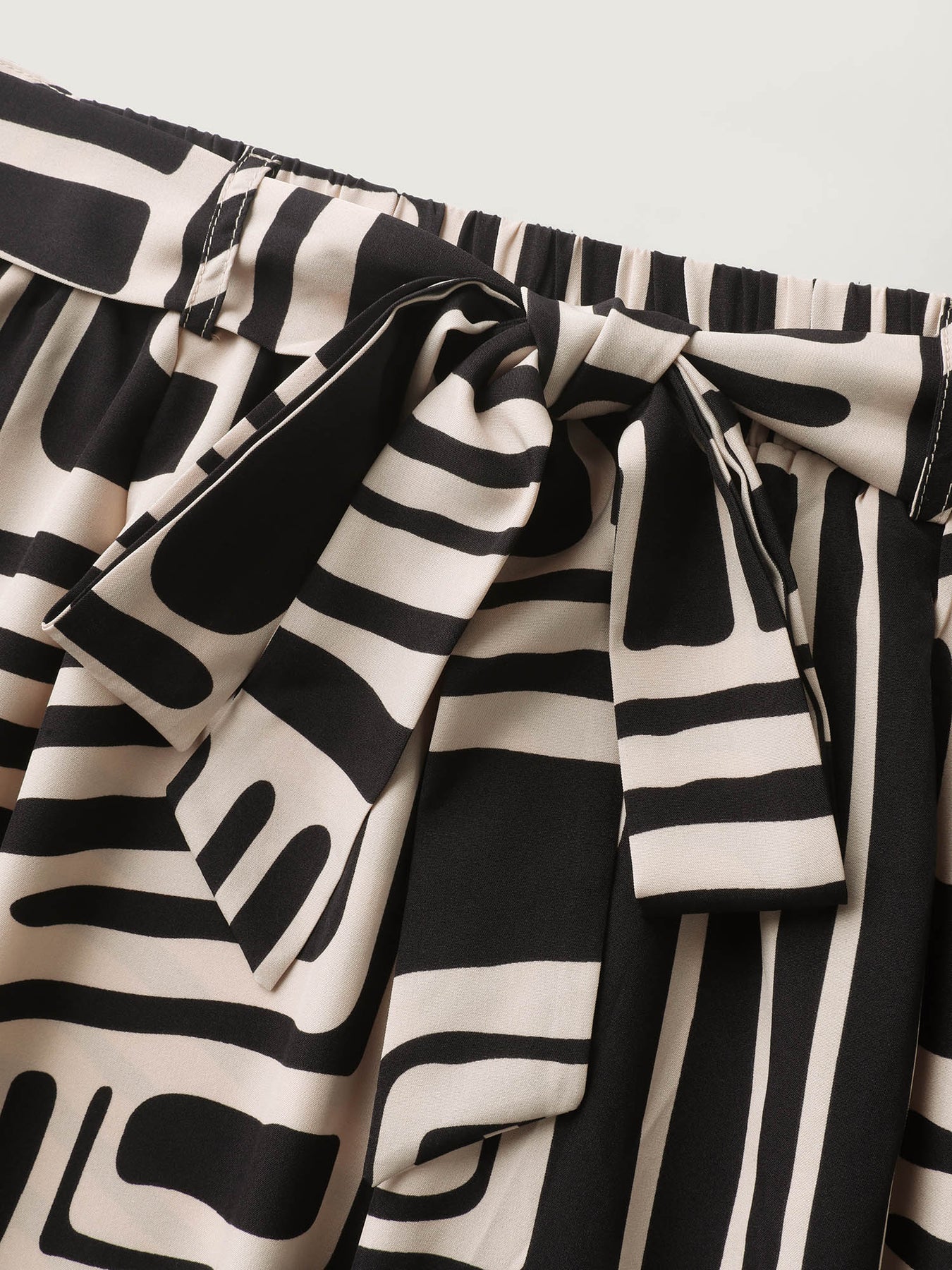 Geometric Print Wide-Leg Belted Pants