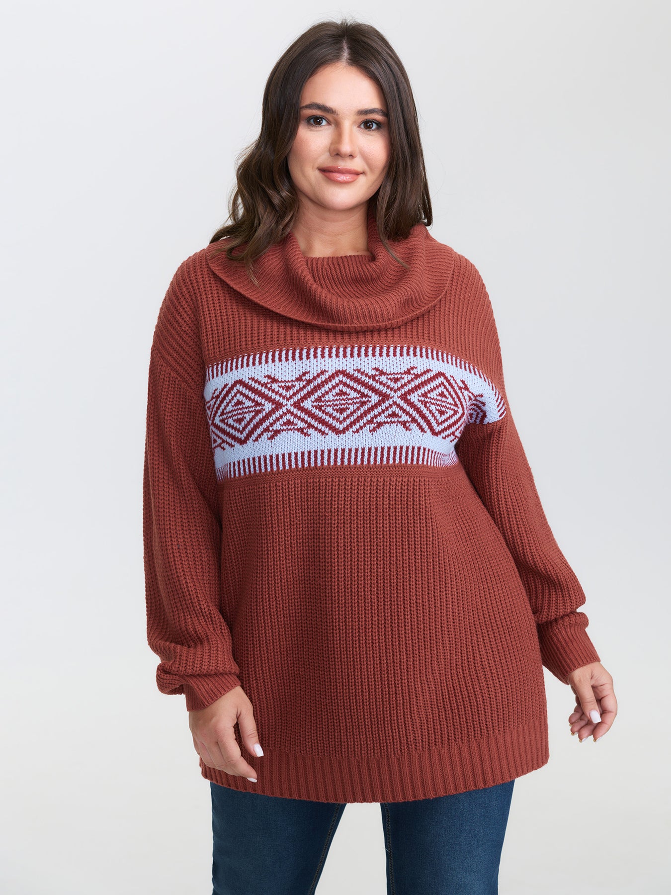 Geometric Snowflake Drape Turtleneck Pullover