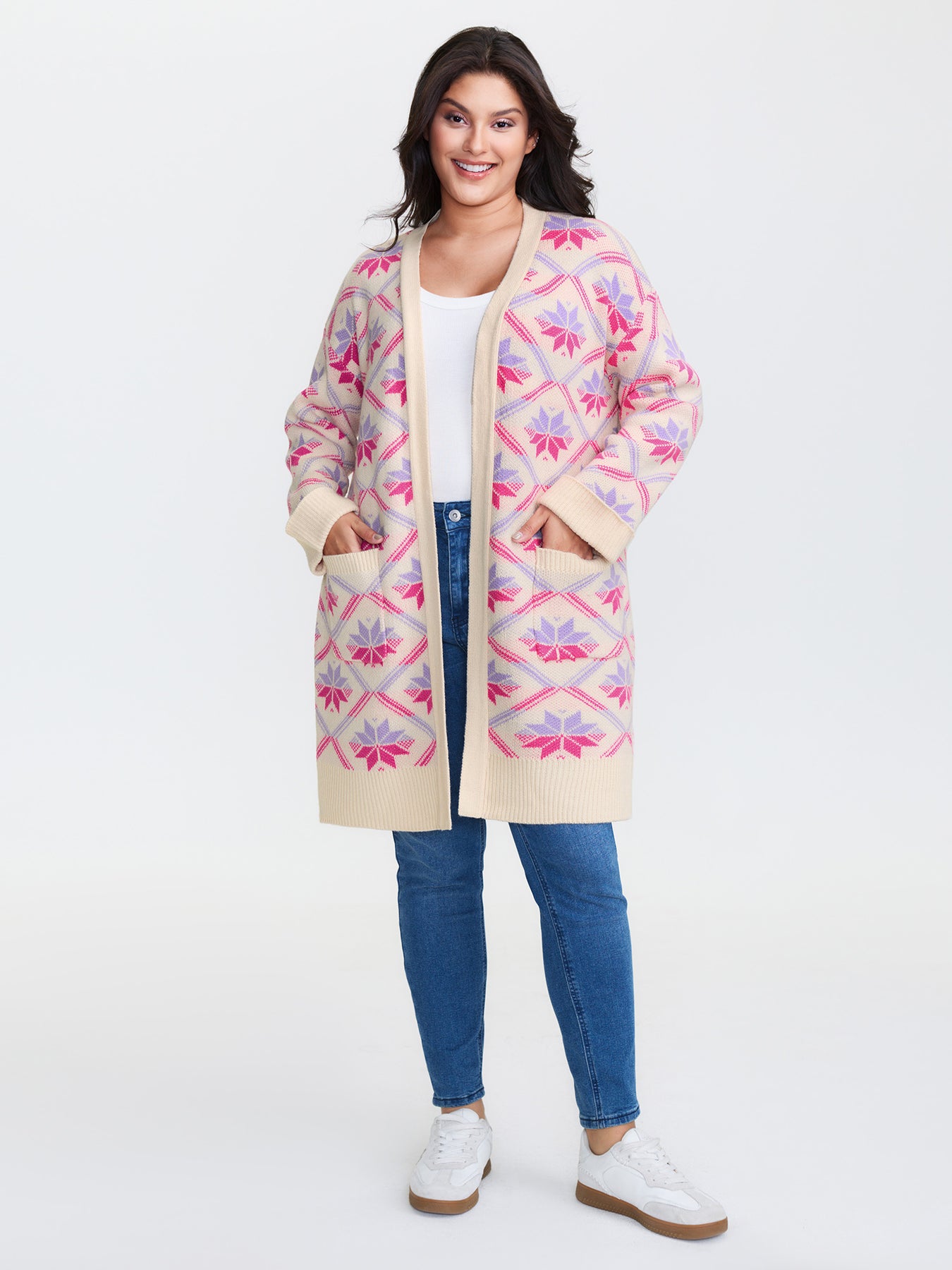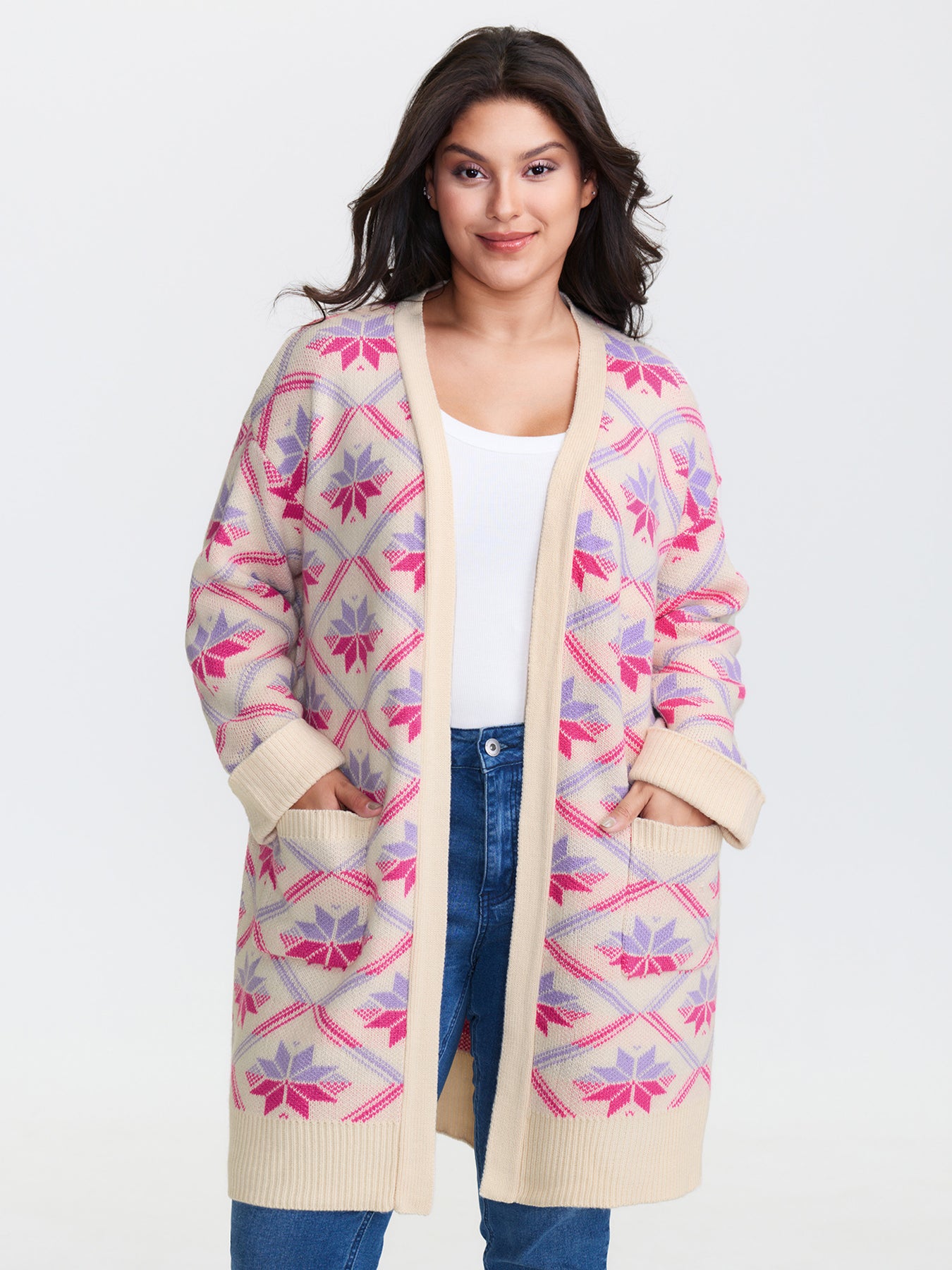 Geometric Snowflake Pattern Pockets Knit Cardigan