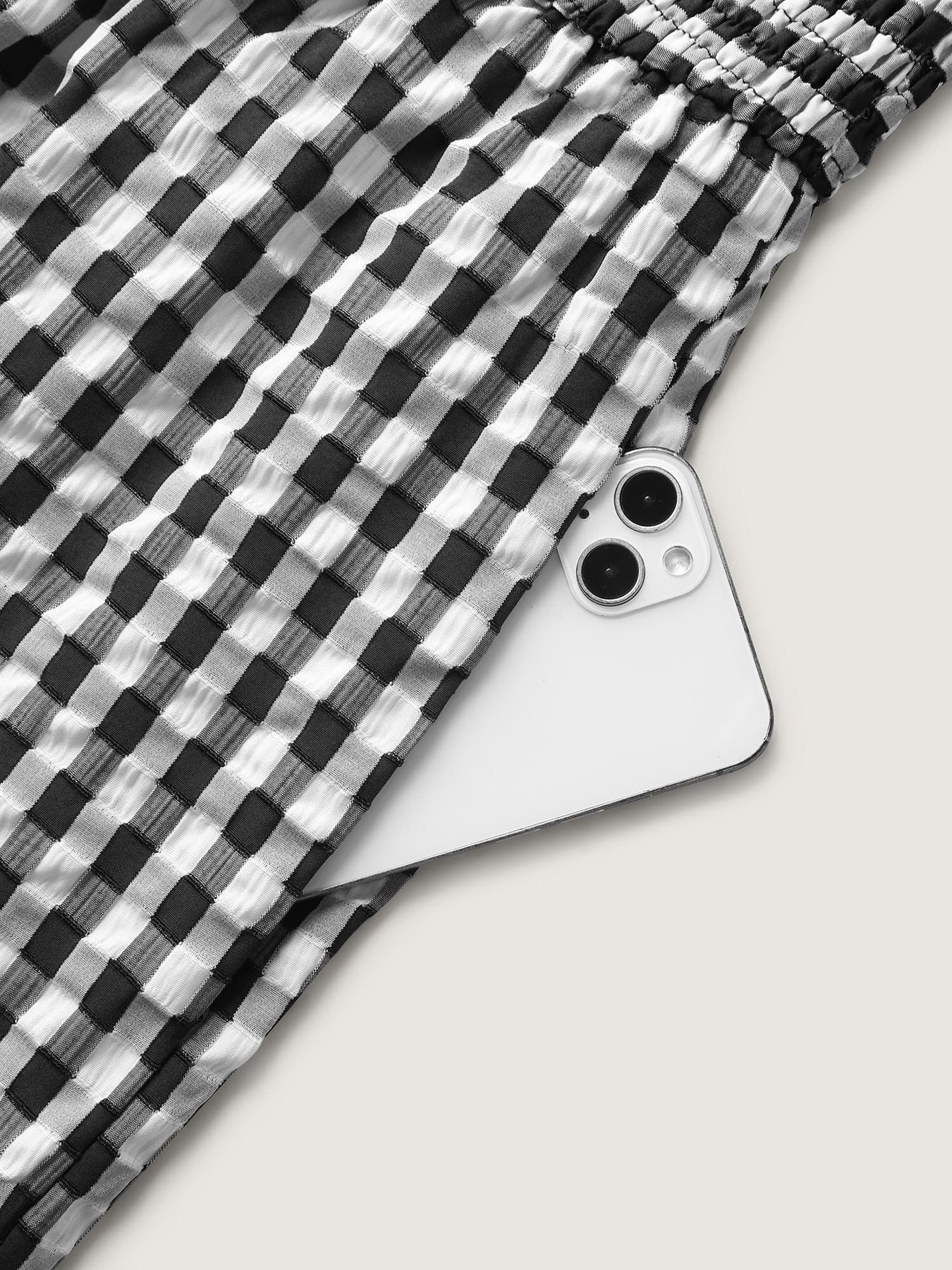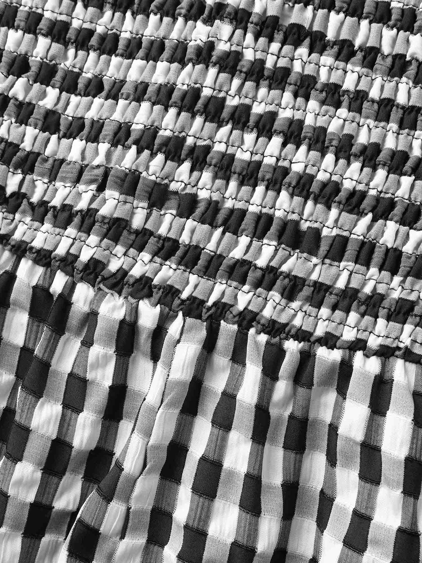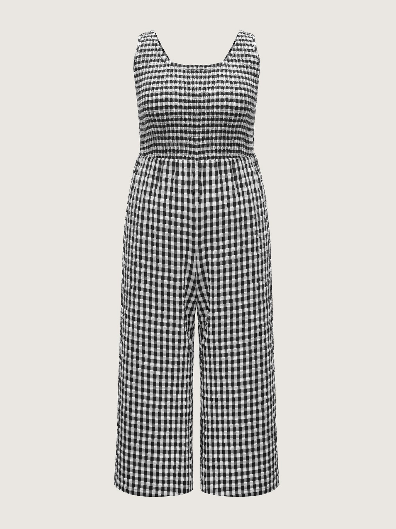 Gingham Print Shirred Straight-Leg Jumpsuit