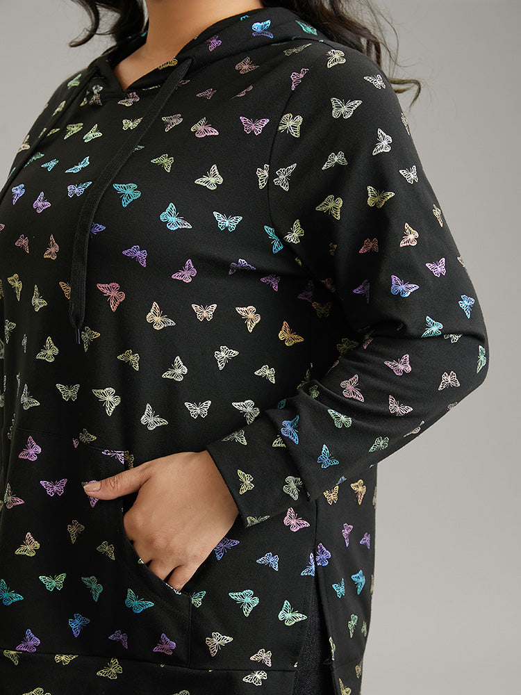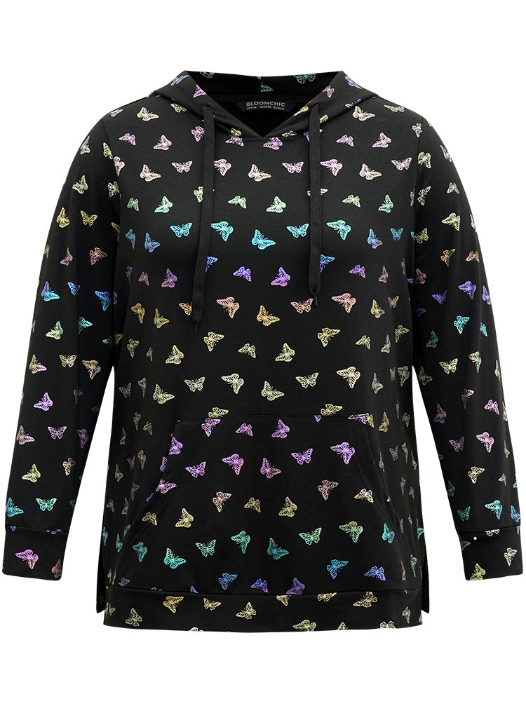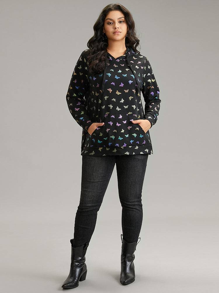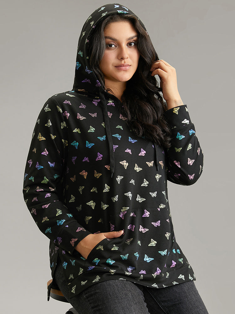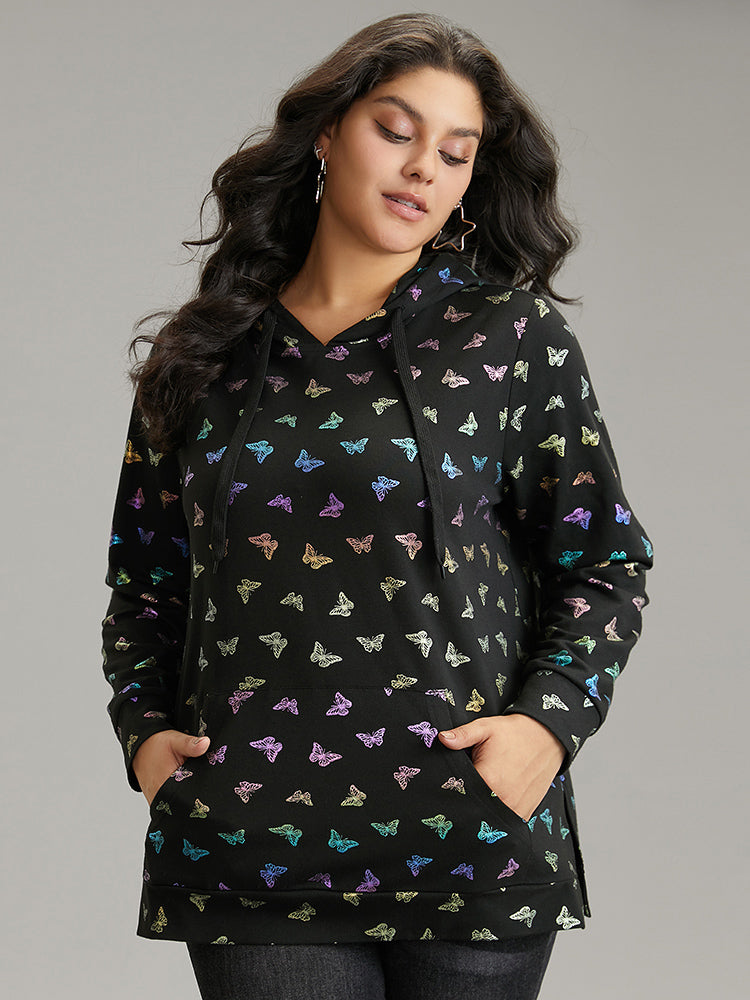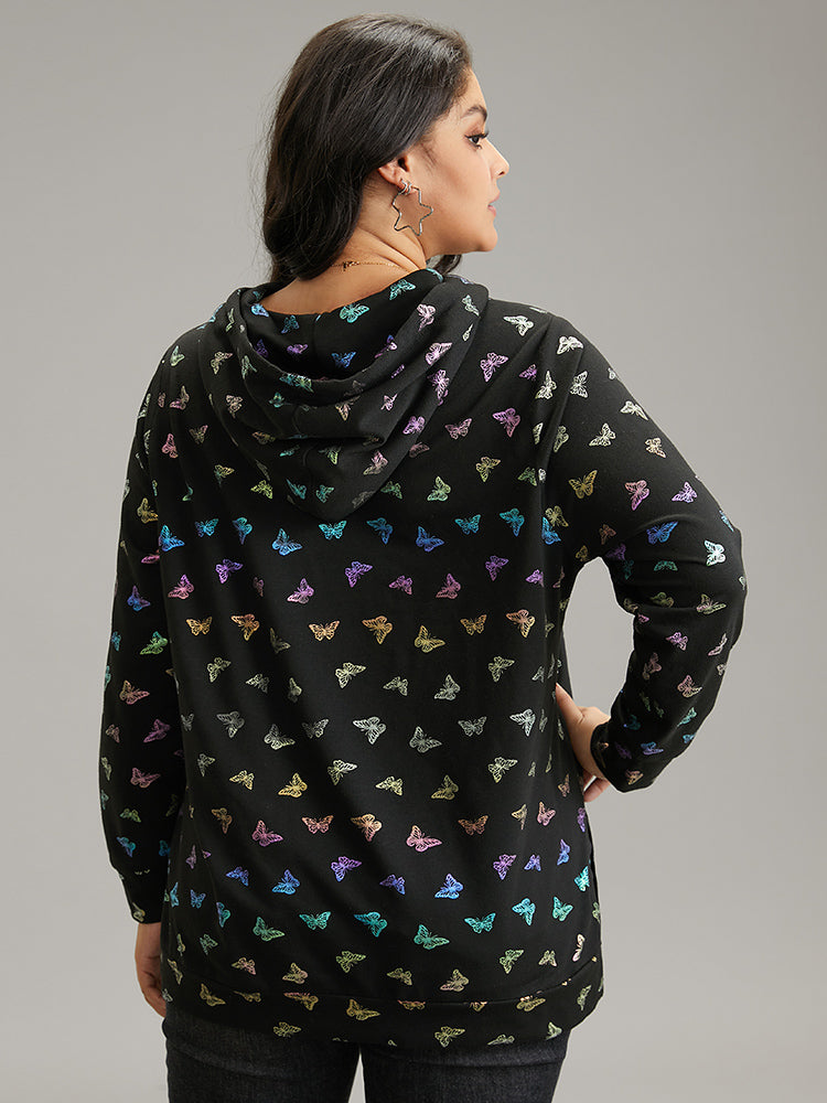 Glitter Butterfly Hooded Kangaroo Pocket Sweatshirt