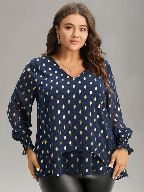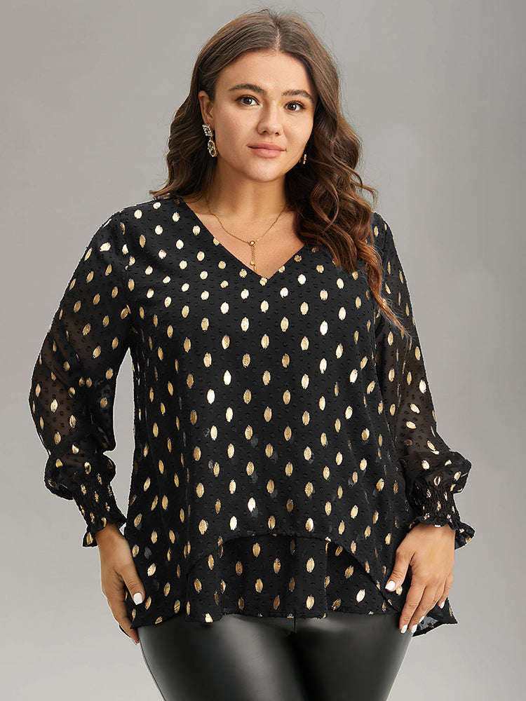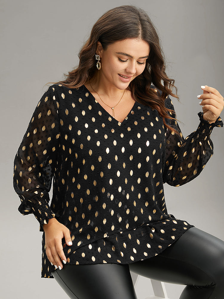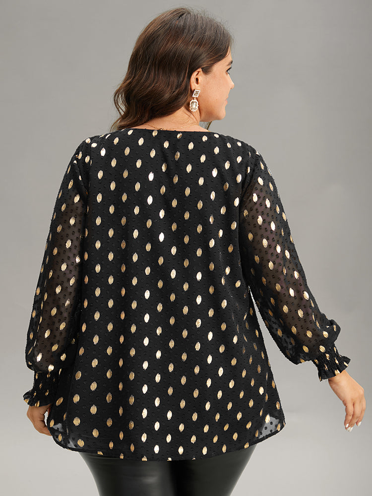 Glitter Polka Dot Textured Shirred Tiered Blouse