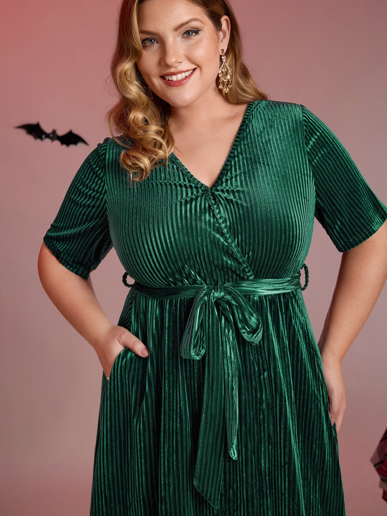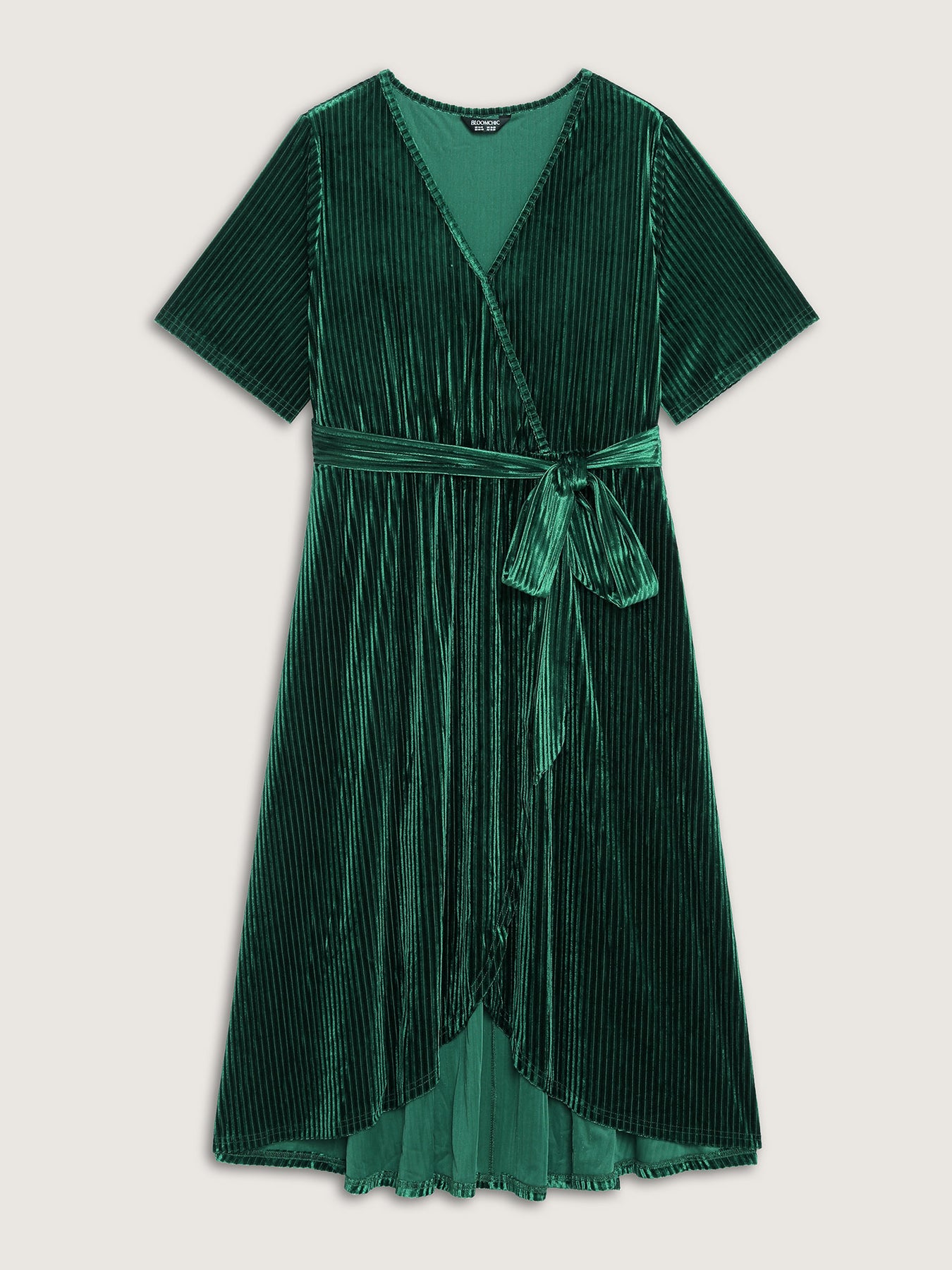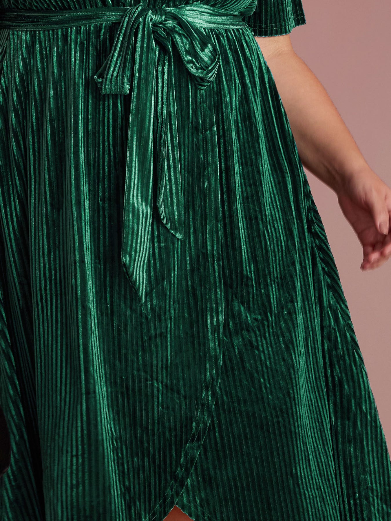Glossy Textured Velvet Wrap Tied Midi Dress