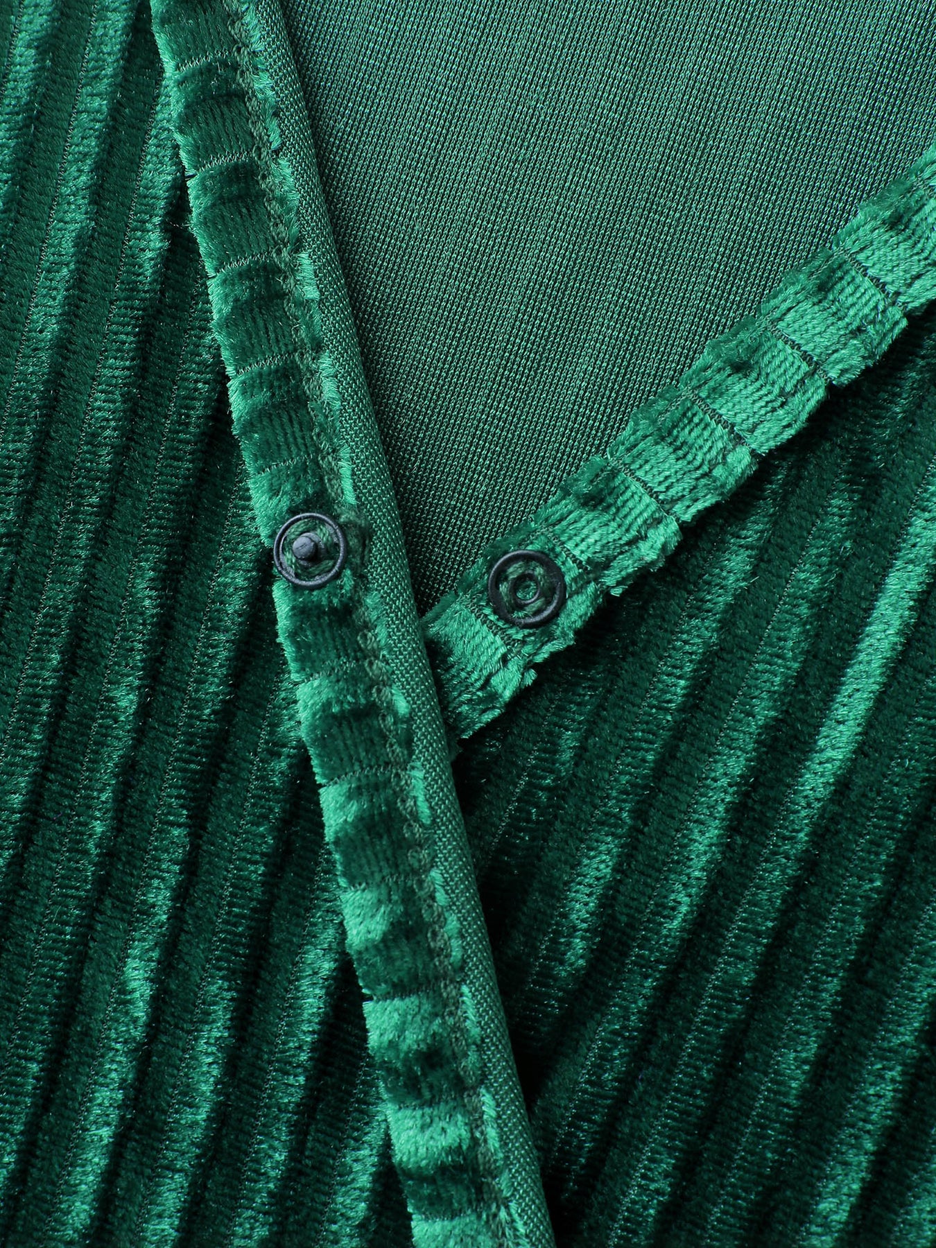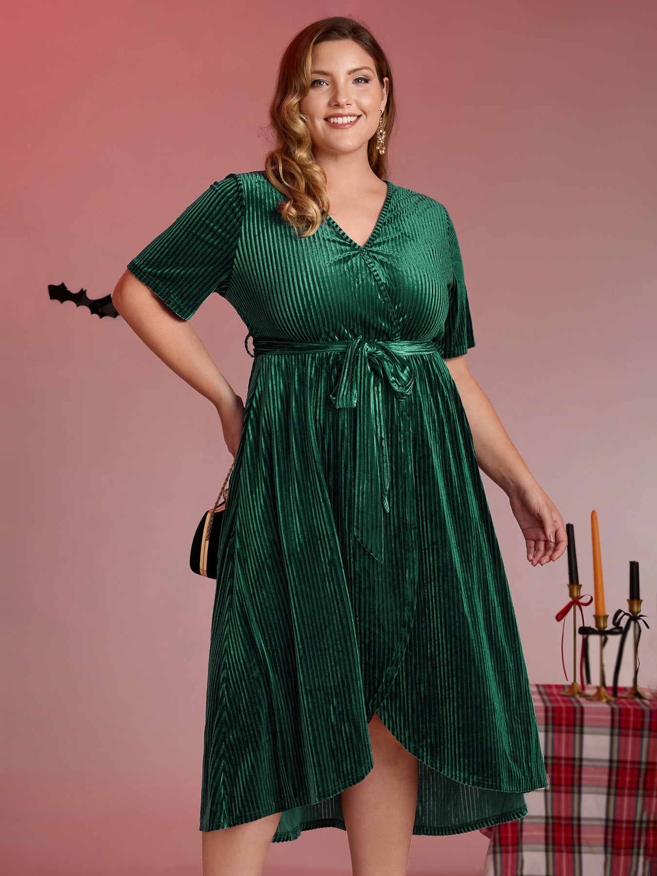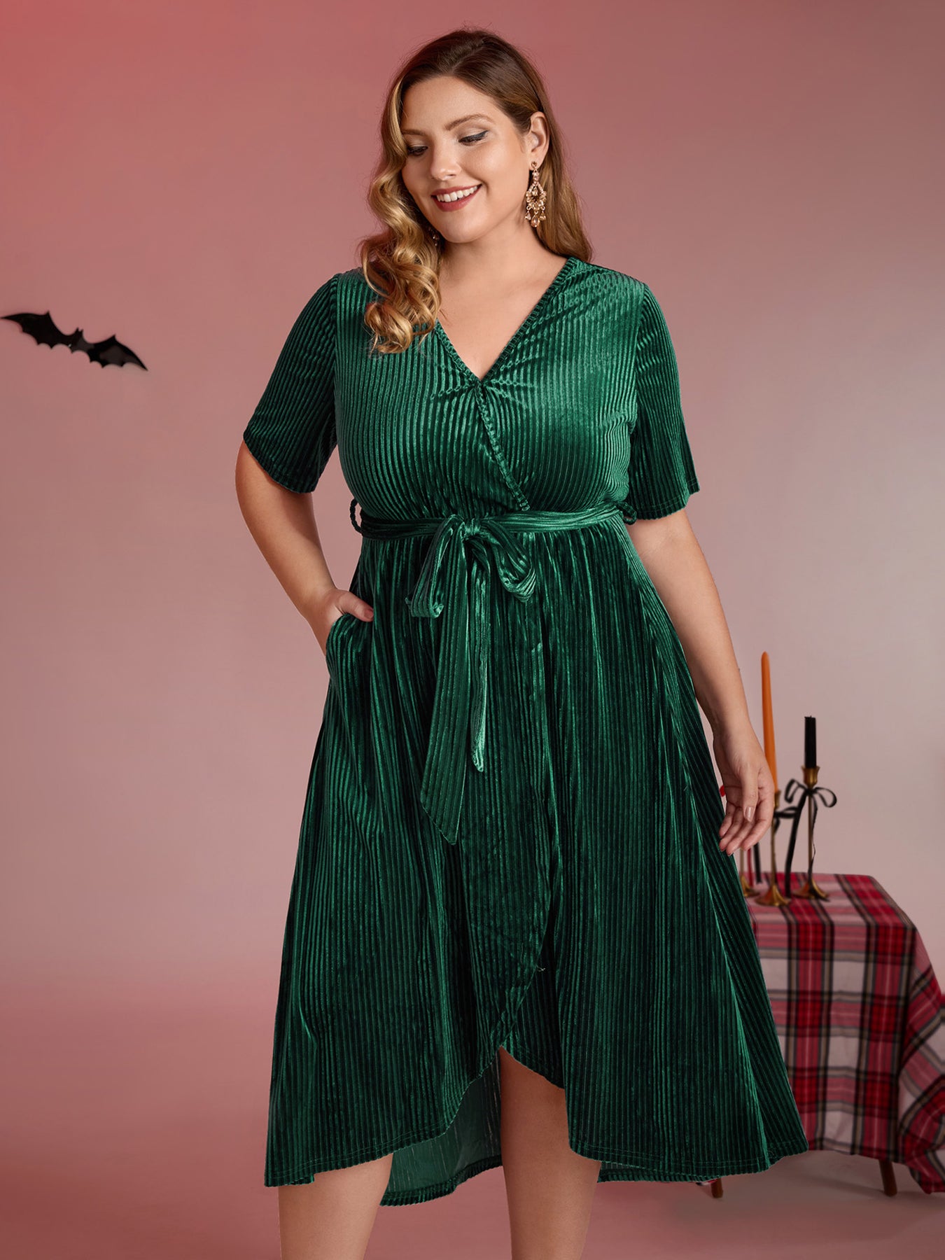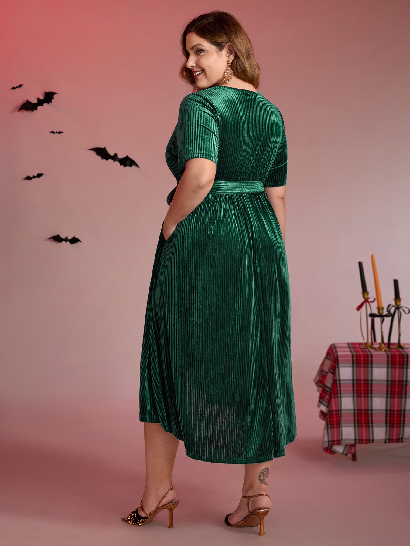 Glossy Textured Velvet Wrap Tied Midi Dress