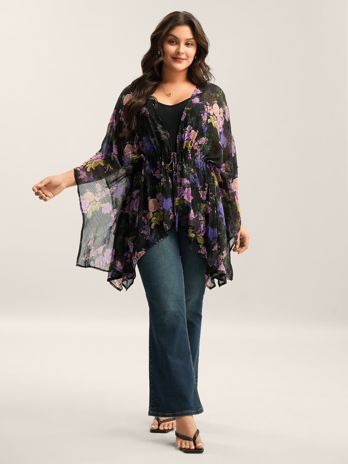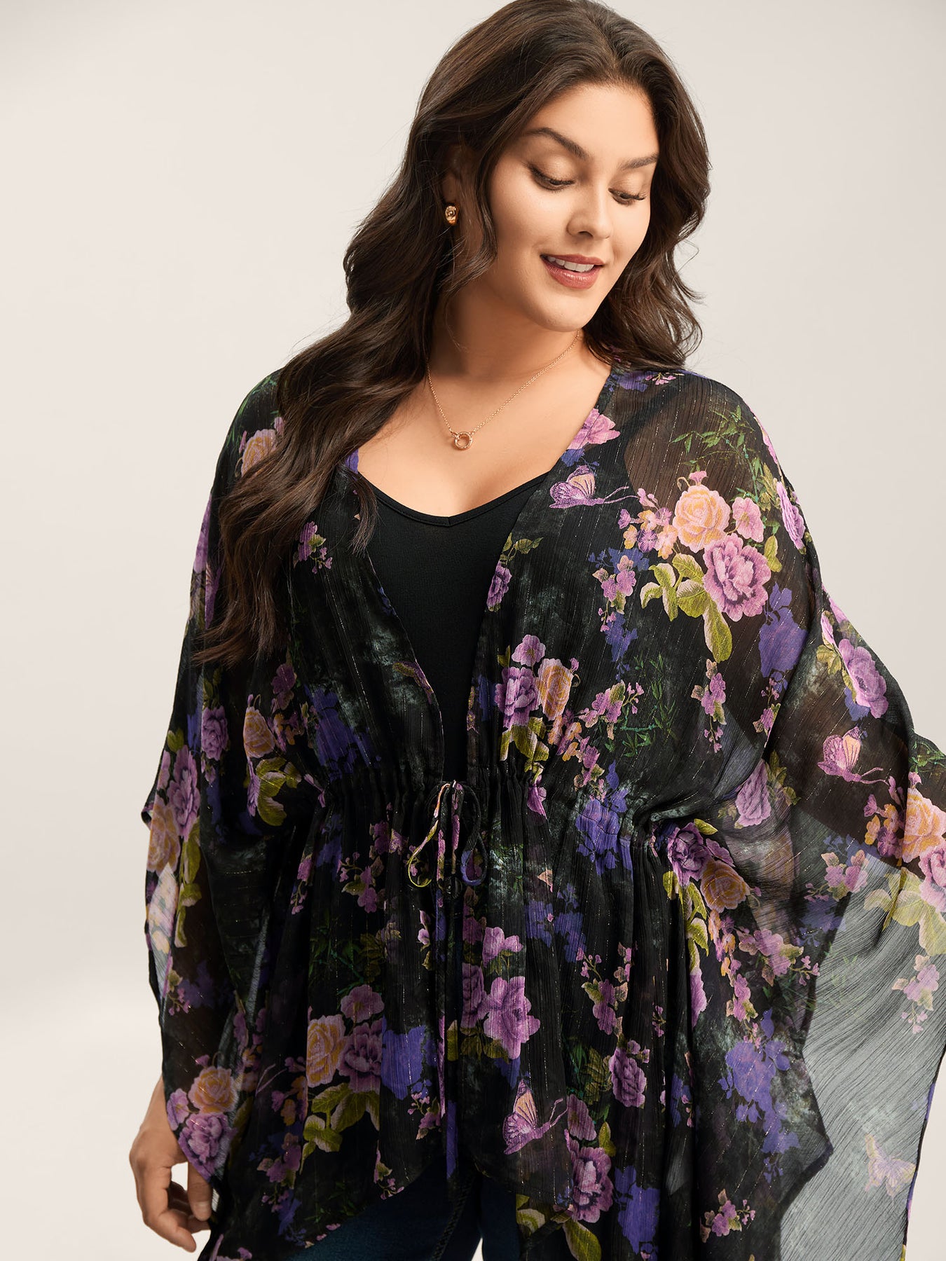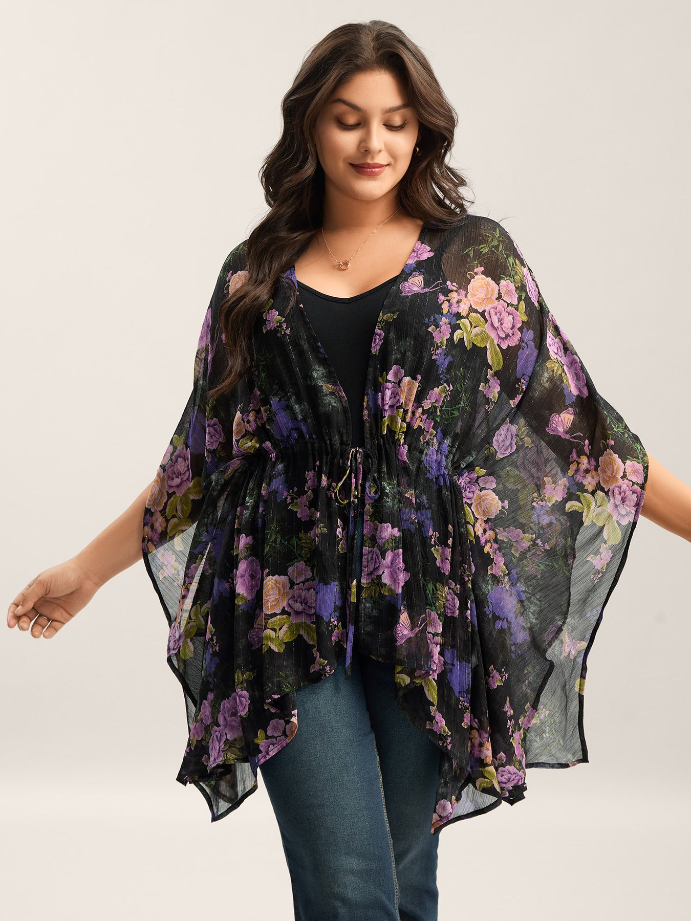 Gold Silver Wire Mesh Drawstring Kimono