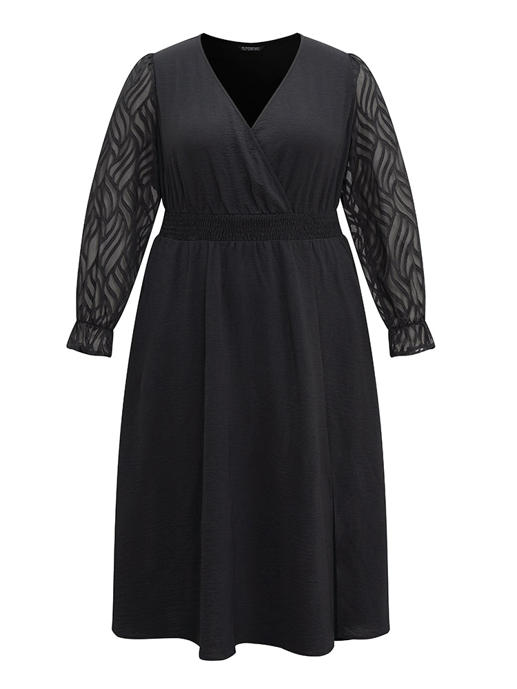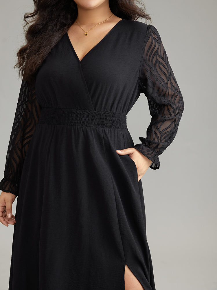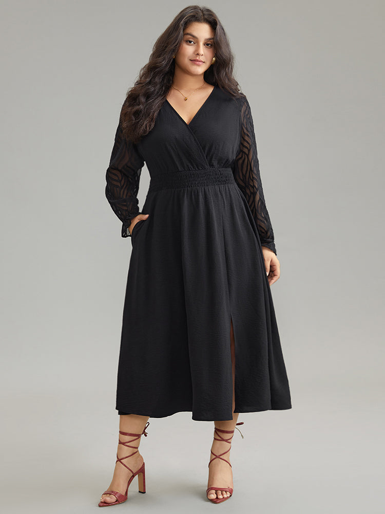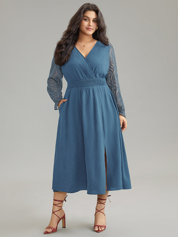 Graphic Mesh Patchwork Pocket Split Side Dress