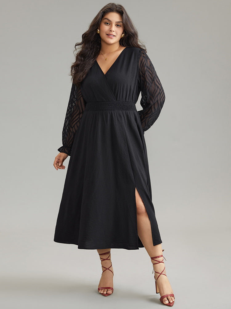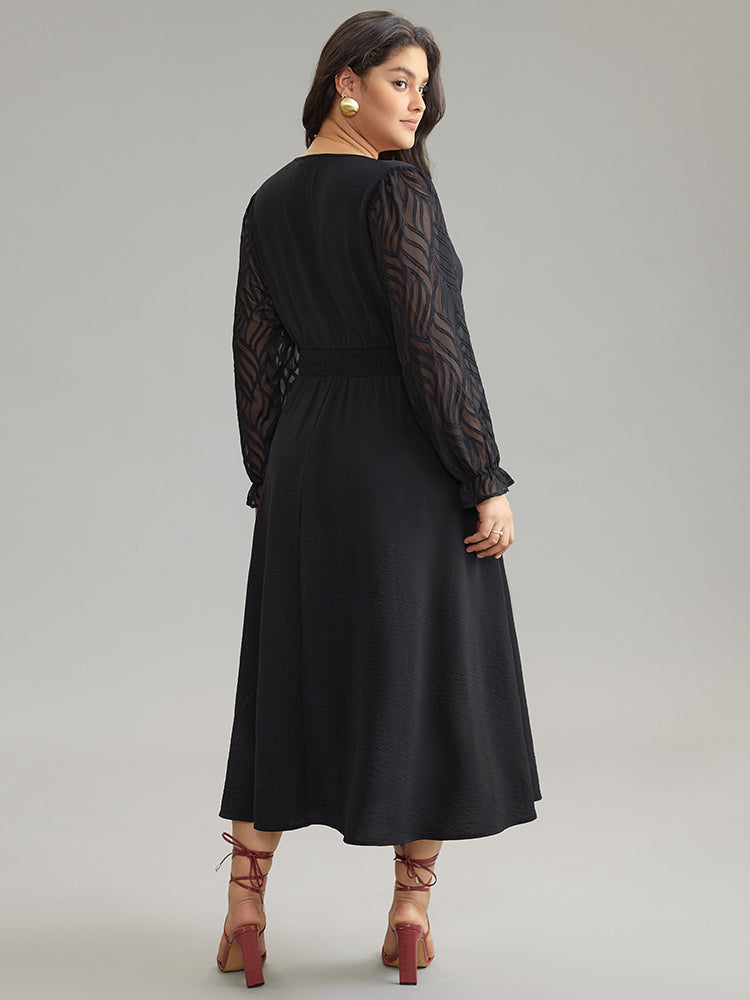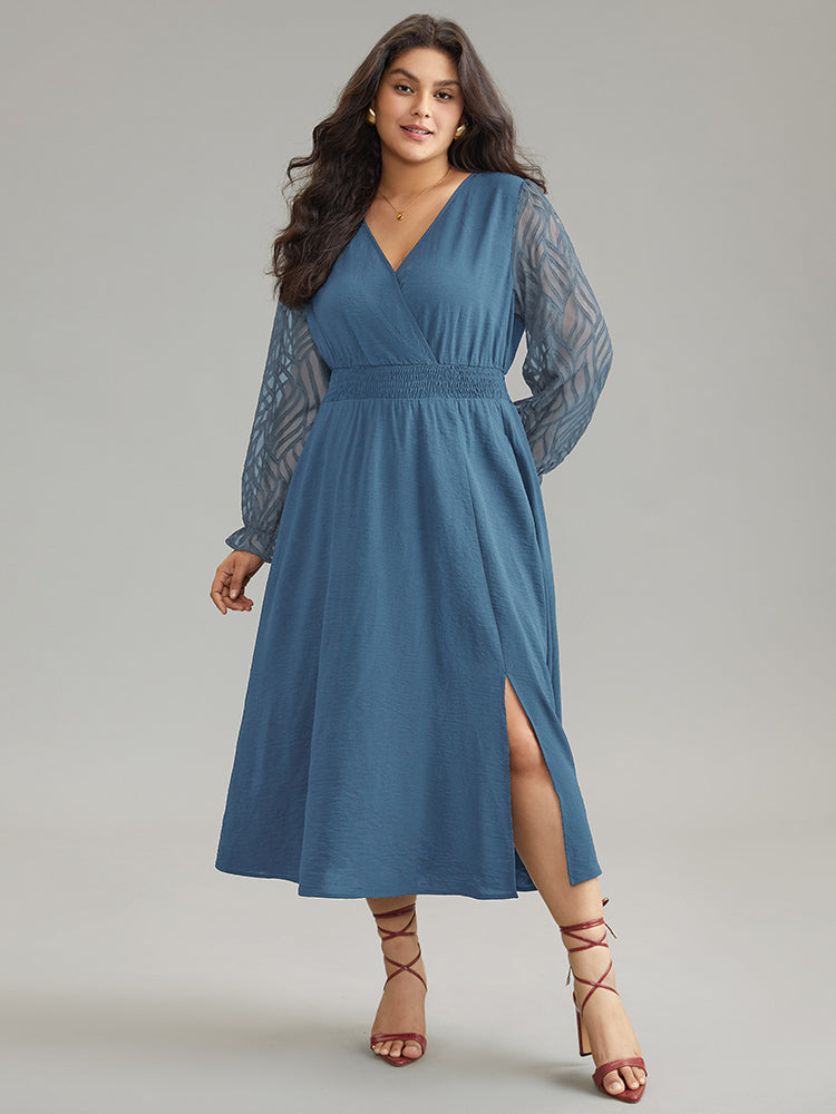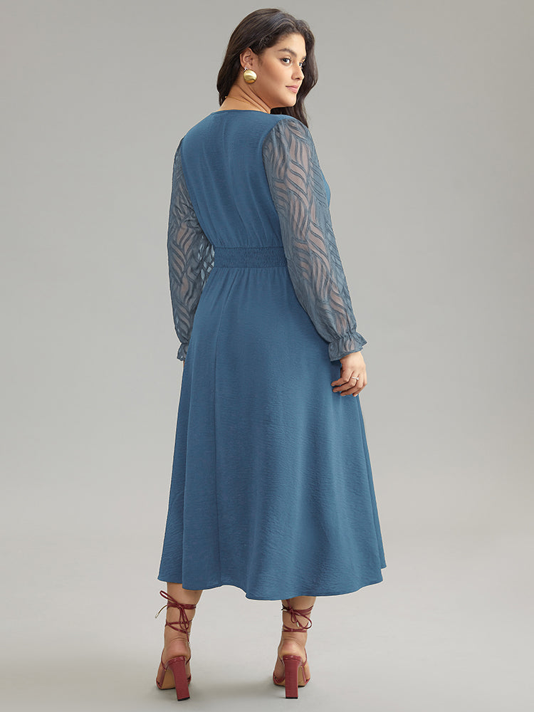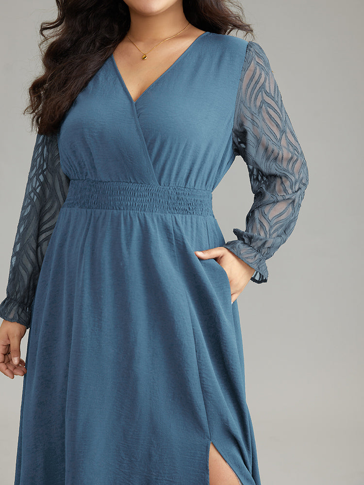 Graphic Mesh Patchwork Pocket Split Side Dress