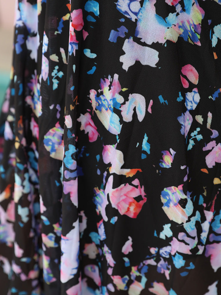 Graphic Print Ruffles Crisscross Deep V Neck Swim Dress