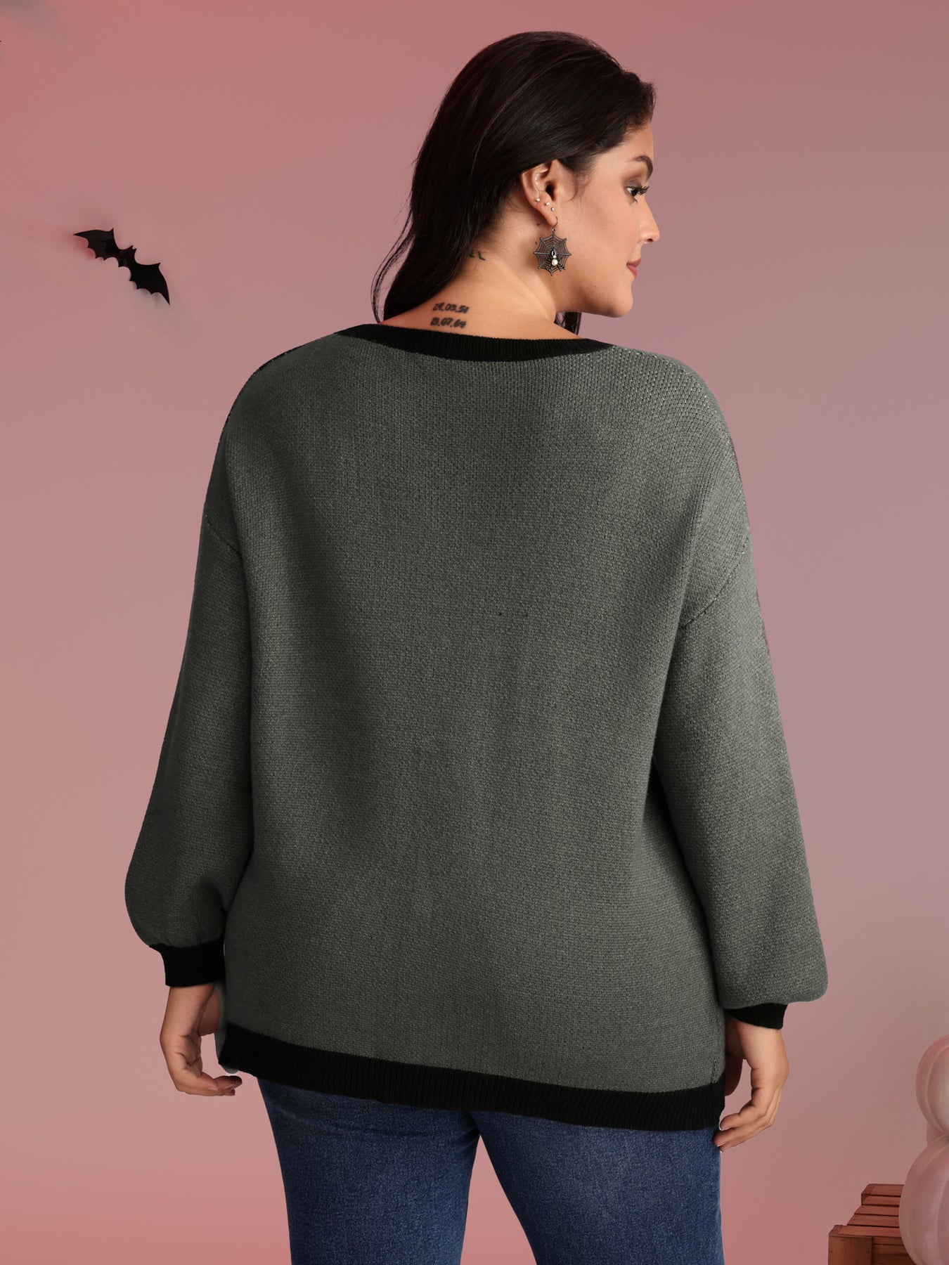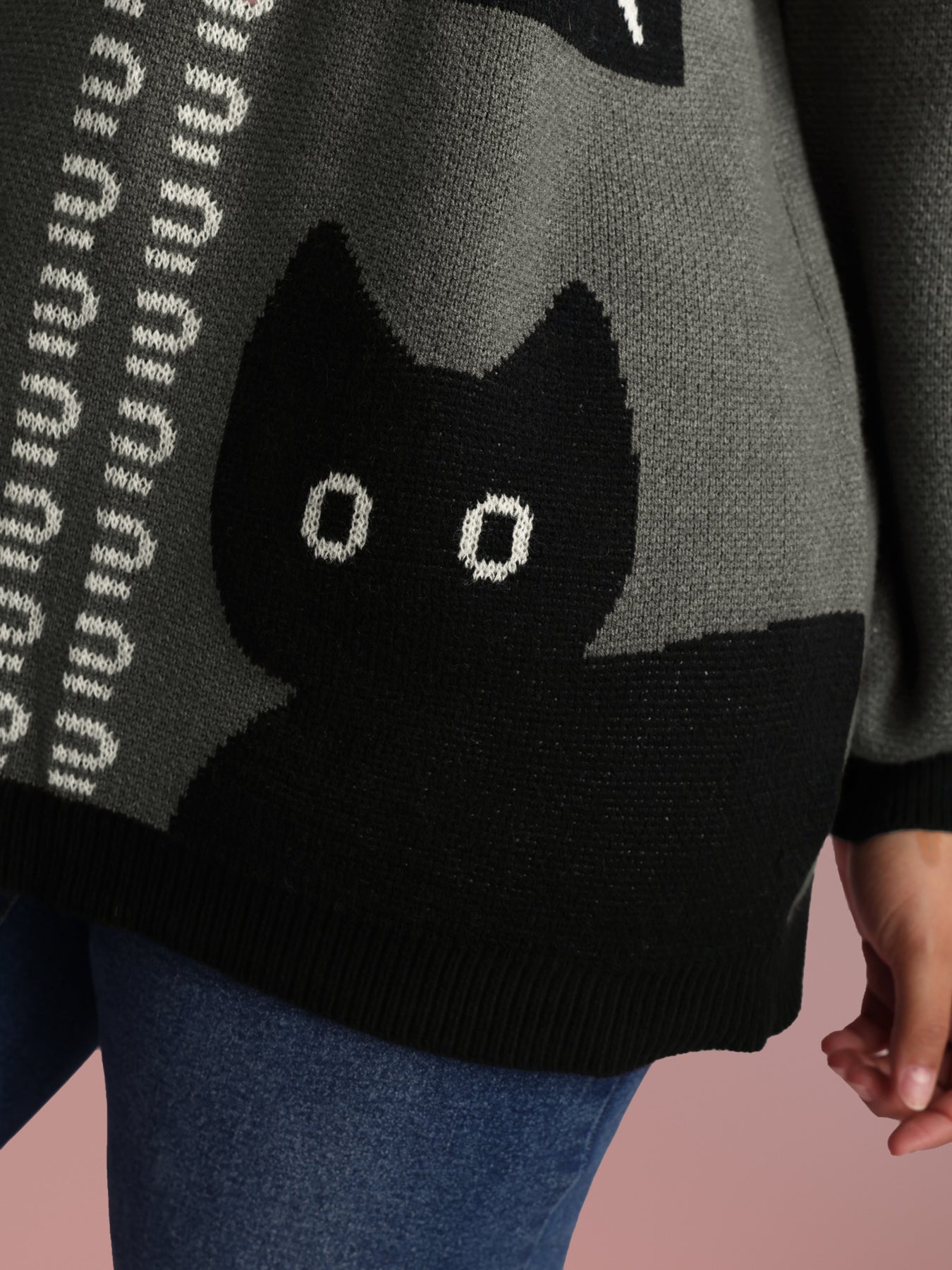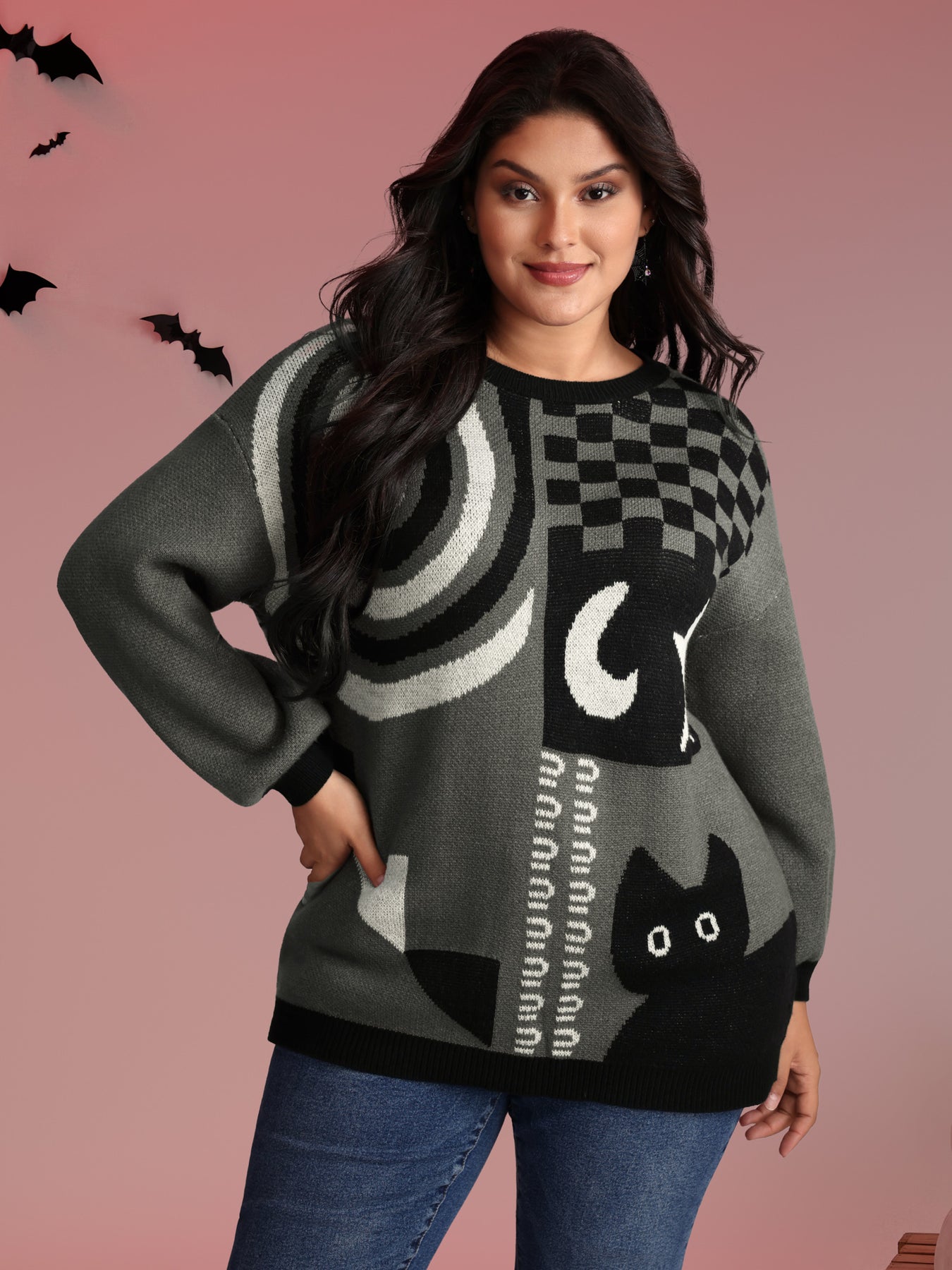 Halloween Cat Print Contrast Pullover