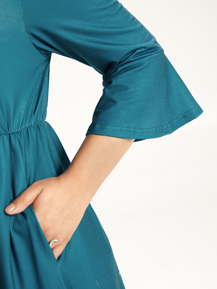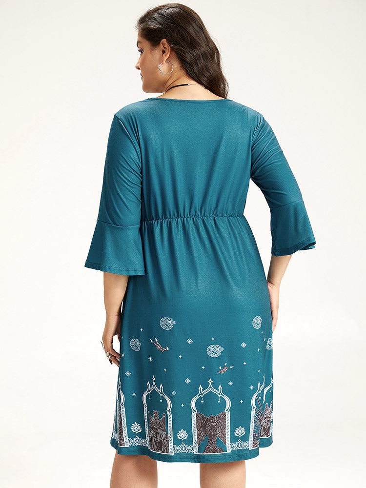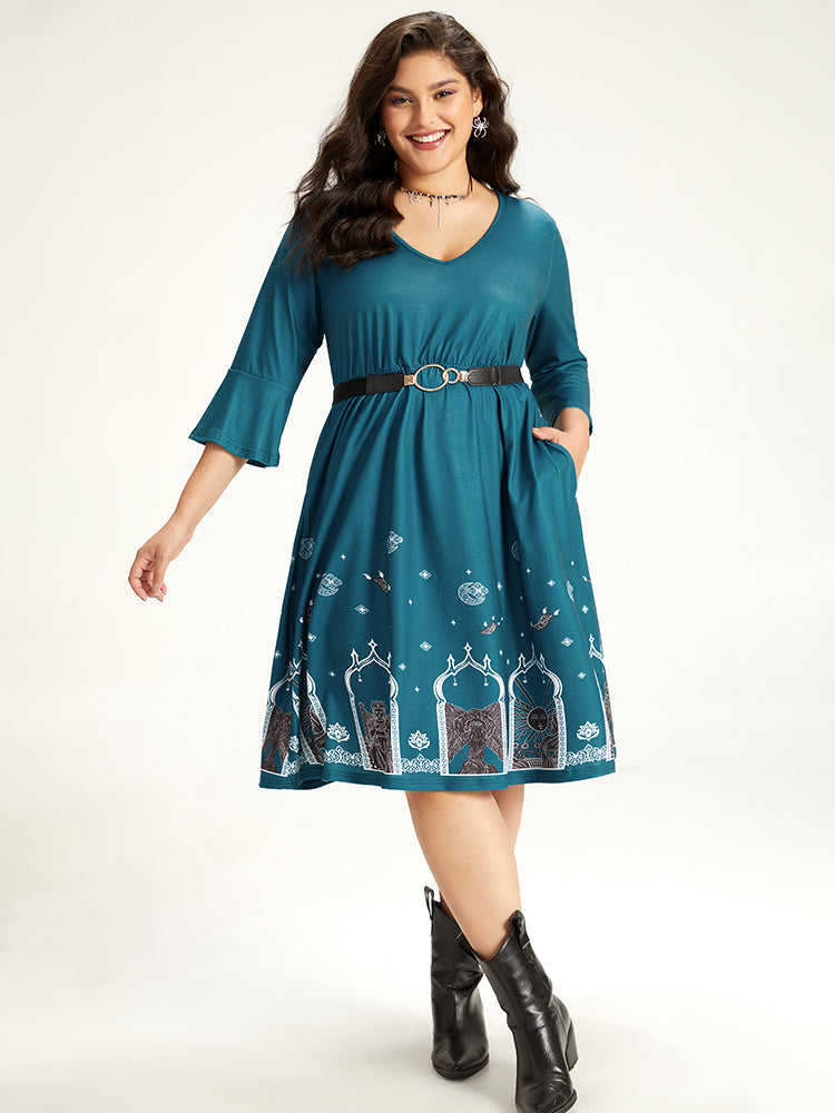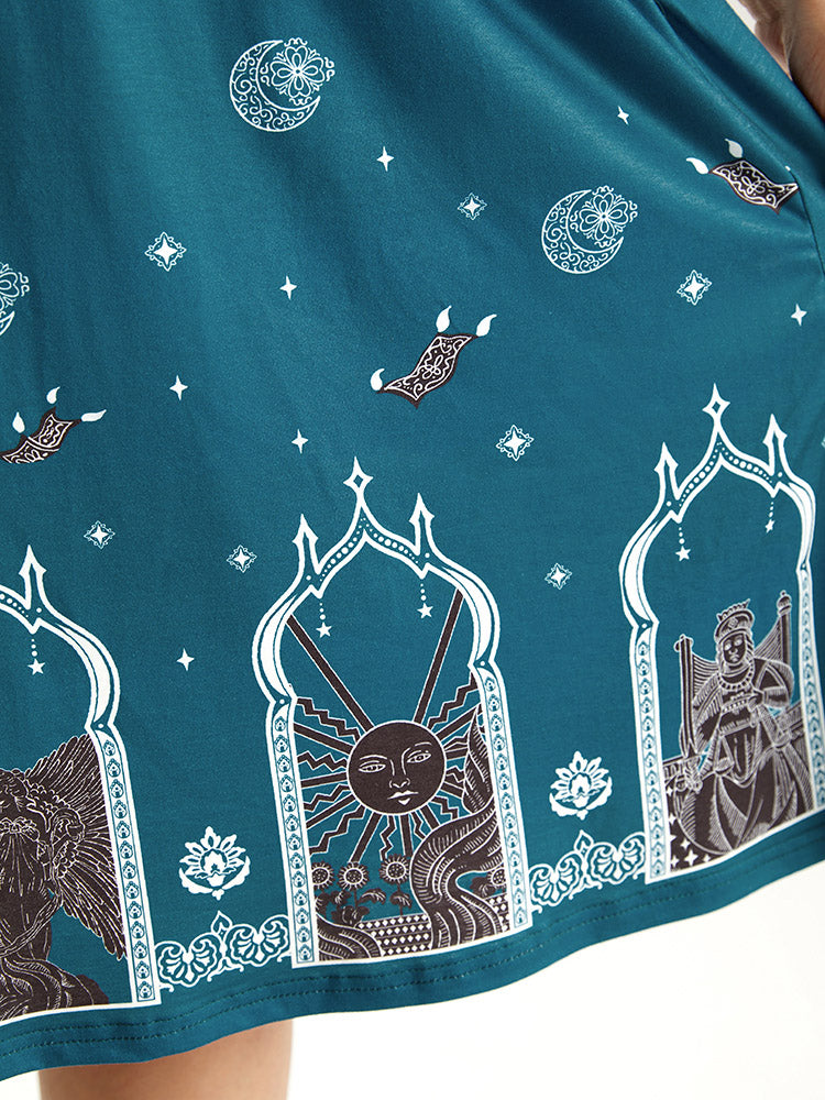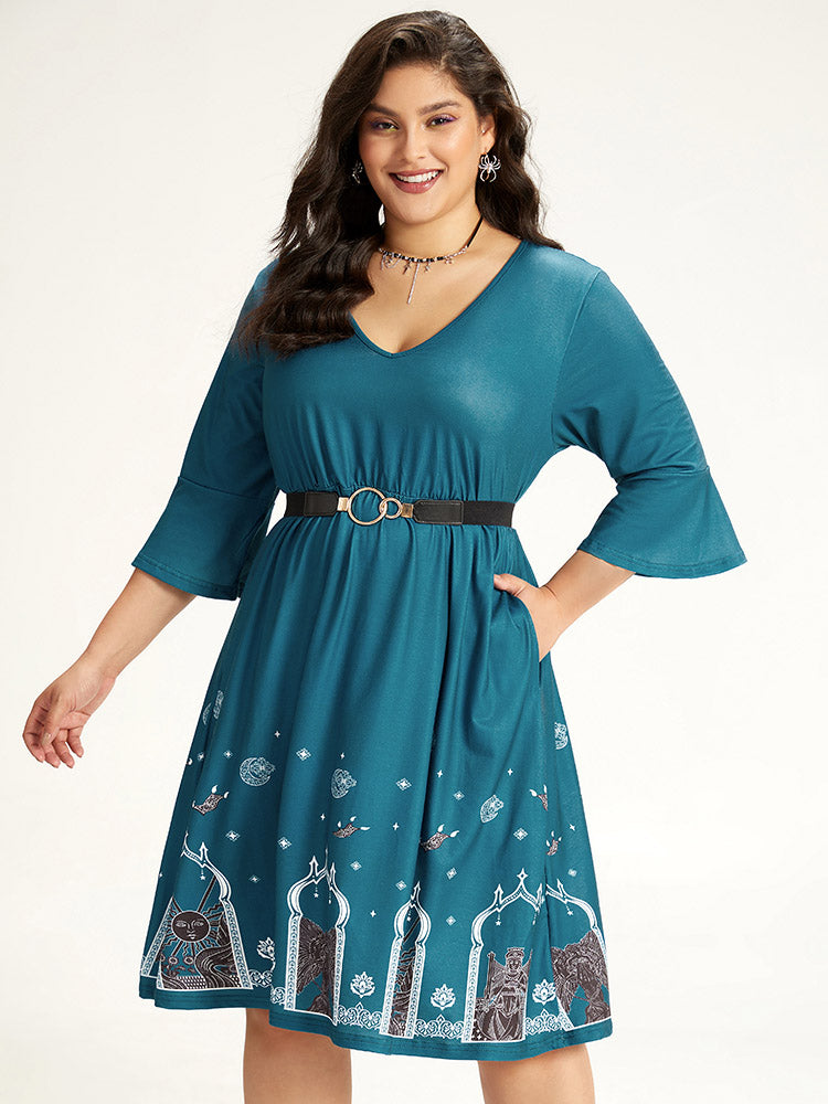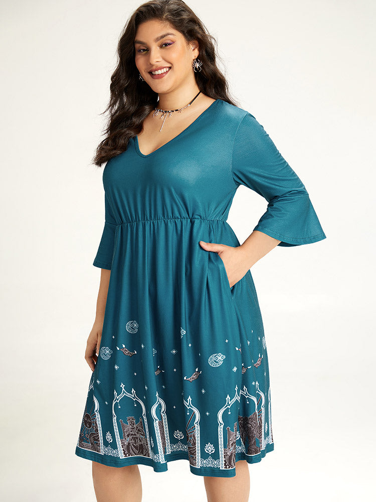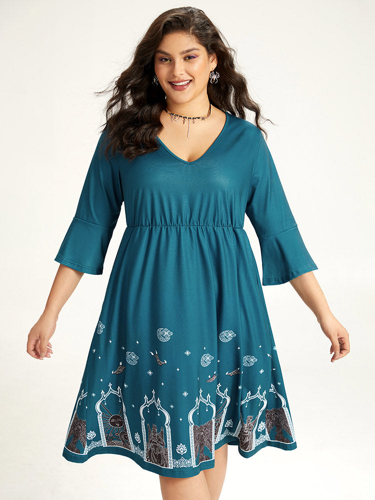 Halloween Graphic Pocket Ruffle Trim Gathered Dress