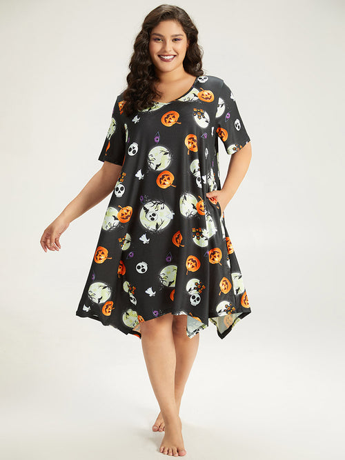 Halloween Graphic Round Neck Sleep Midi Dress