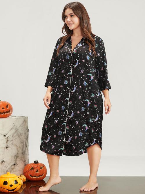 Halloween Lapel Collar Button Through Arc Hem Dress