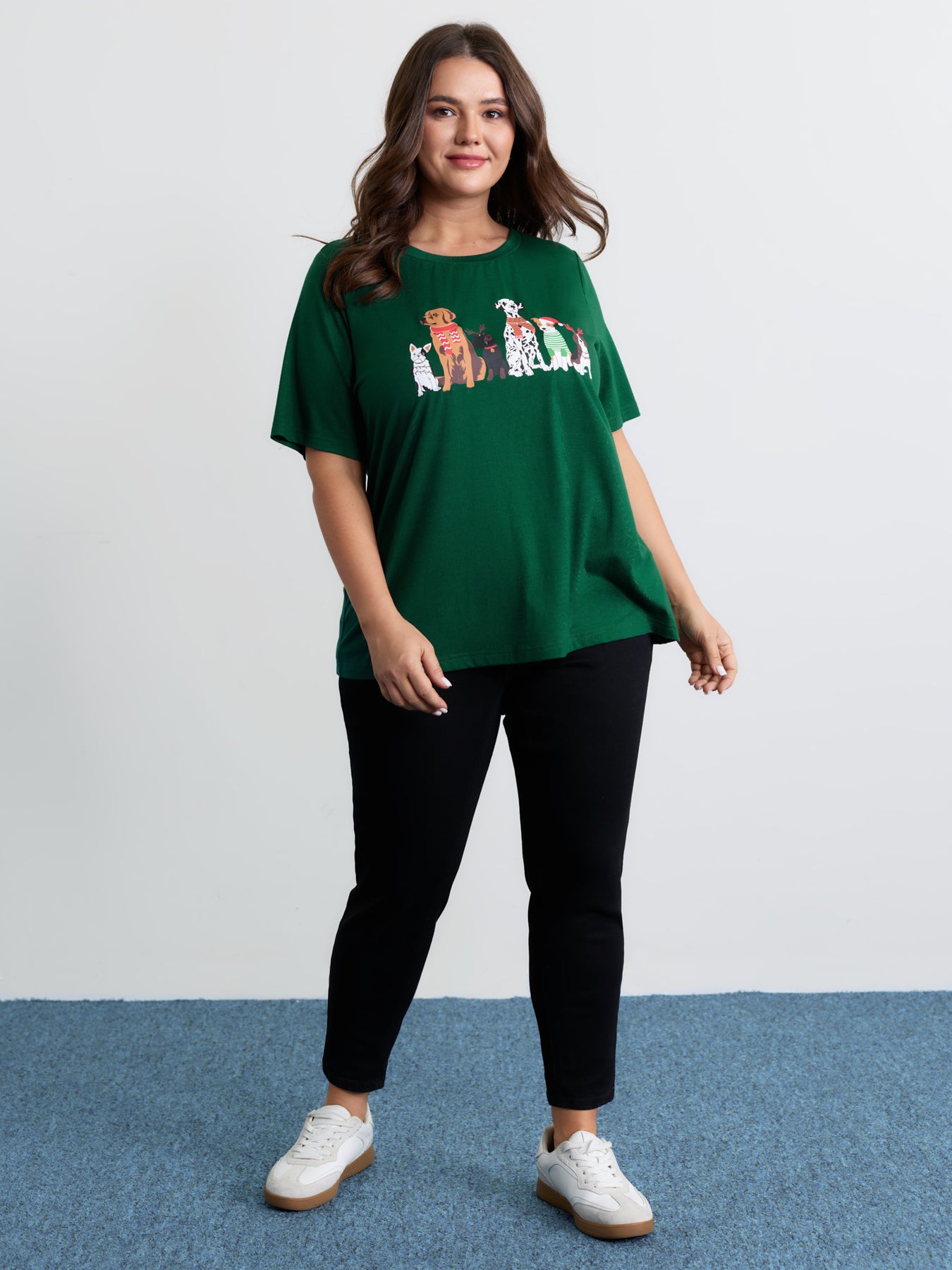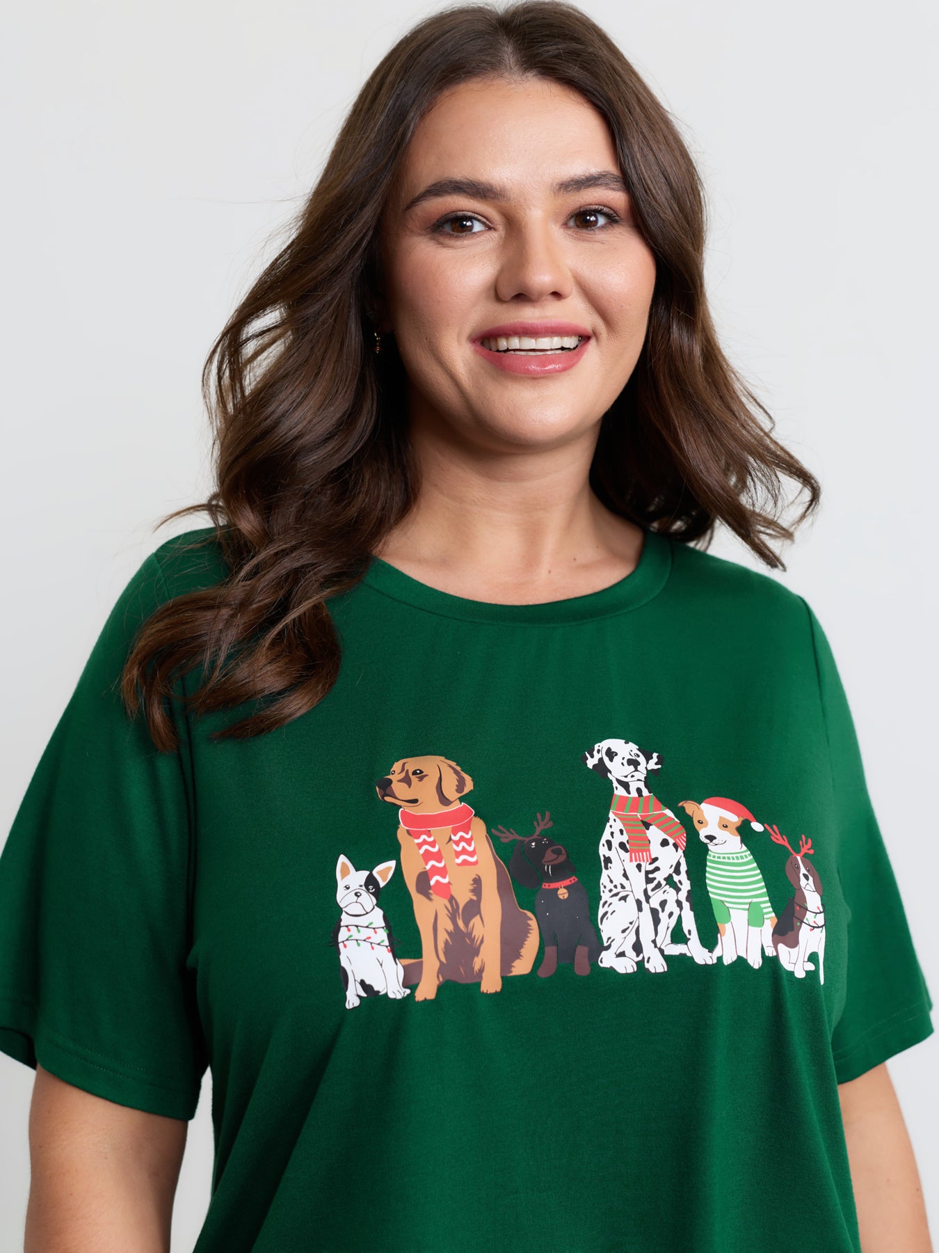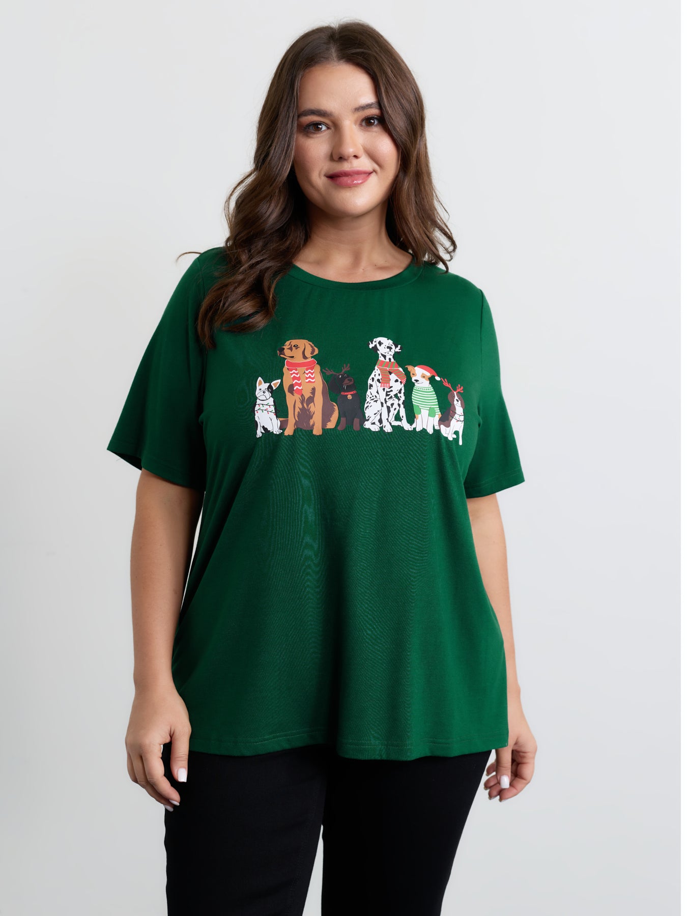 Happy Holiday Dogs Print T-Shirt