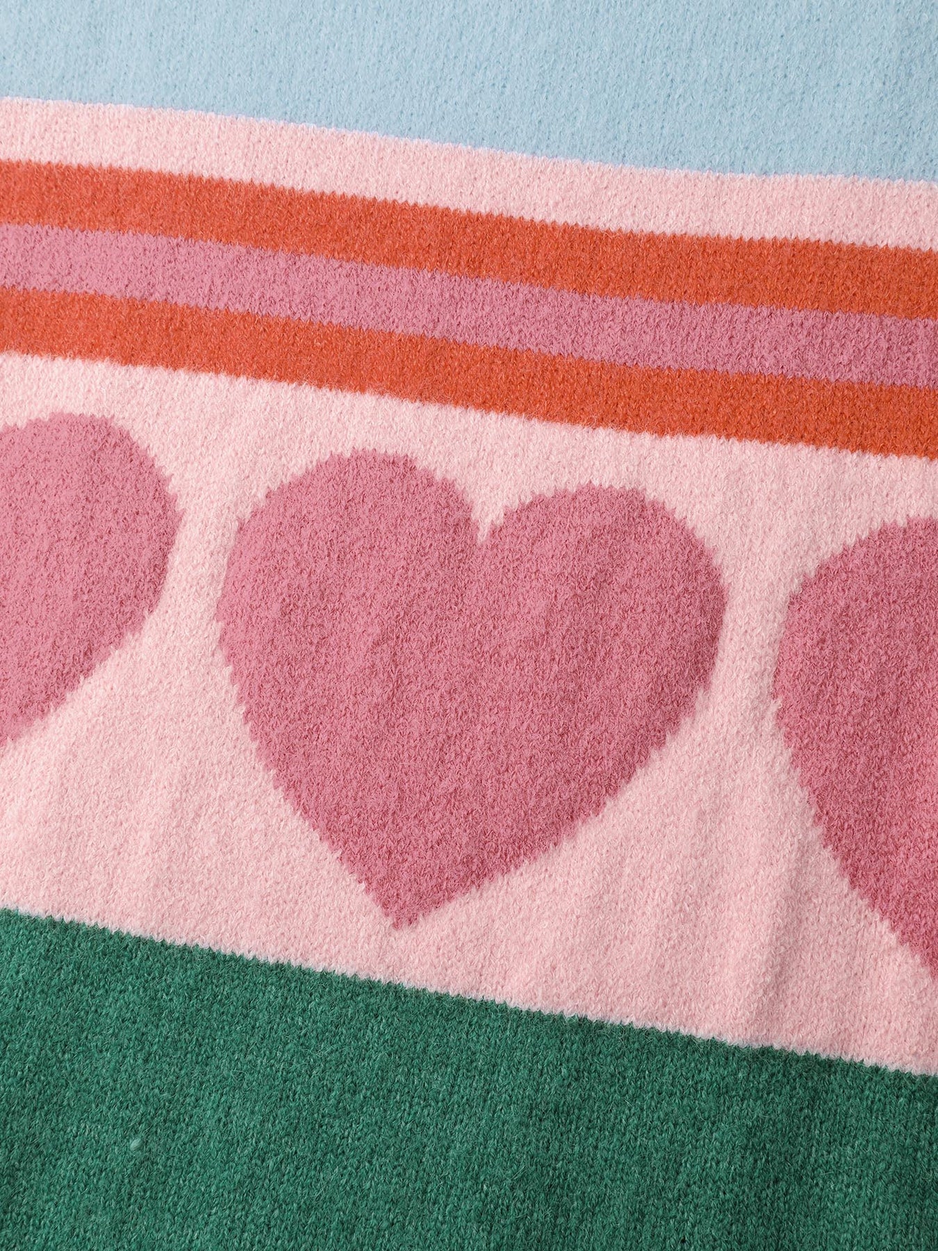 Heart Striped Print Jacquard Colorful Pullover