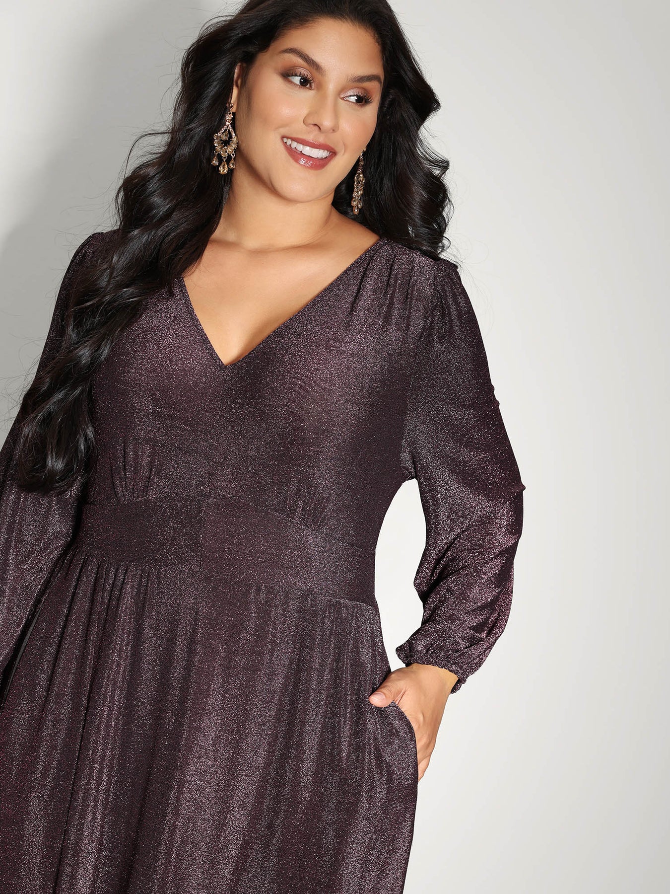 Heather Stretchy Split Hem Pockets Maxi Dress
