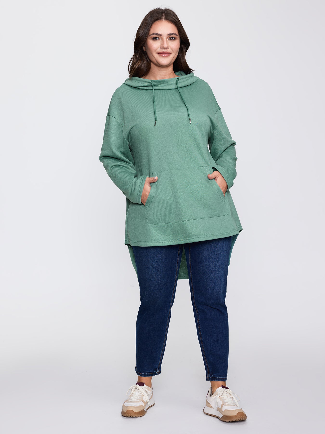 High Low Hem Drop Shoulder Solid Hoodie