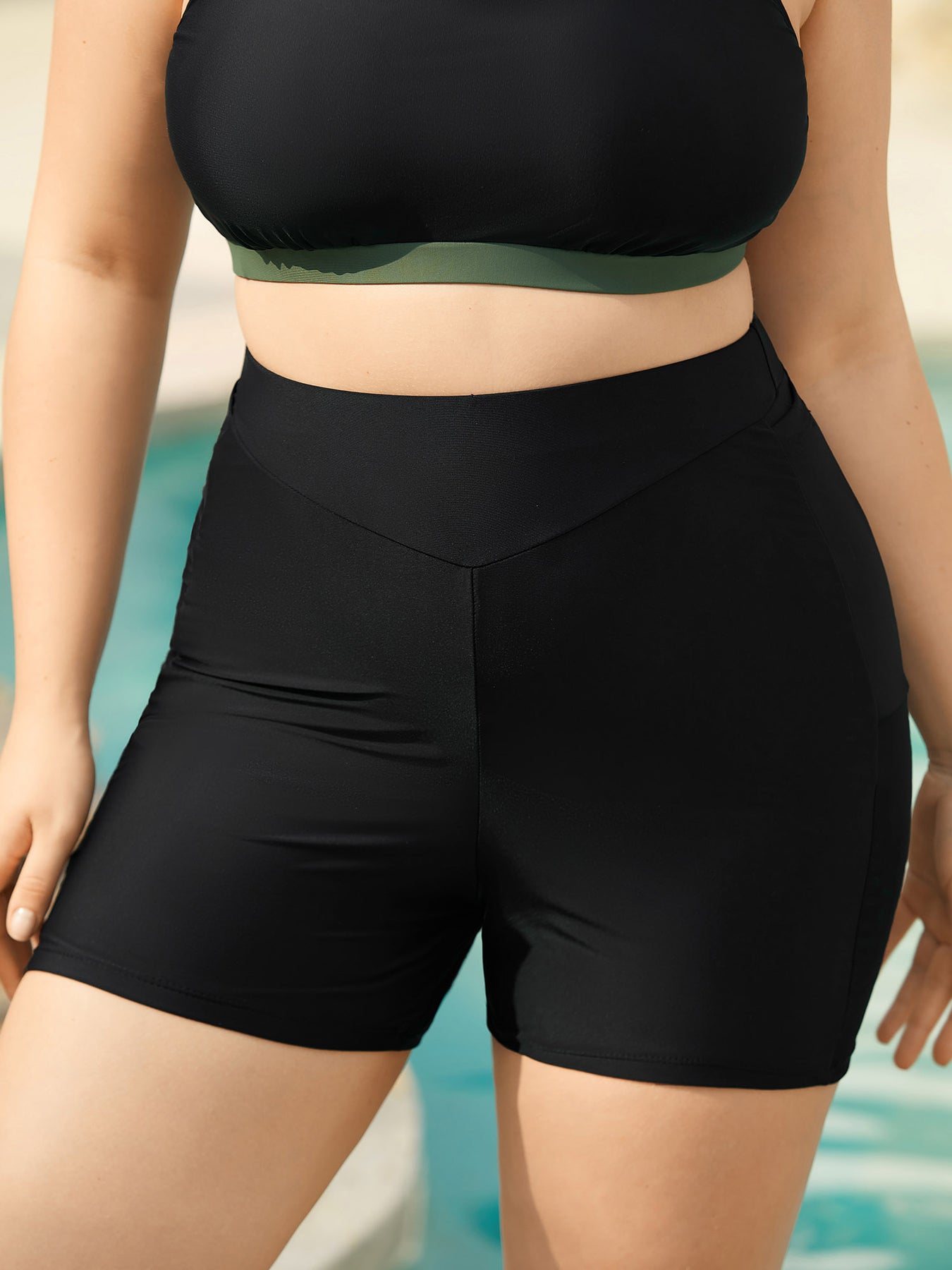 High-Waisted Ruched Pocket Swim Bottoms