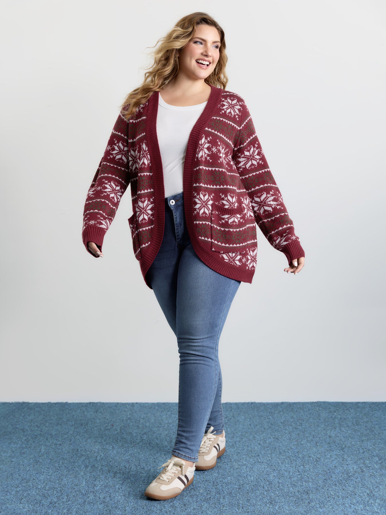 Holiday Curvy Hem Ribbed Knit Cardigan