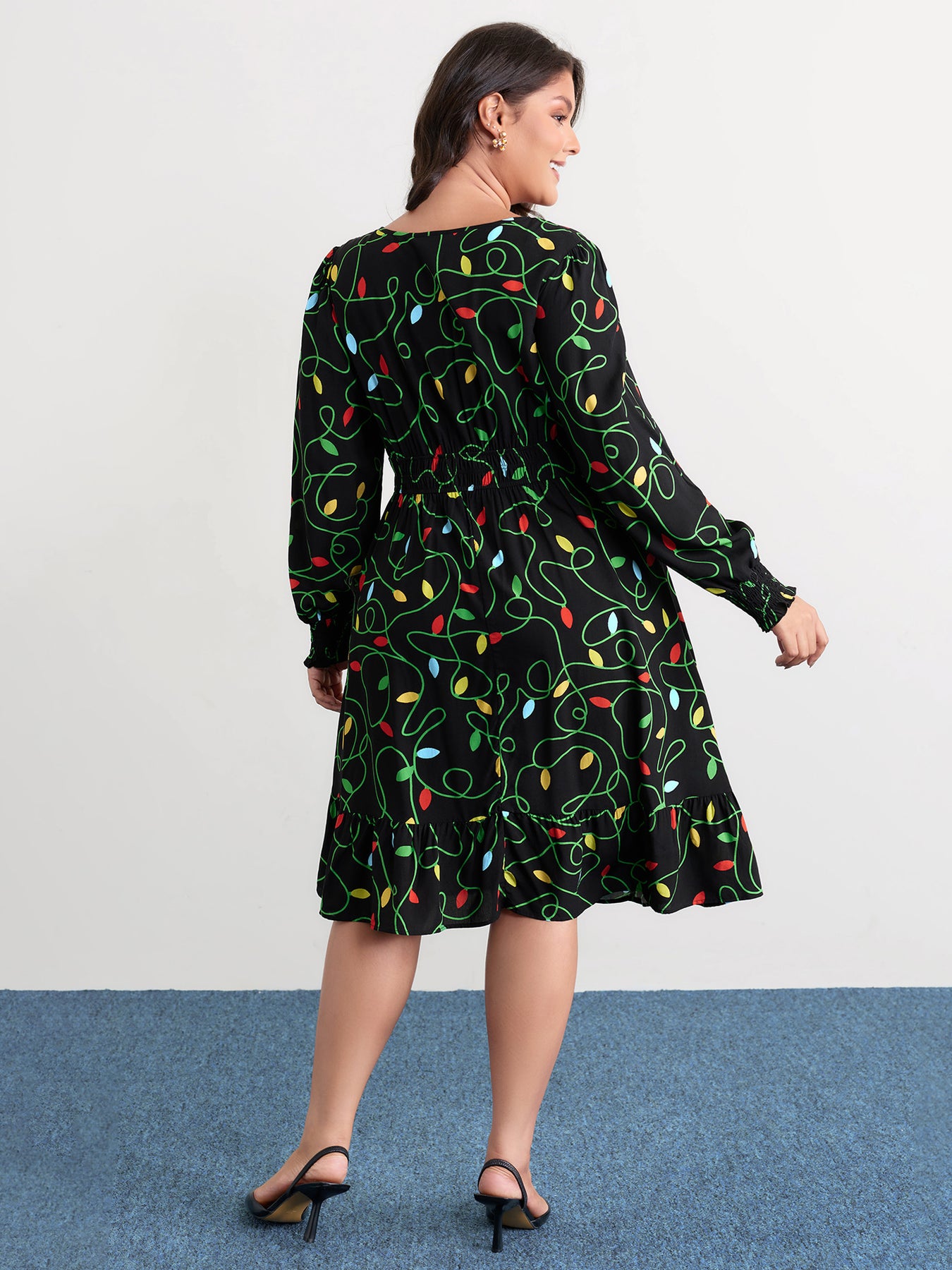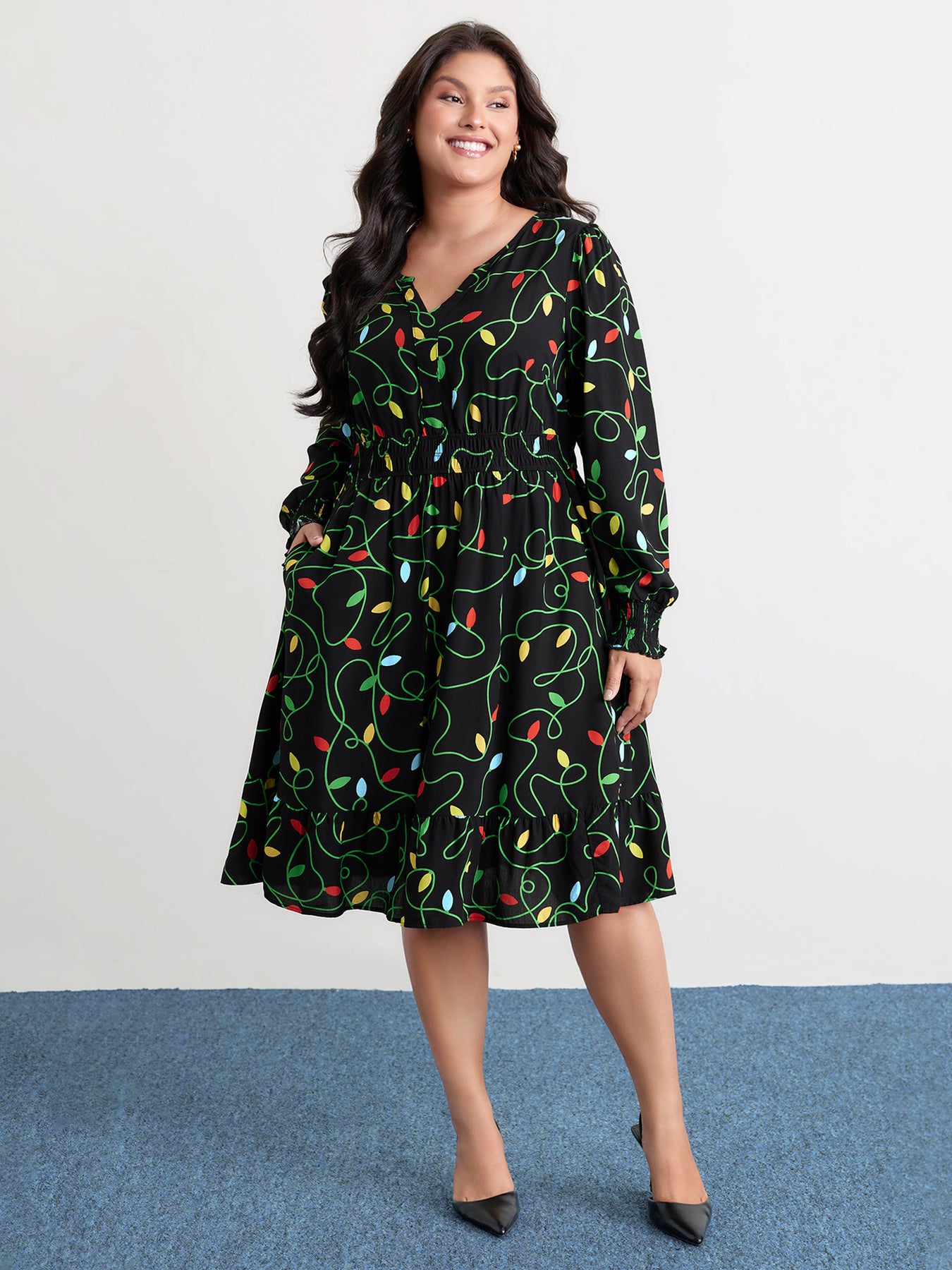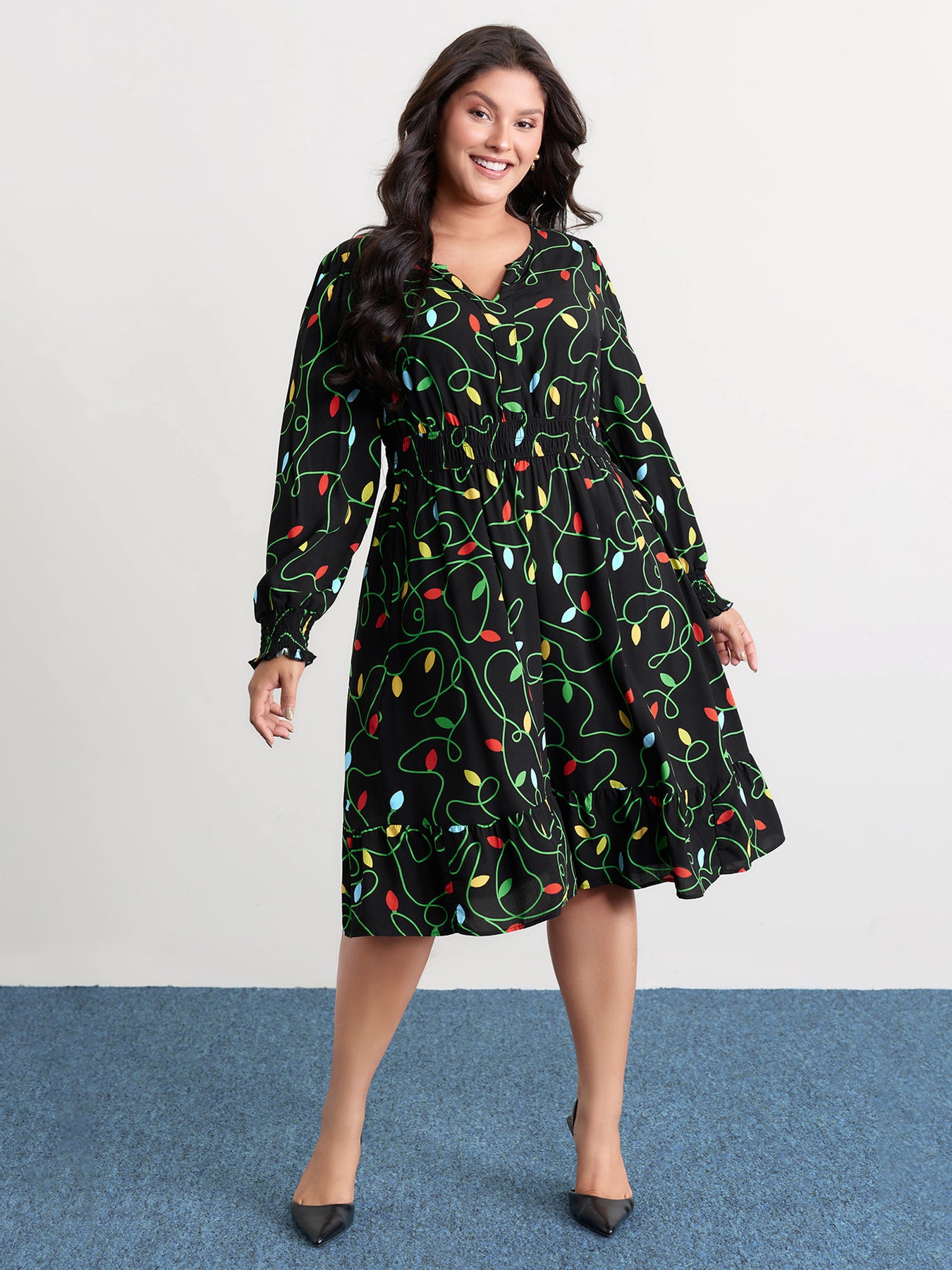 Holiday Lights Triple Elastic Waistband Midi Dress