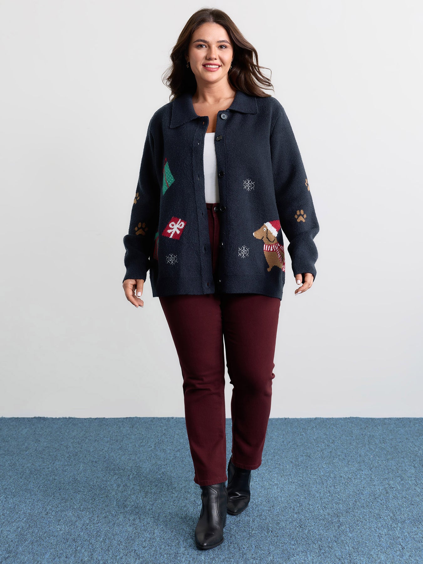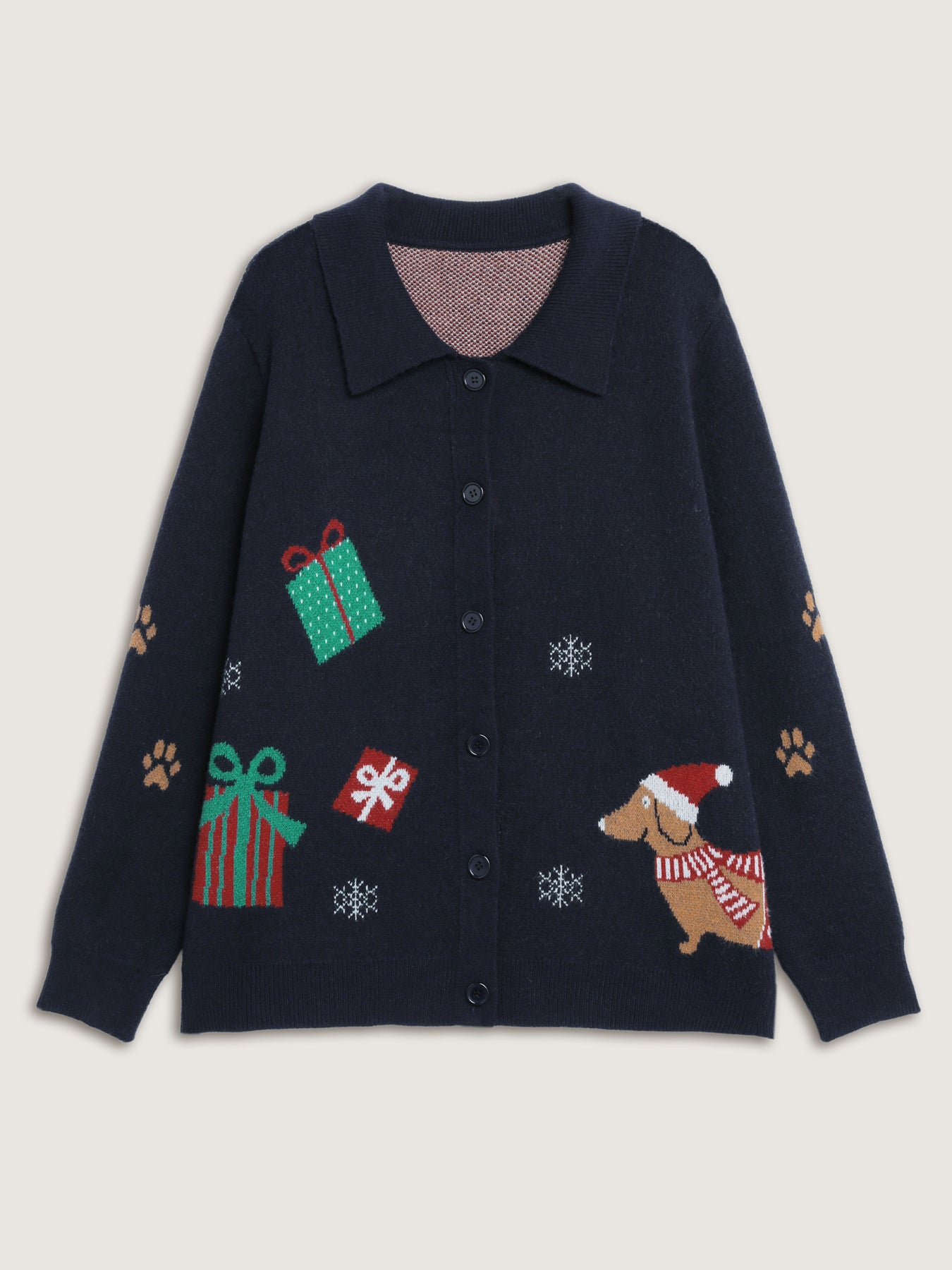 Holiday Pattern Collar Button Knit Cardigan
