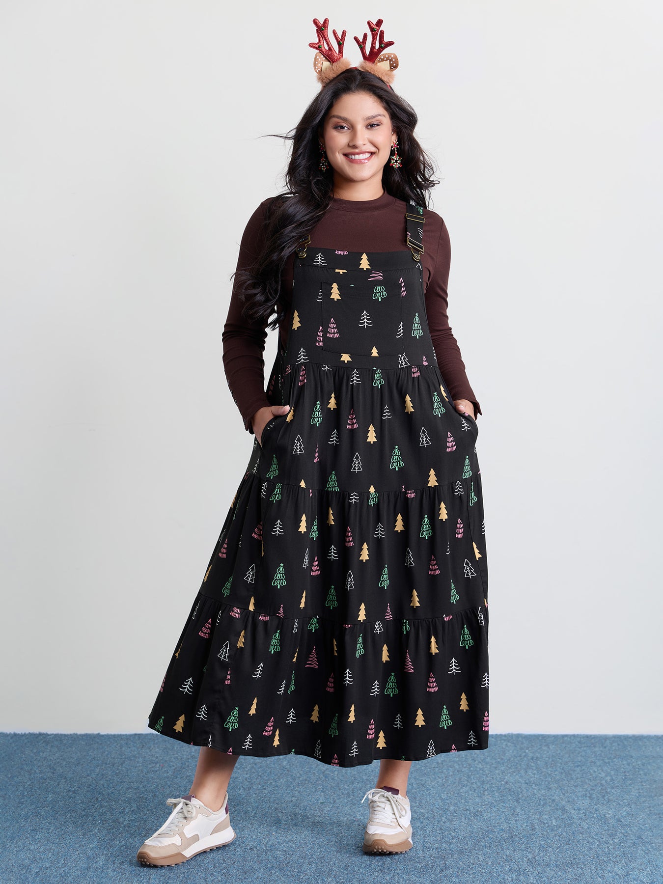 Holiday Tree Rayon Pockets Midi Dress