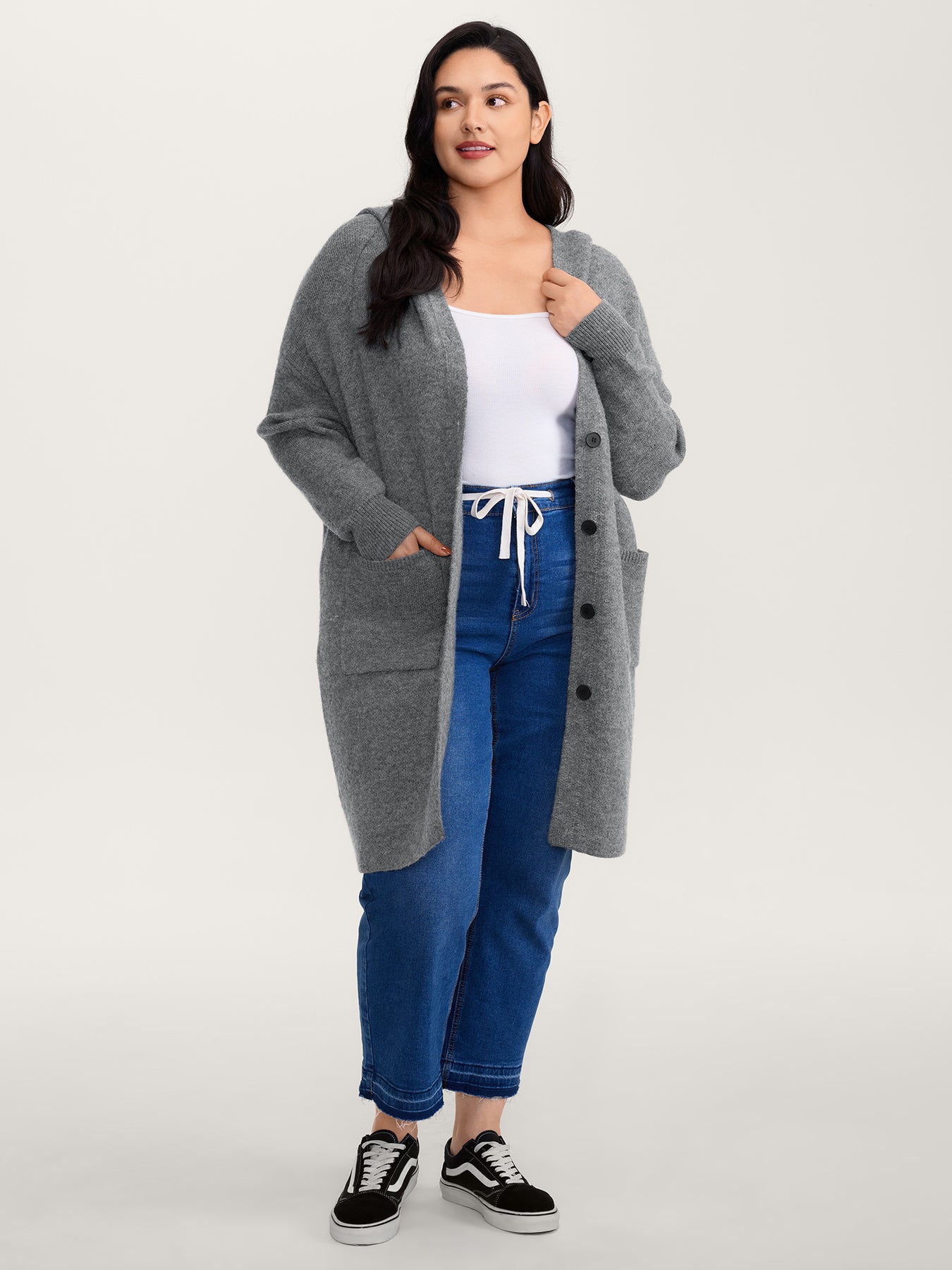 Hooded Button Slit Pockets Knit Cardigan