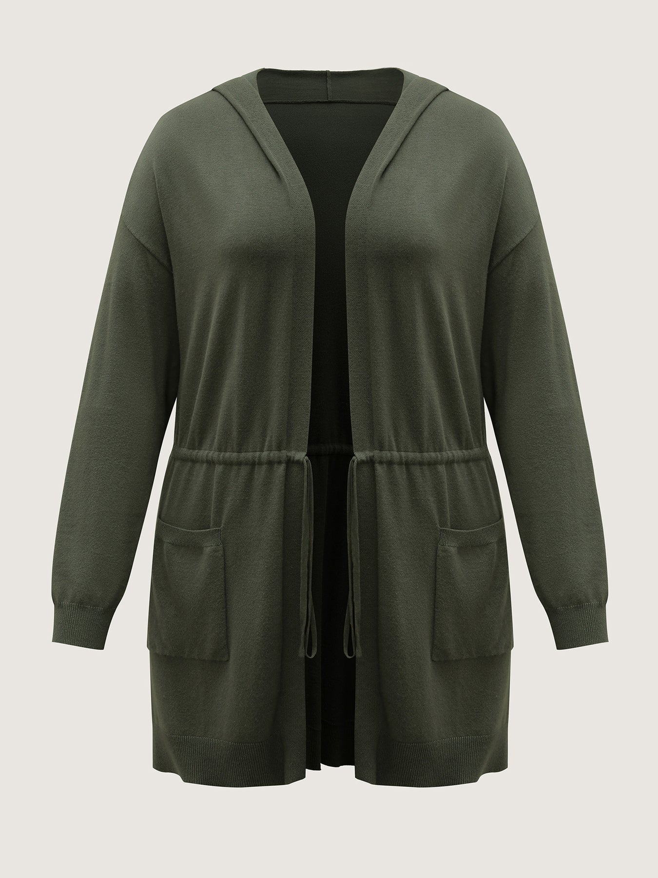 Hooded Drawstring Waist Pockets Knit Cardigan