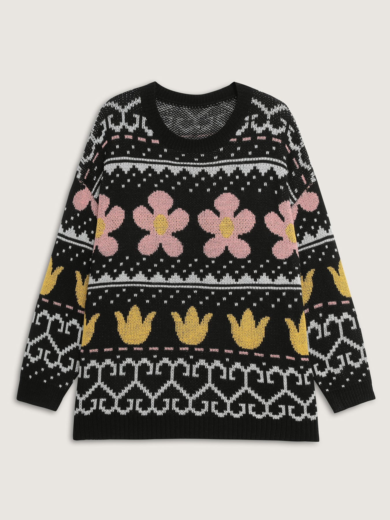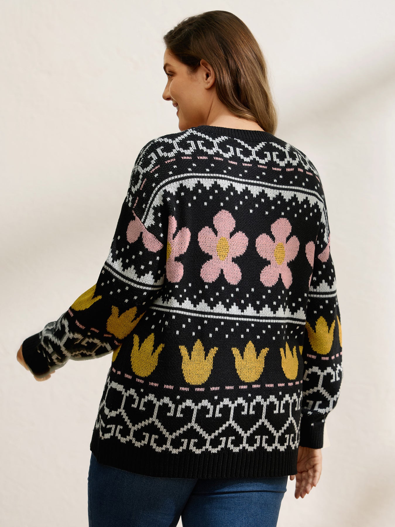 Jacquard Floral Garden Pattern Pullover