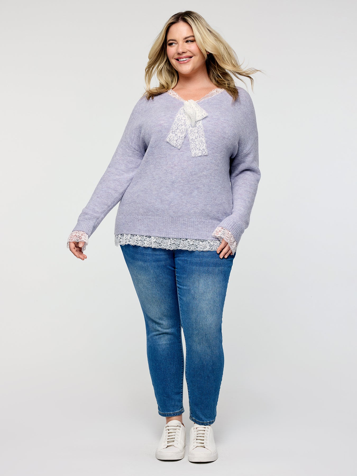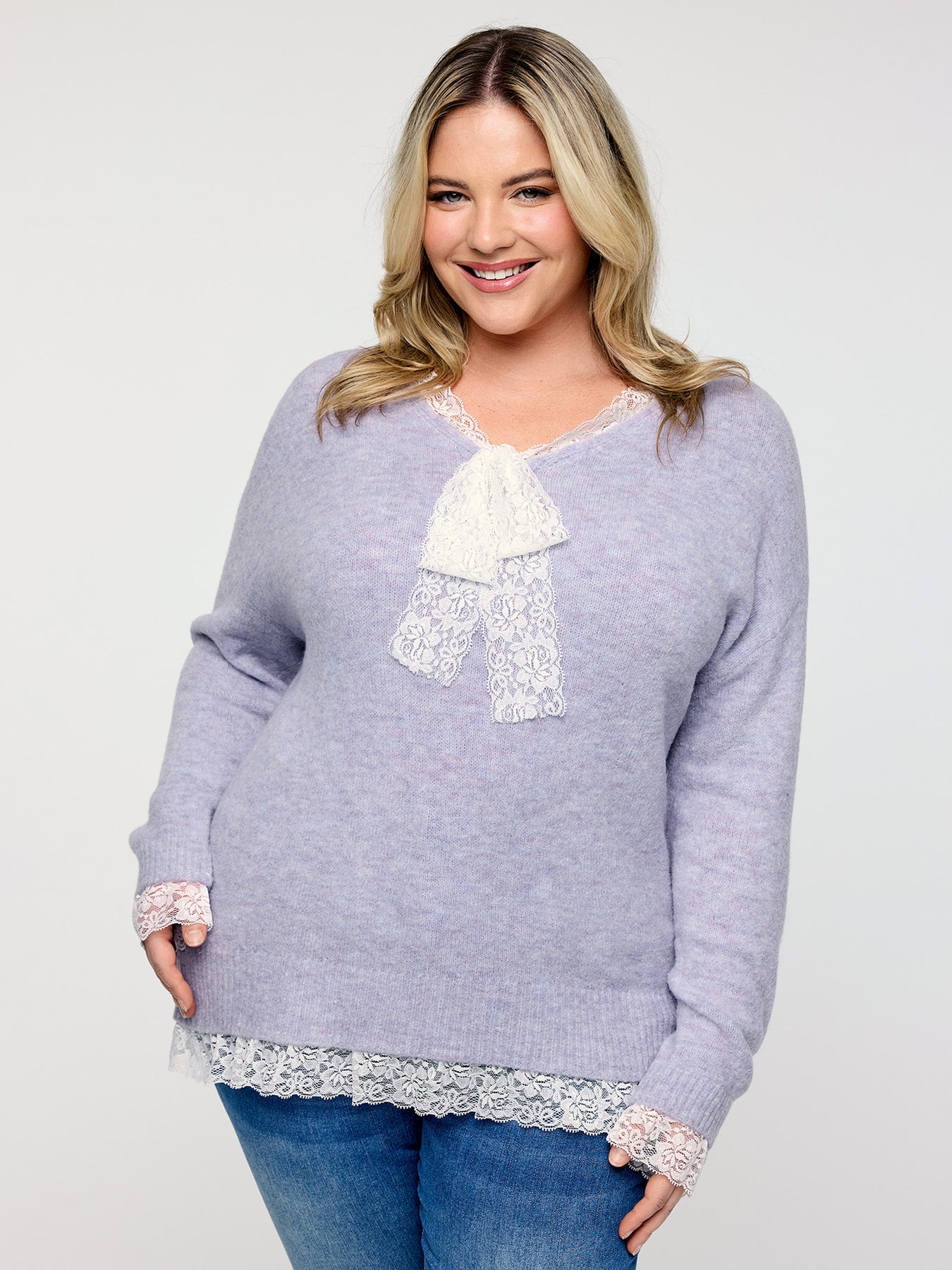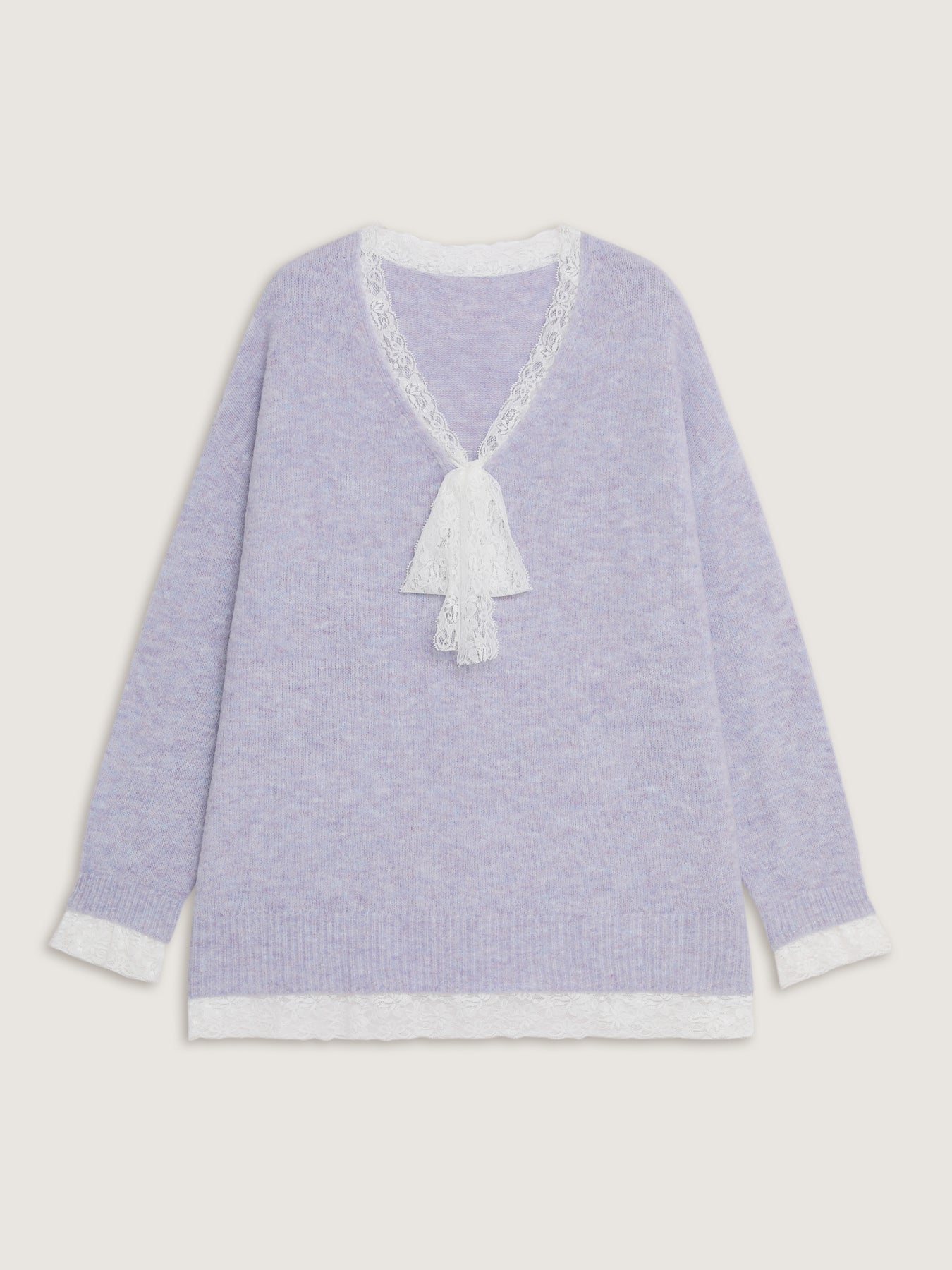 Lace Bowtie V-Neck Pullover
