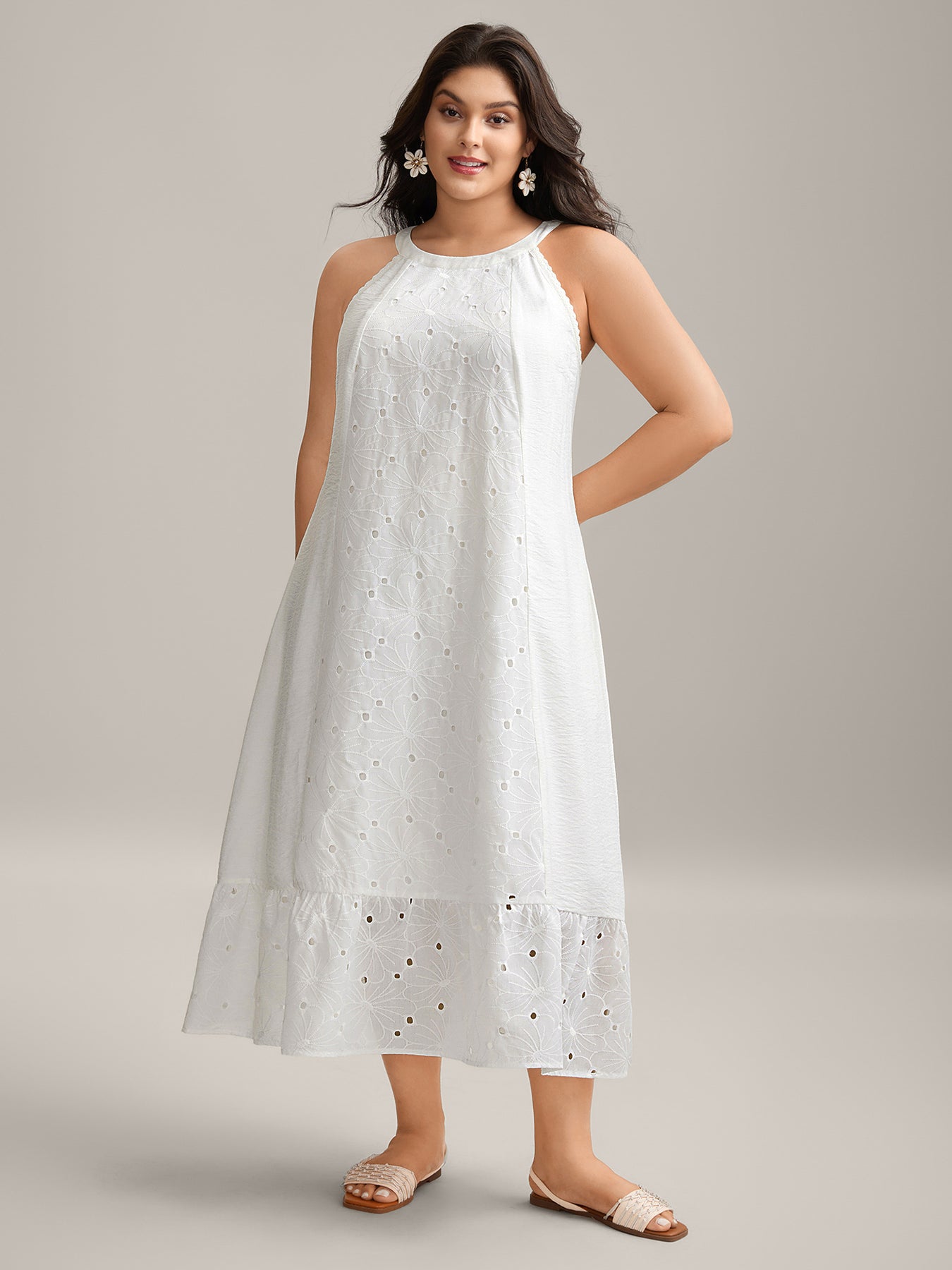 Cotton Lace Detail Tiered Hem Tiered Maxi Dress