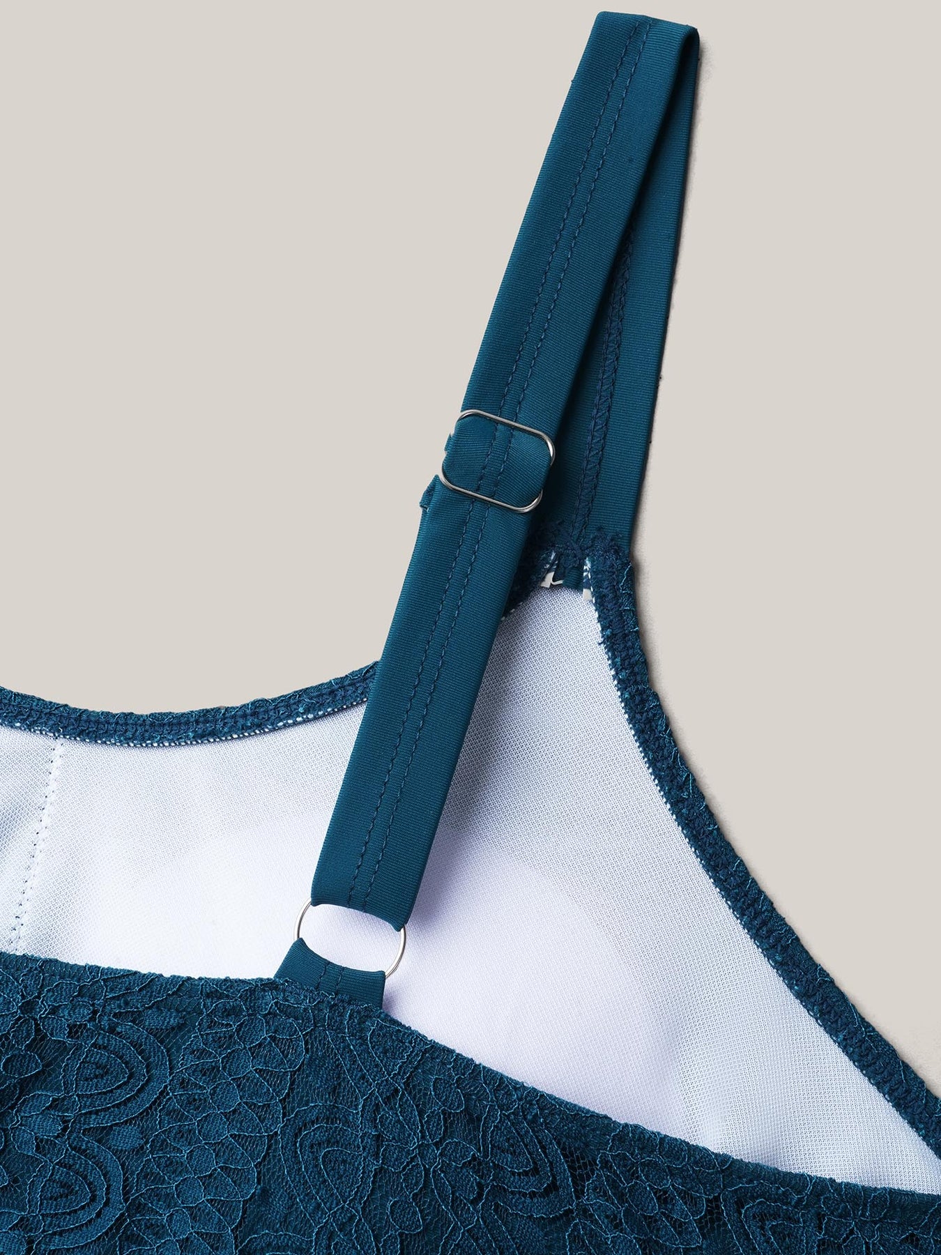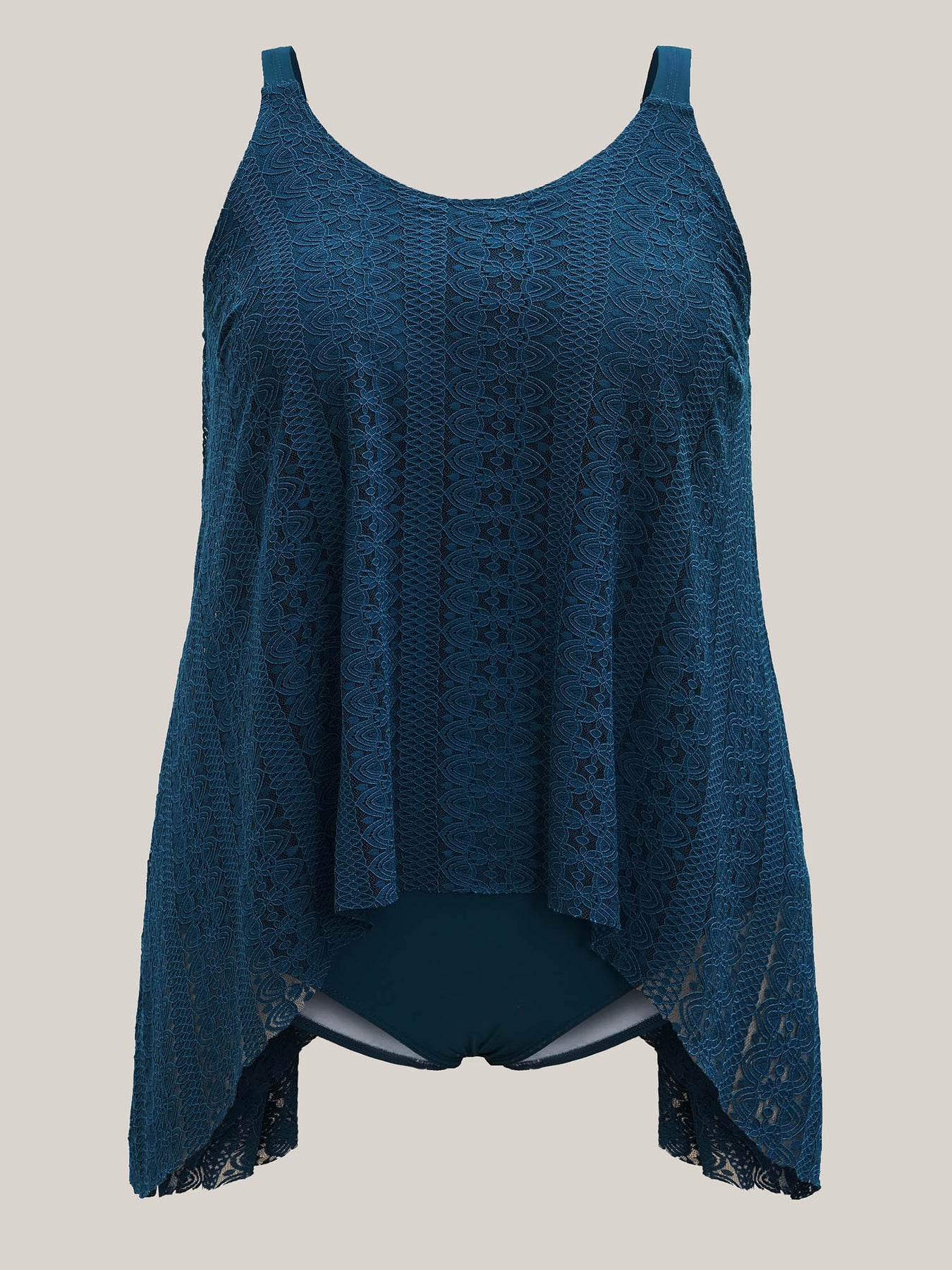 Lace Hi-Low Hem Flared Tiered One-Piece Swimsuit