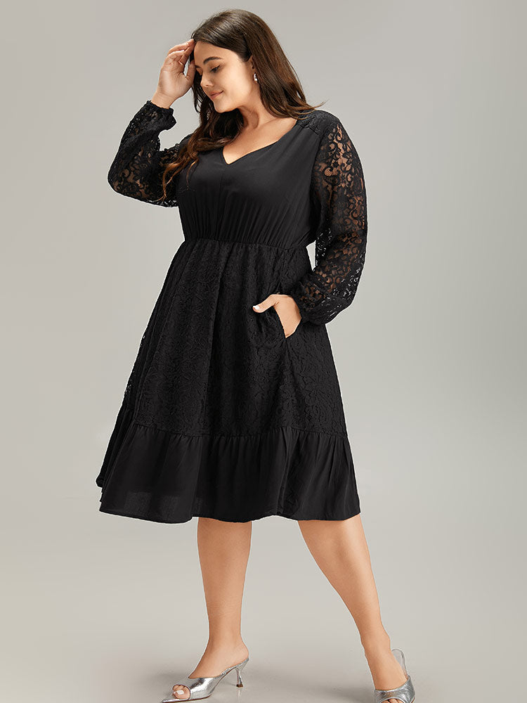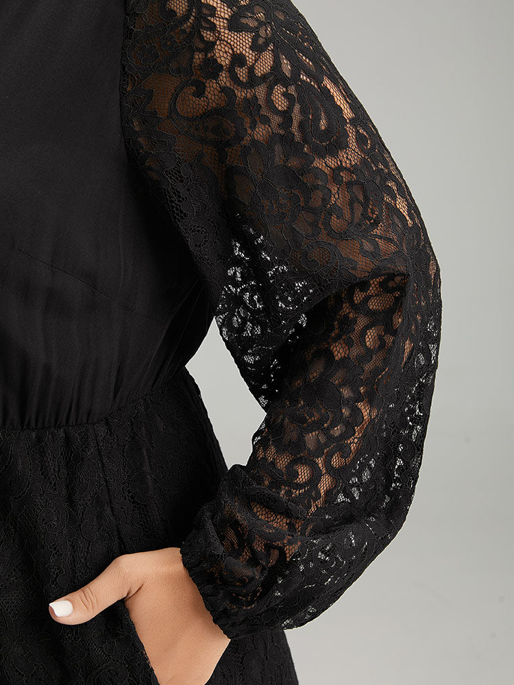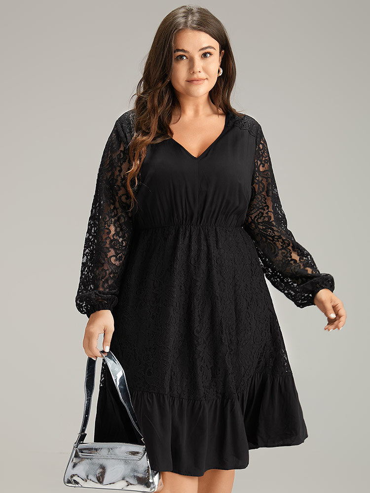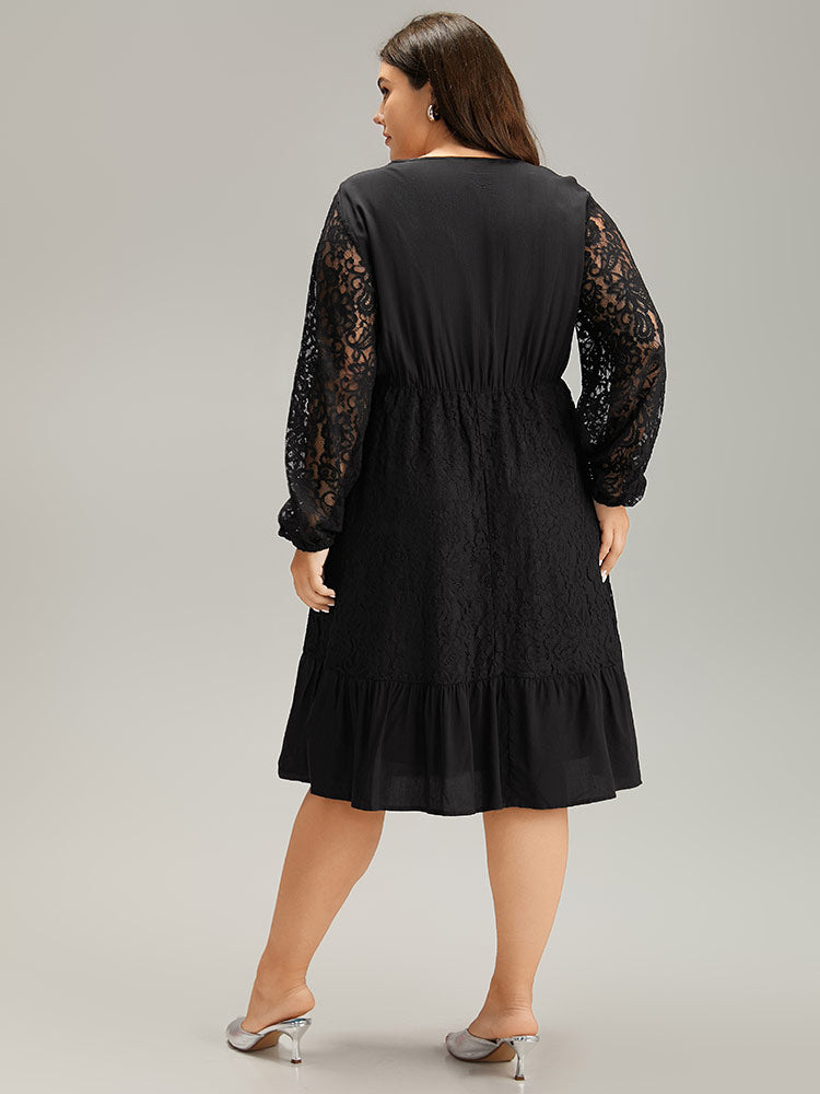 Lace Panel Mesh Flutter Hem Dress