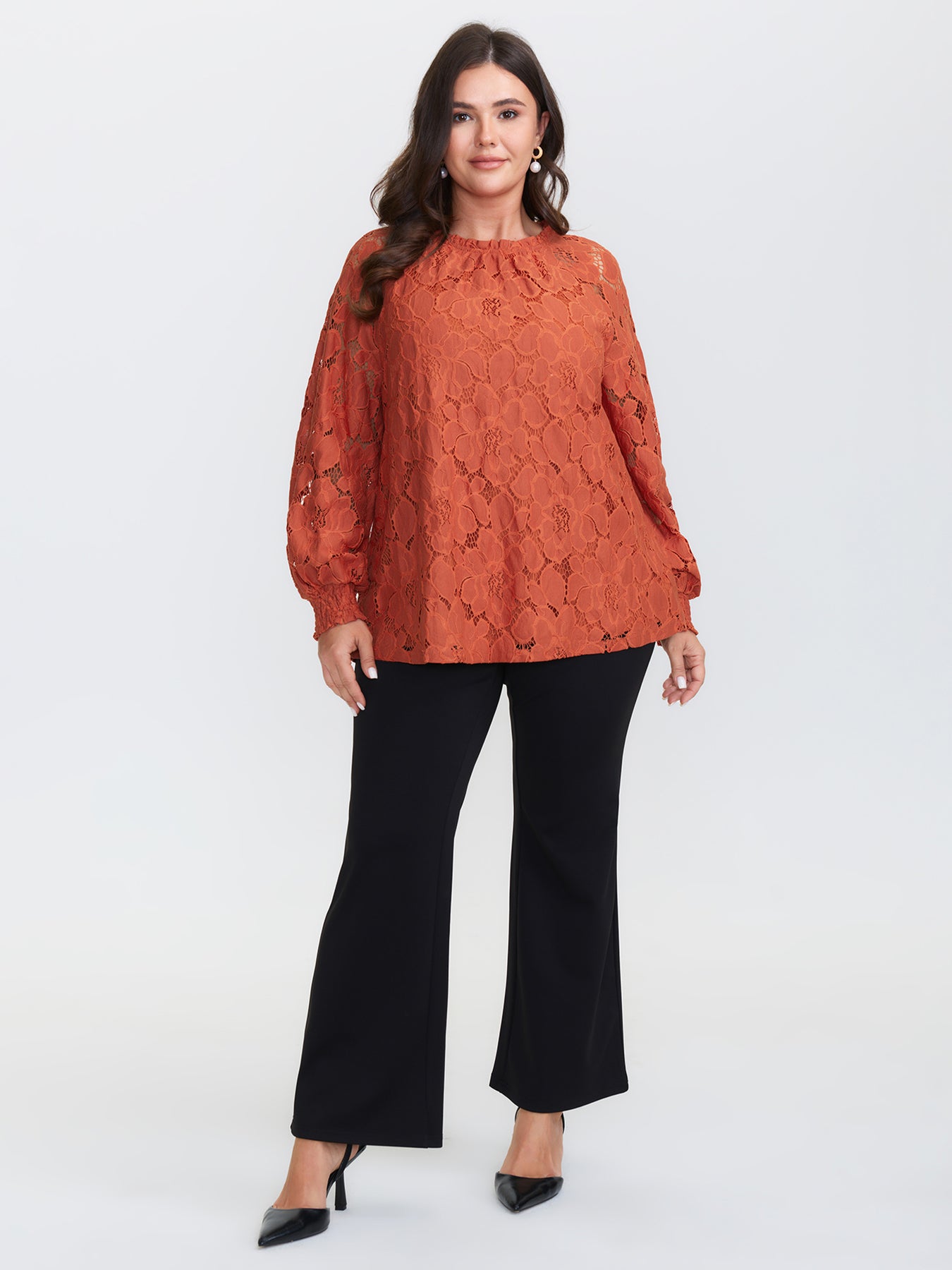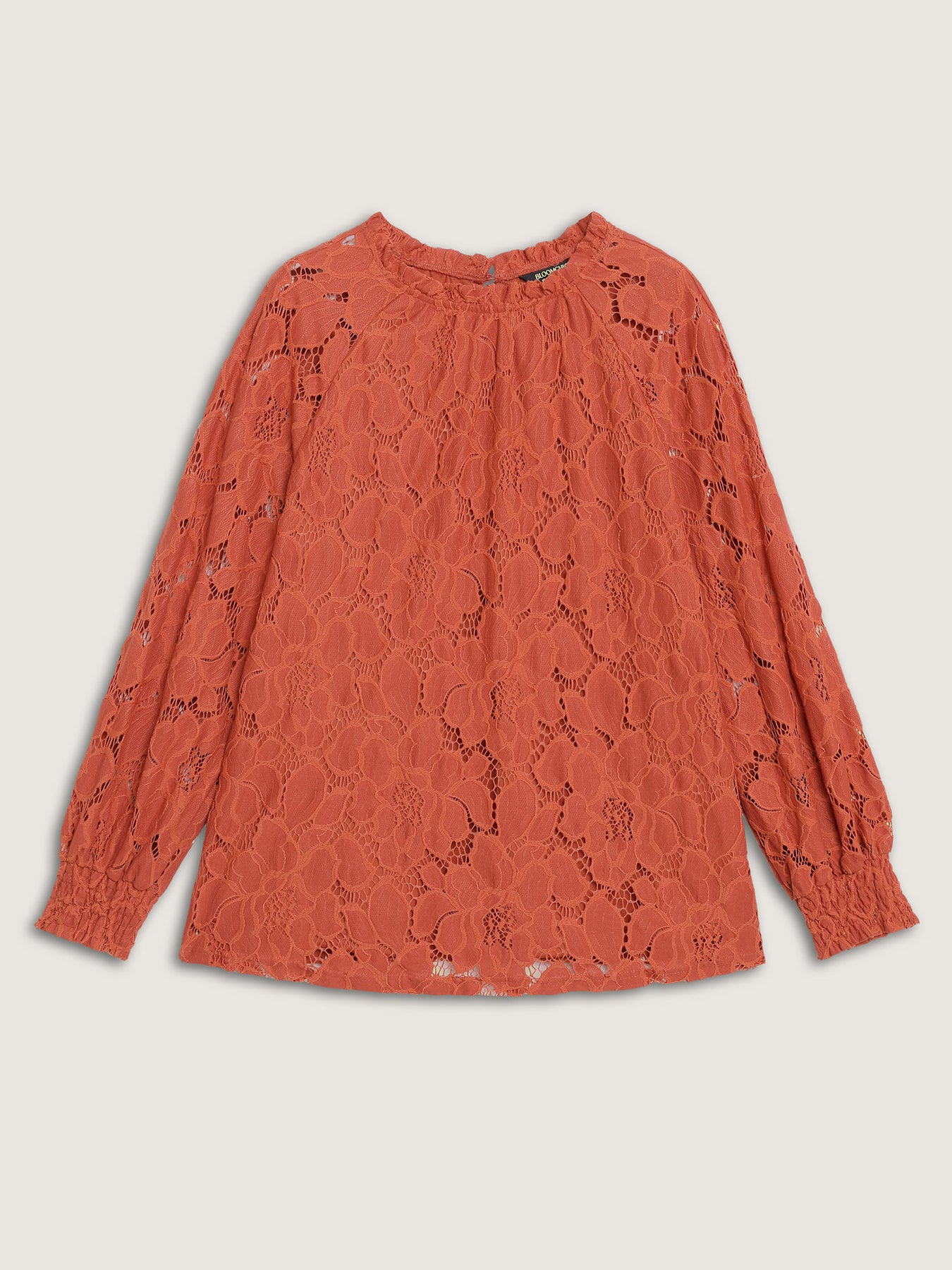Lace Ruffled Neckline Shirred Blouse